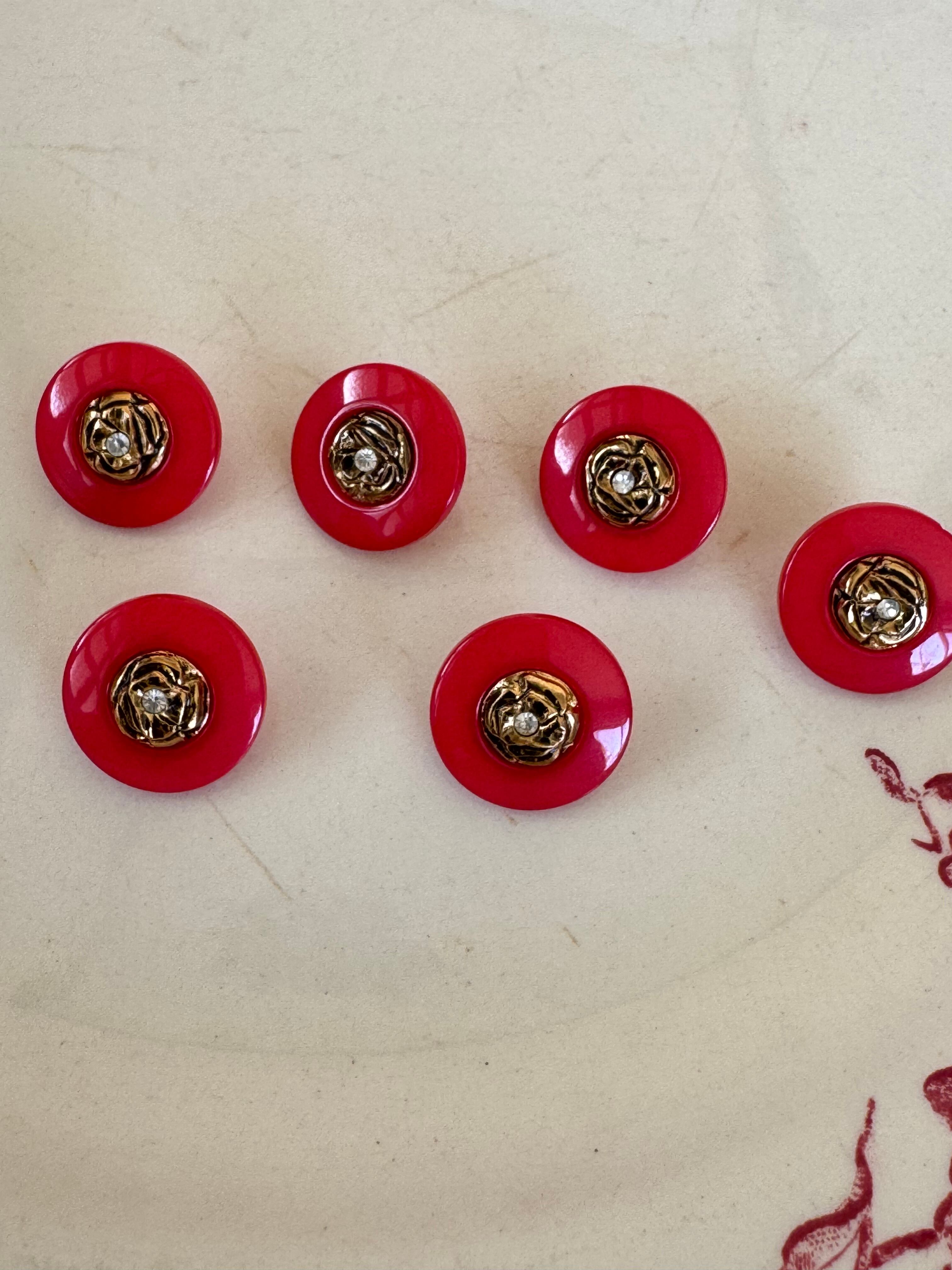 中央にゴールドの鋲のような飾りの付いた赤いビンテージボタン。
