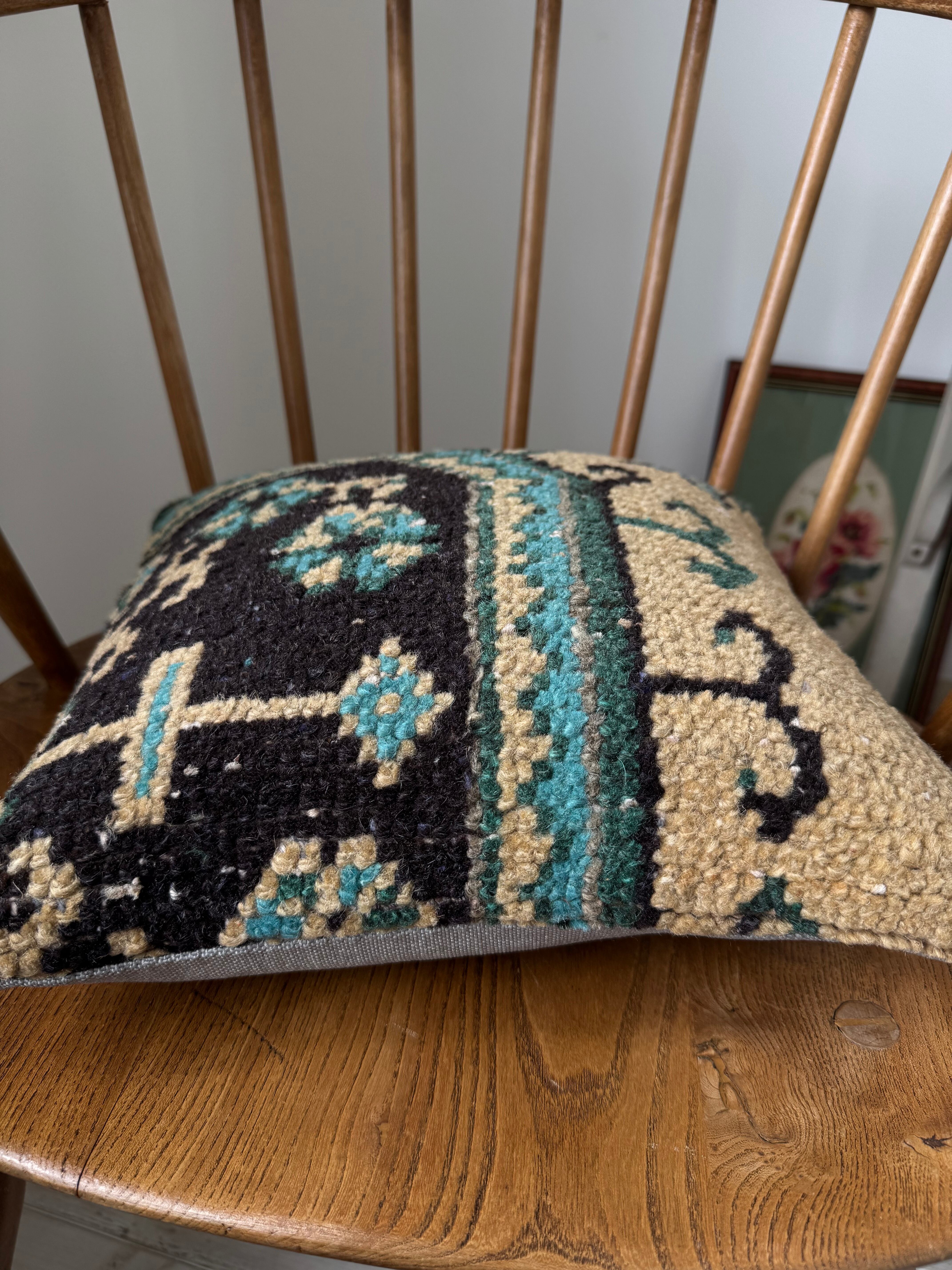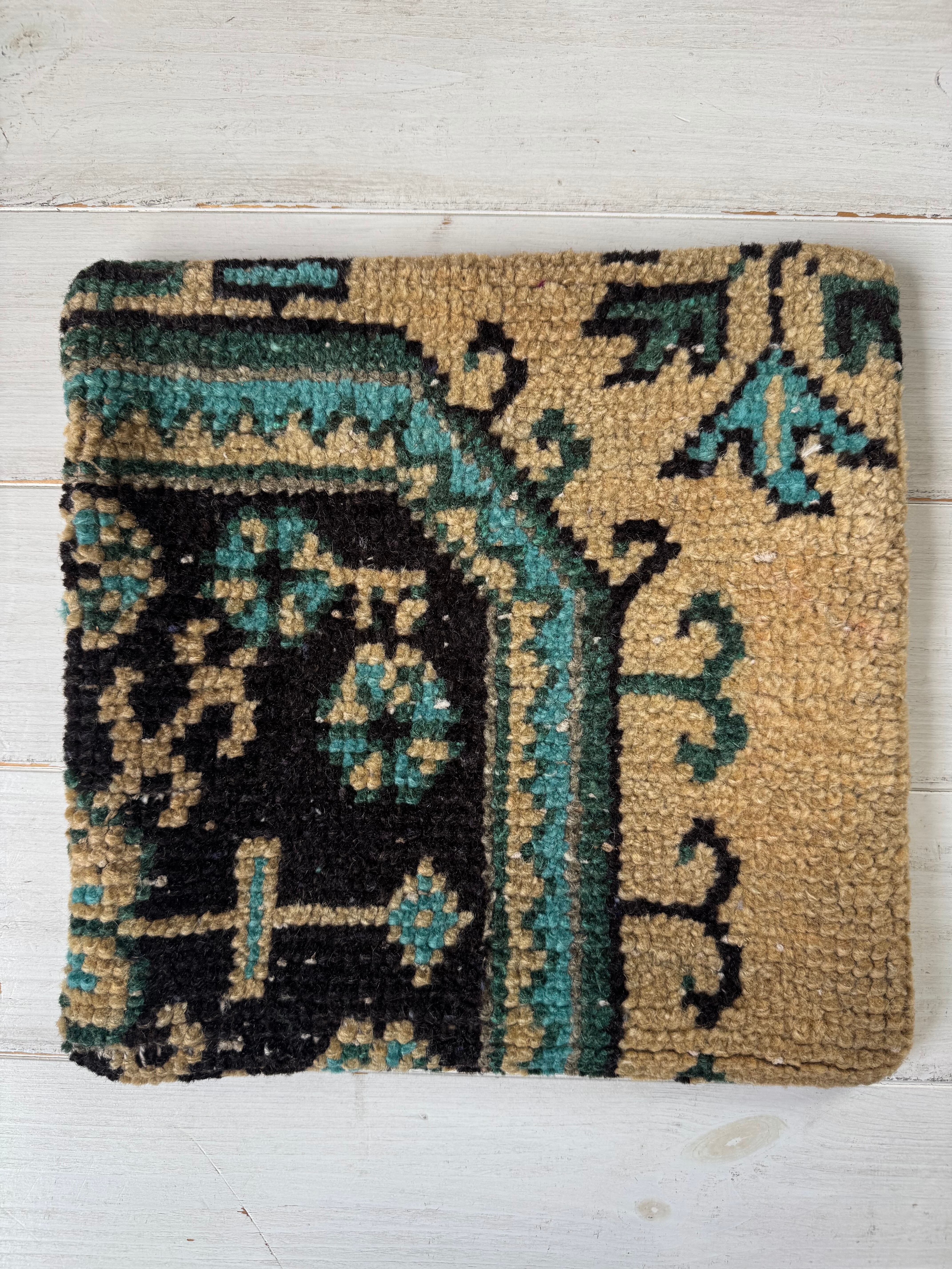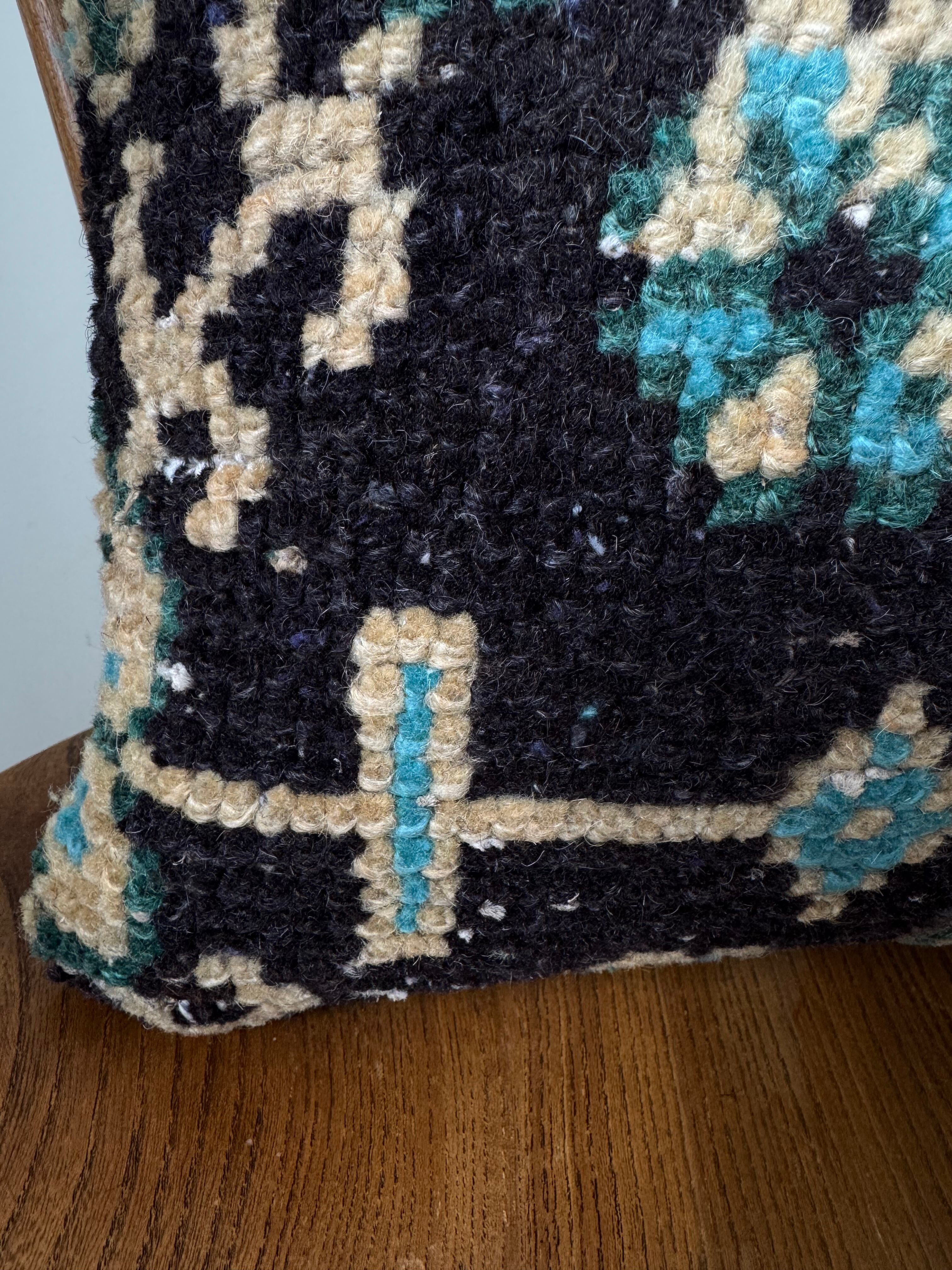 こちら、30年以上前のトルコ絨毯をリメイクしてクッションカバーにした物ですので、ダメージや使用感のある物となっております。