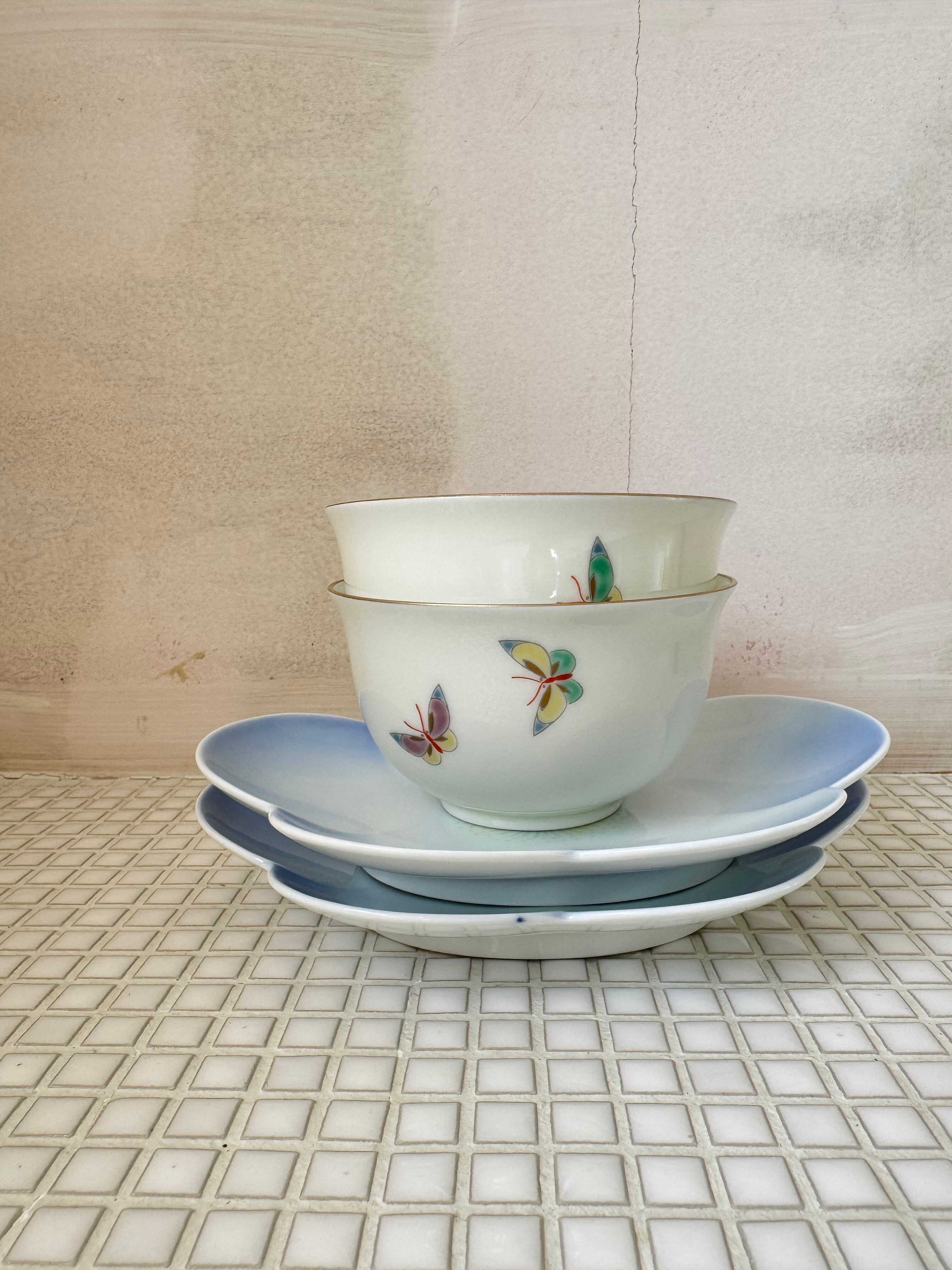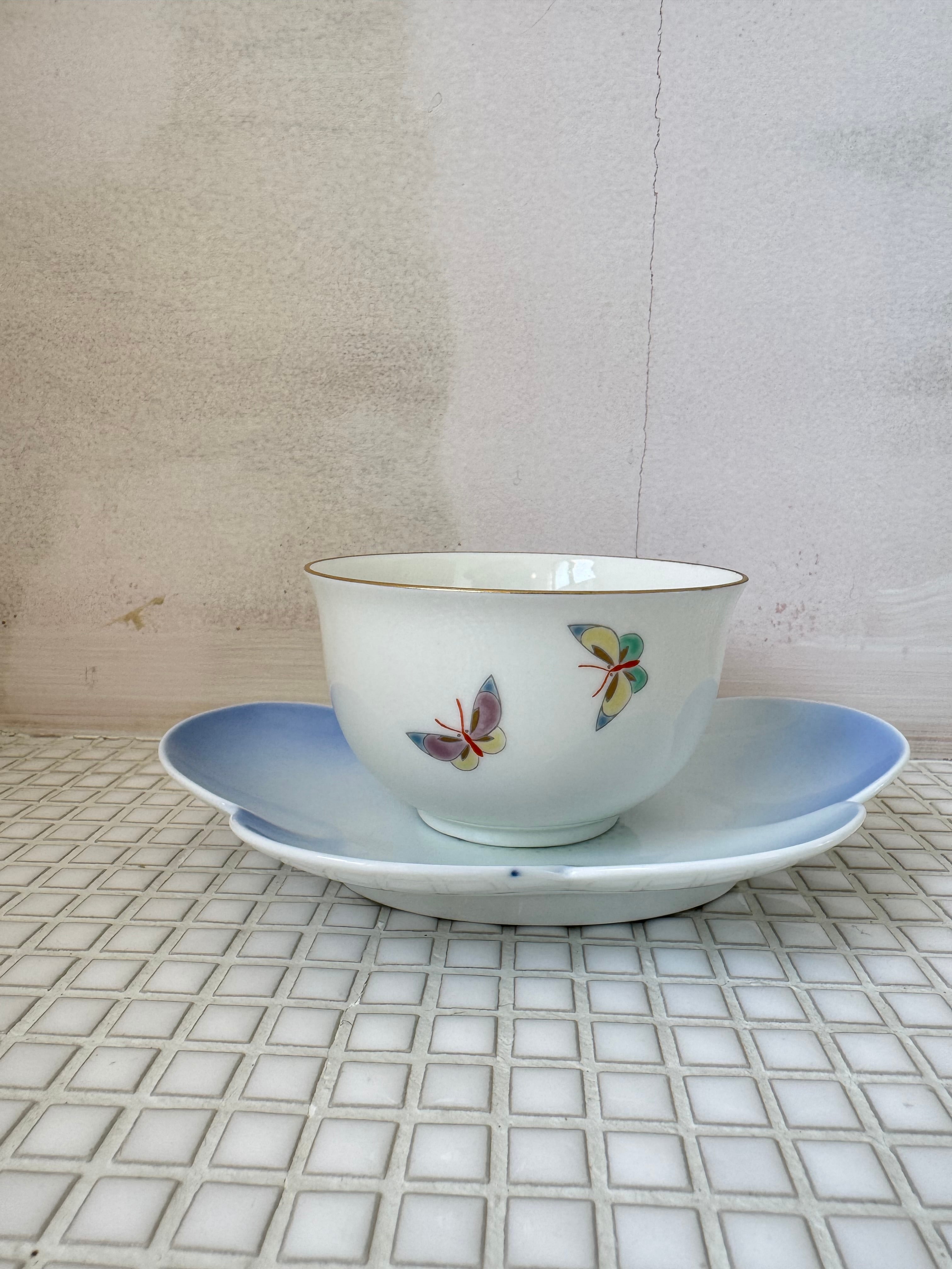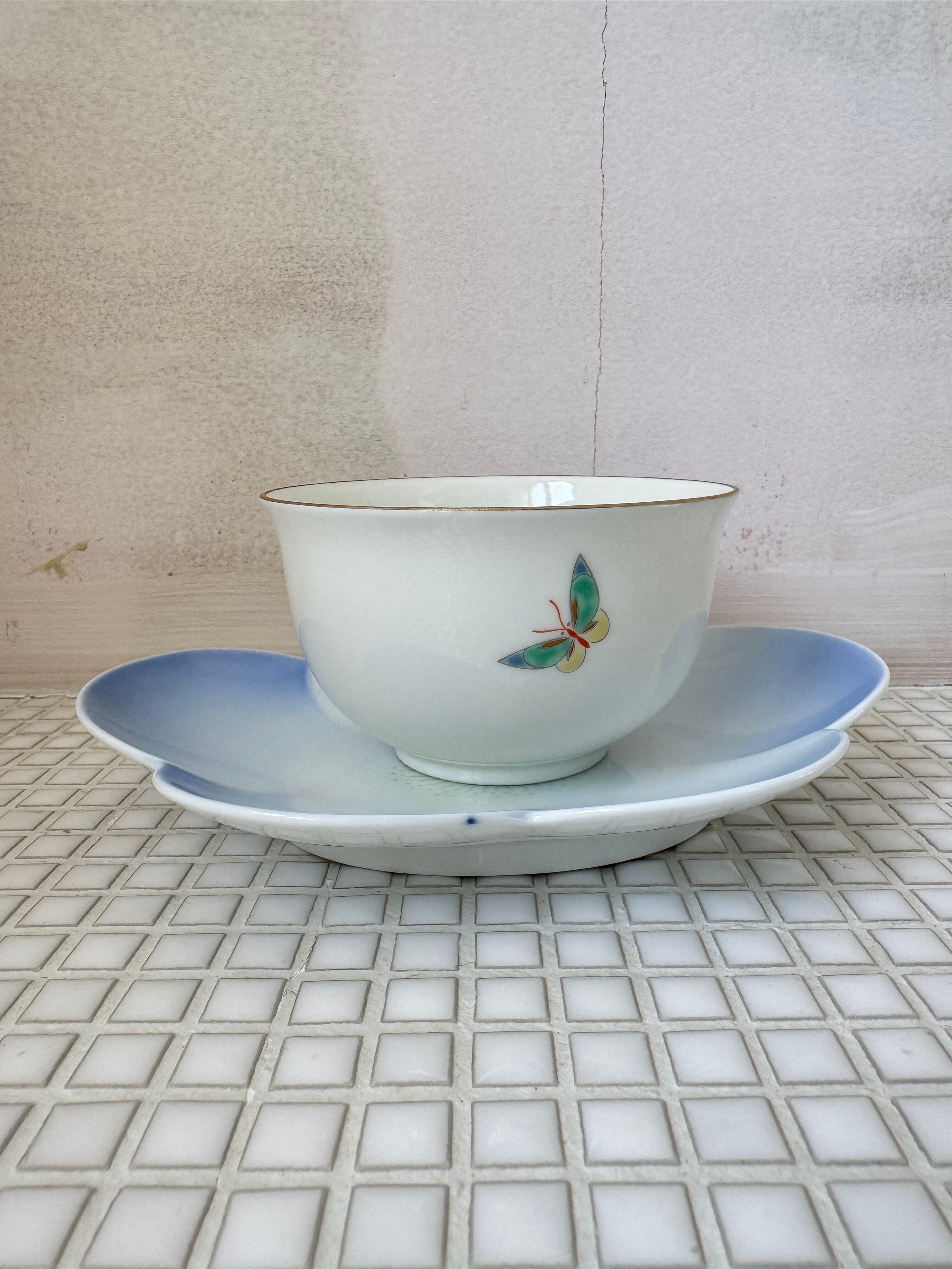 深川製磁の蝶のお湯呑みと、お花のお皿をセットにしてみました。