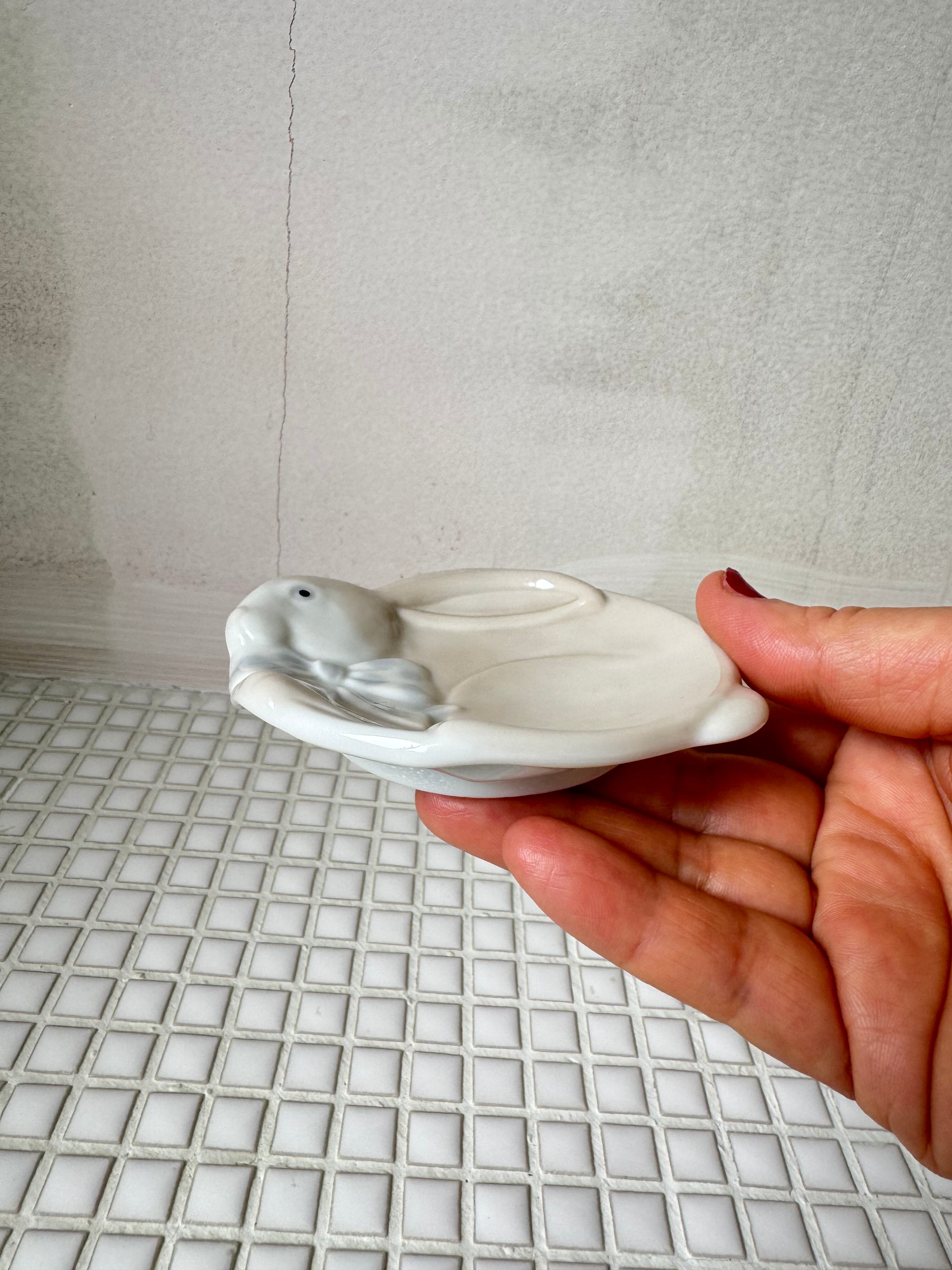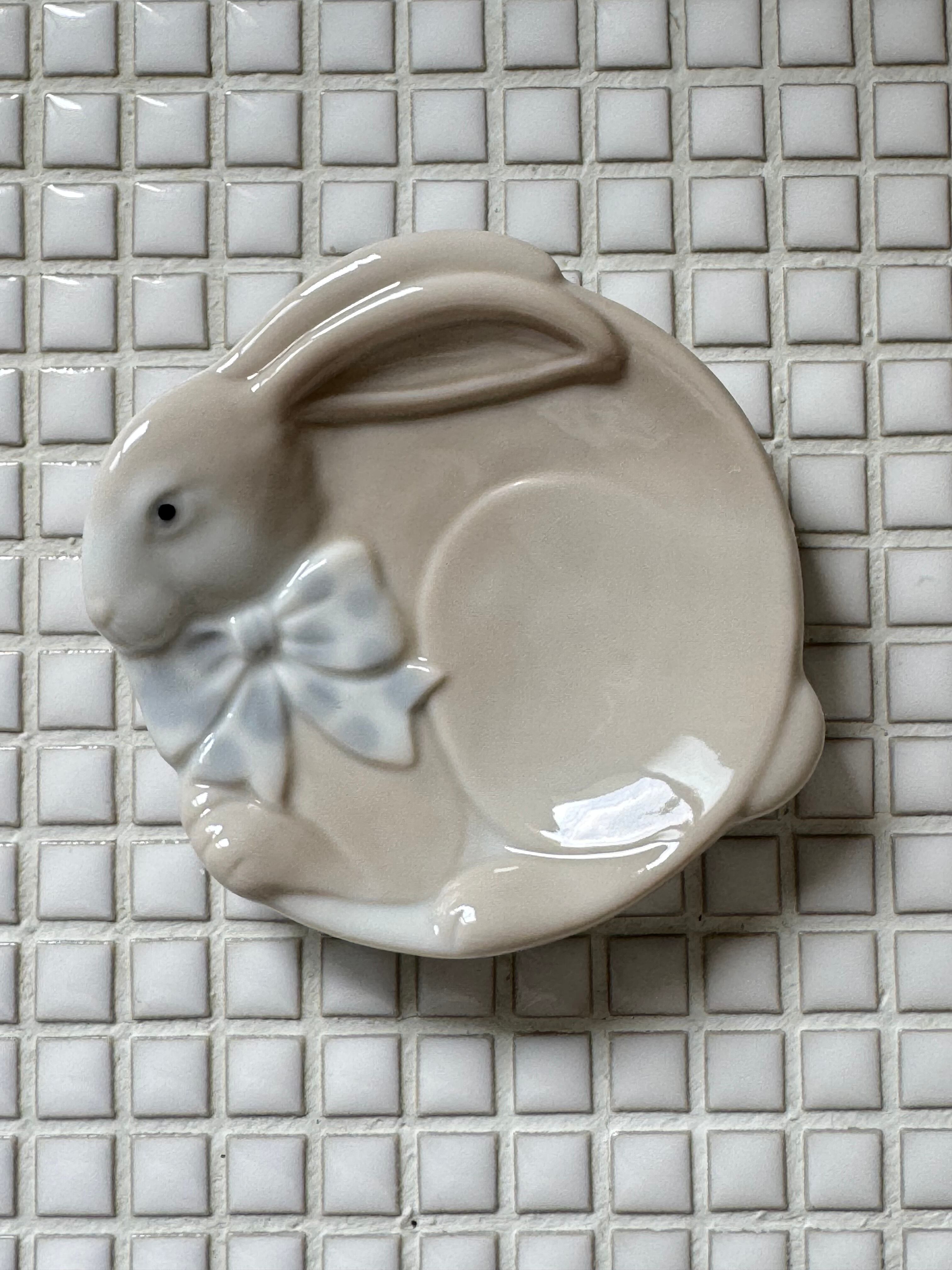 くるんと丸まったシルエットや、顔や耳やリボンの立体感がなんとも言えず可愛い。ちゃんと丸いしっぽがある所も心をくすぐります。
