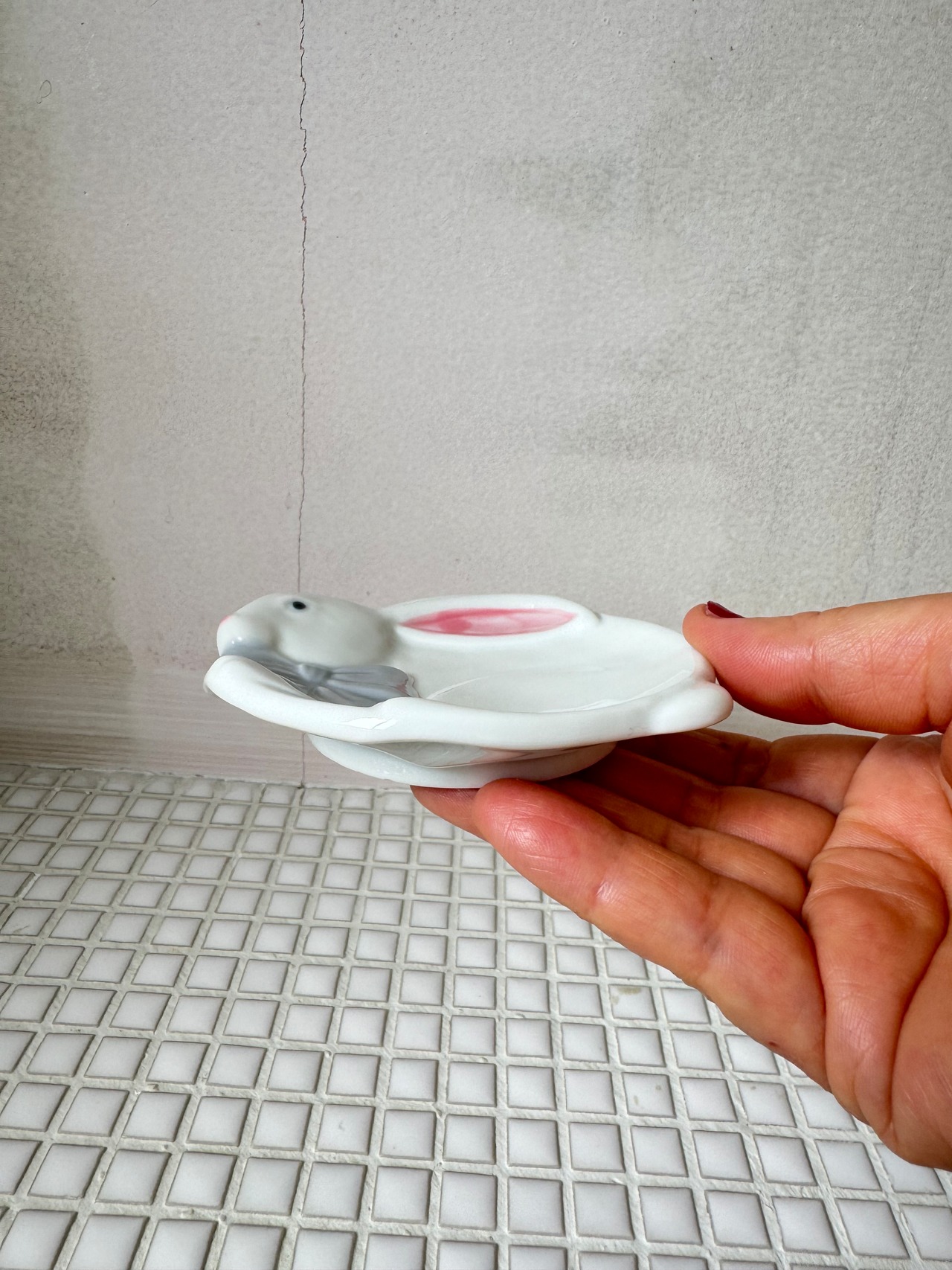 くるんと丸まったシルエットや、顔や耳やリボンの立体感がなんとも言えず可愛い。ちゃんと丸いしっぽがある所も心をくすぐります。