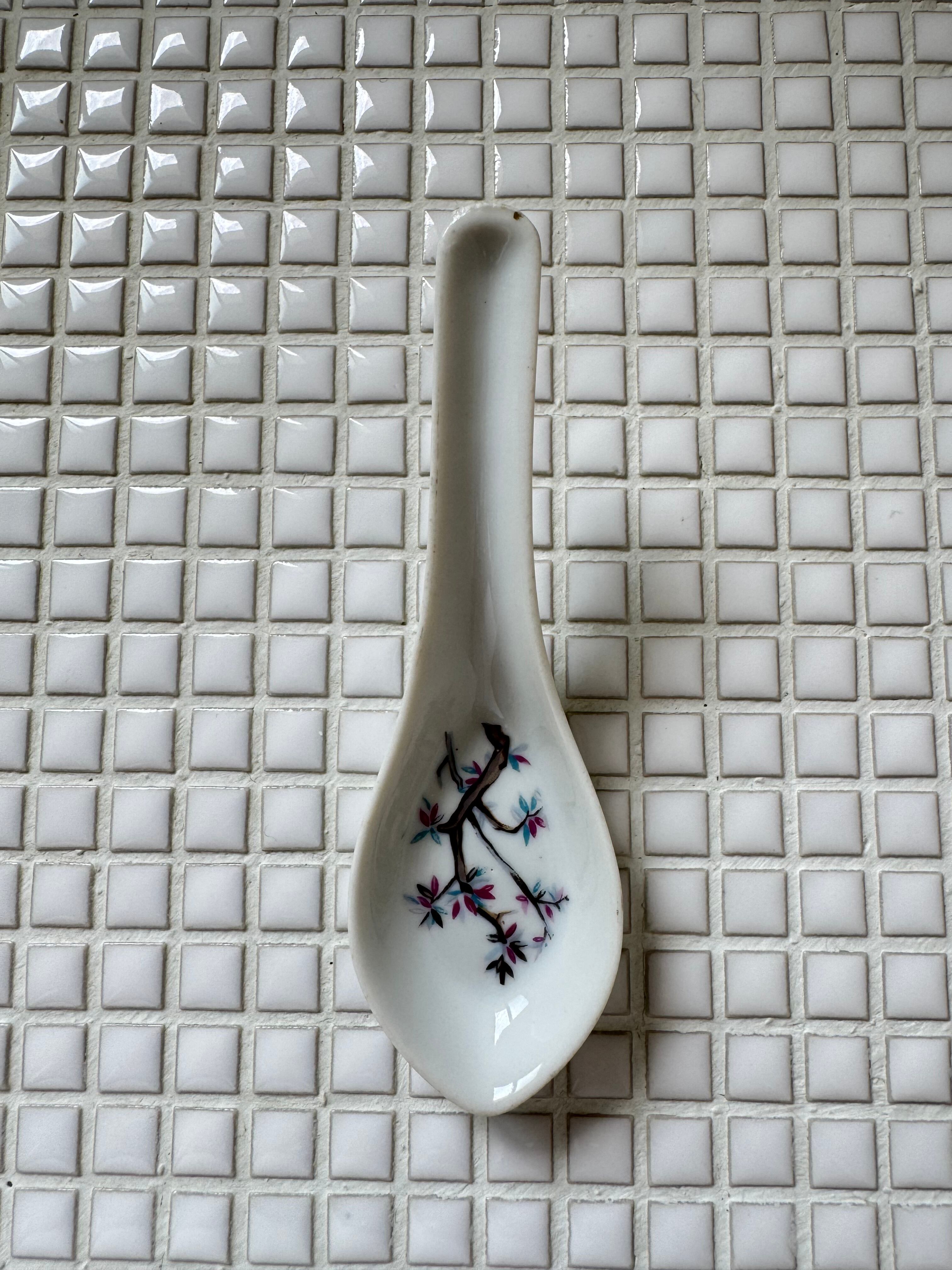 お花の模様とバックスタンプの感じがいい感じな昭和のレンゲ。