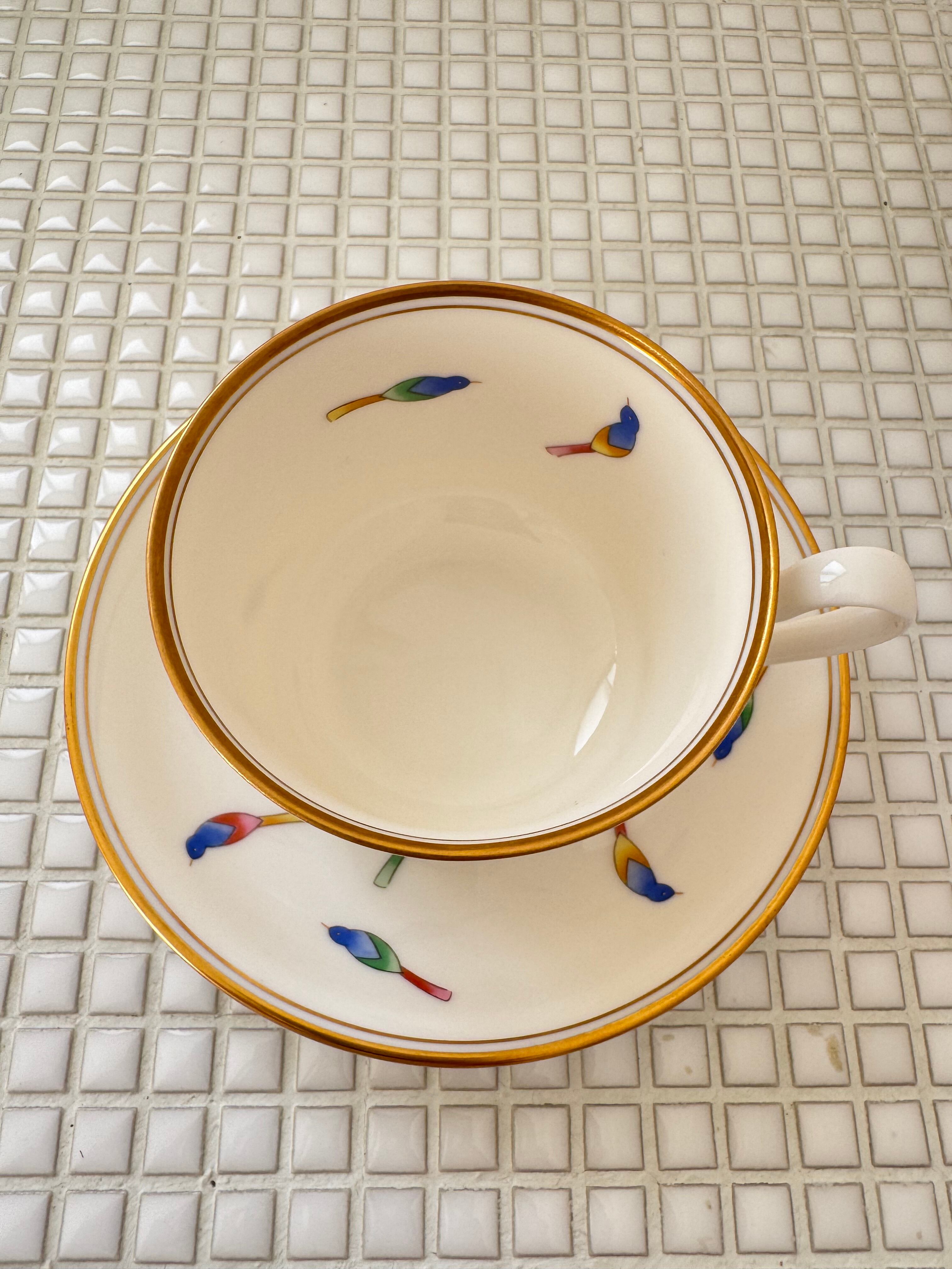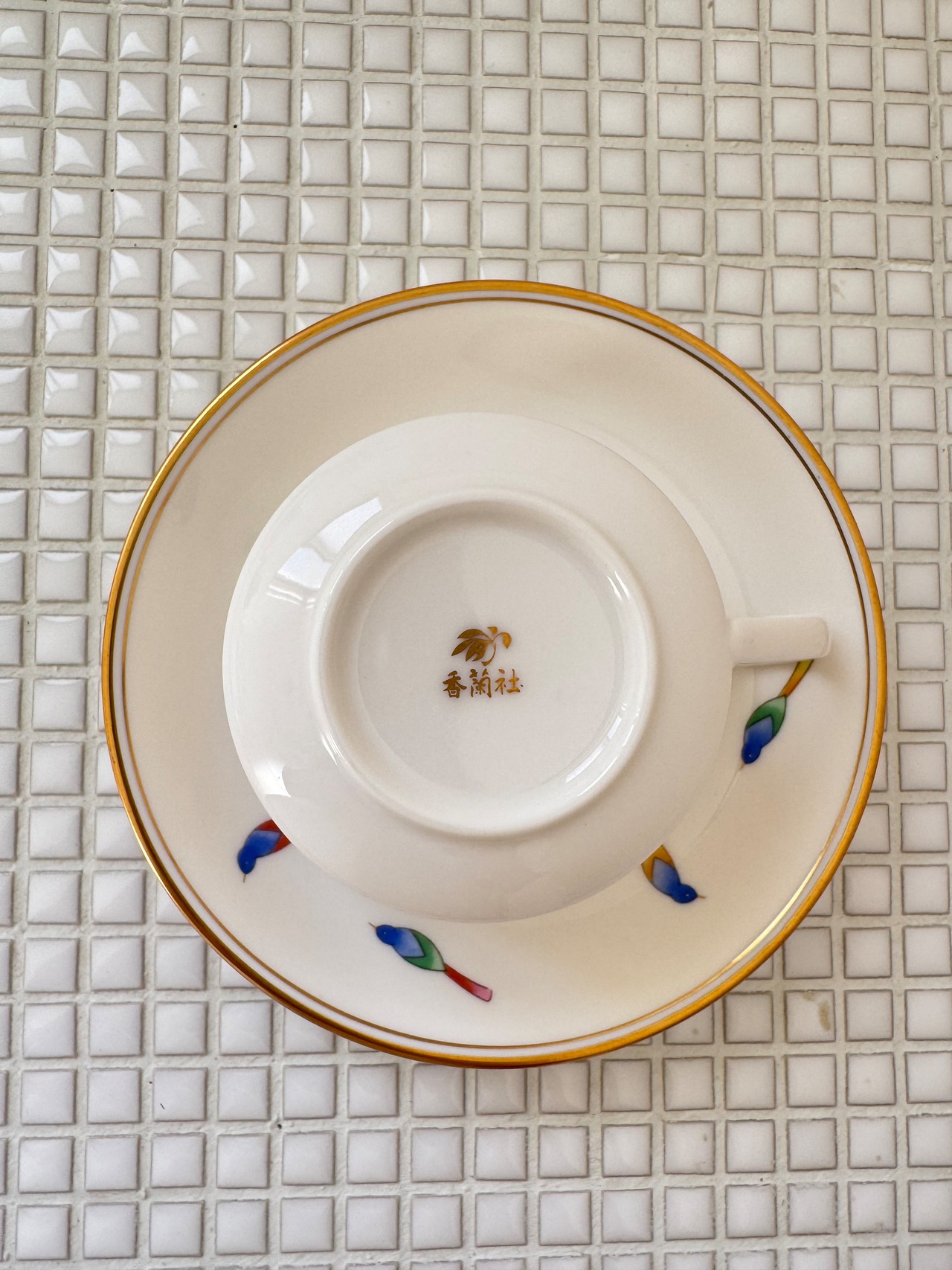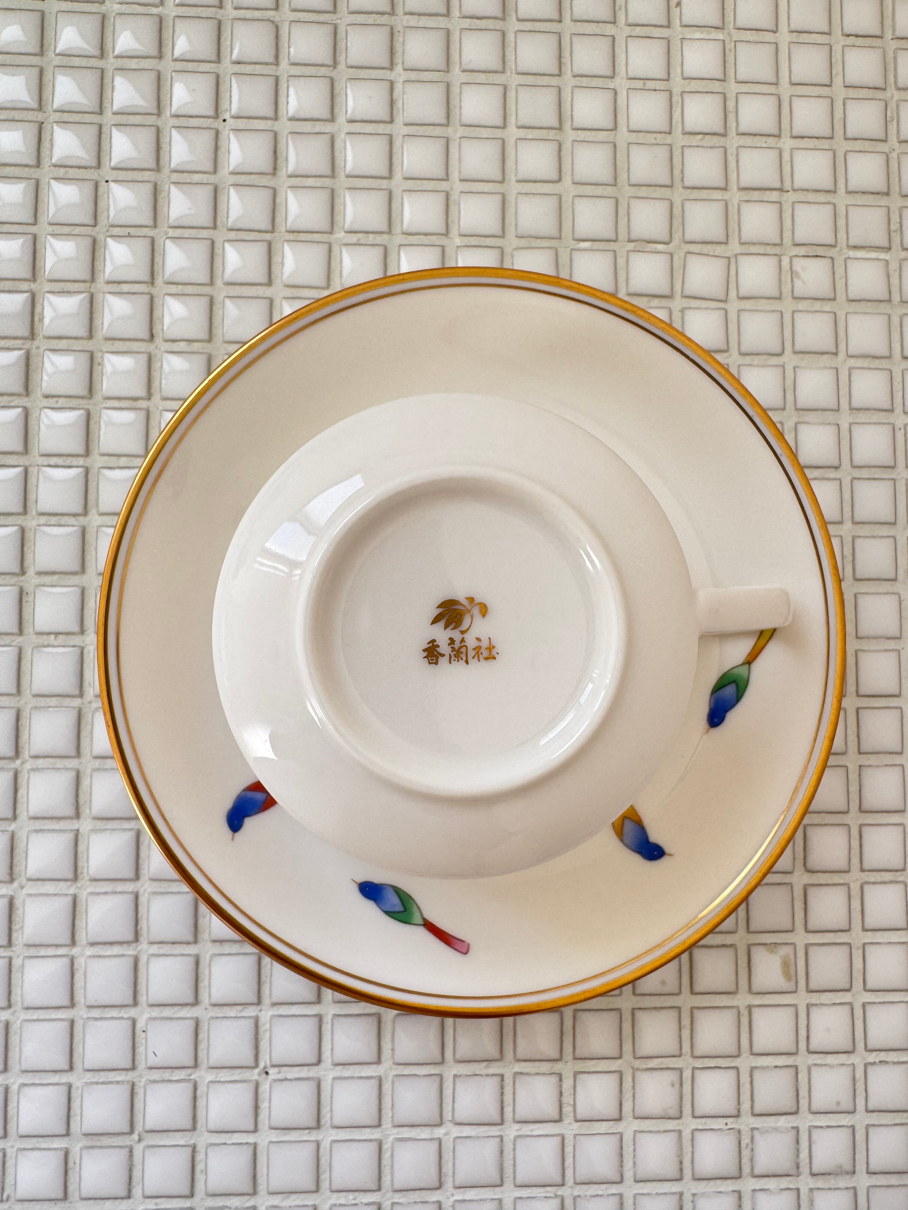 尾の長い、綺麗な色の鳥さんが可愛いカップ&ソーサー。香蘭社のお品です。