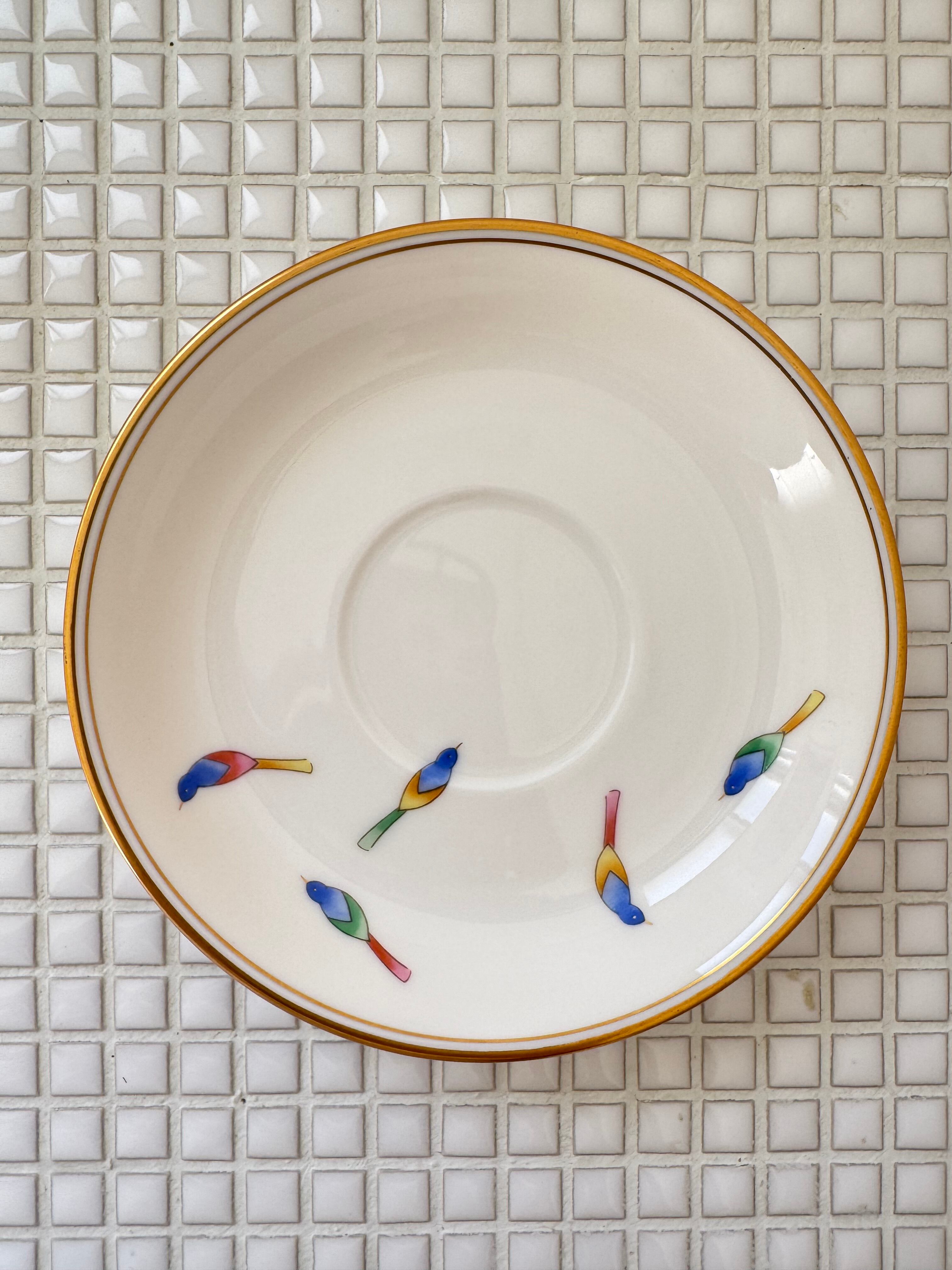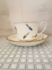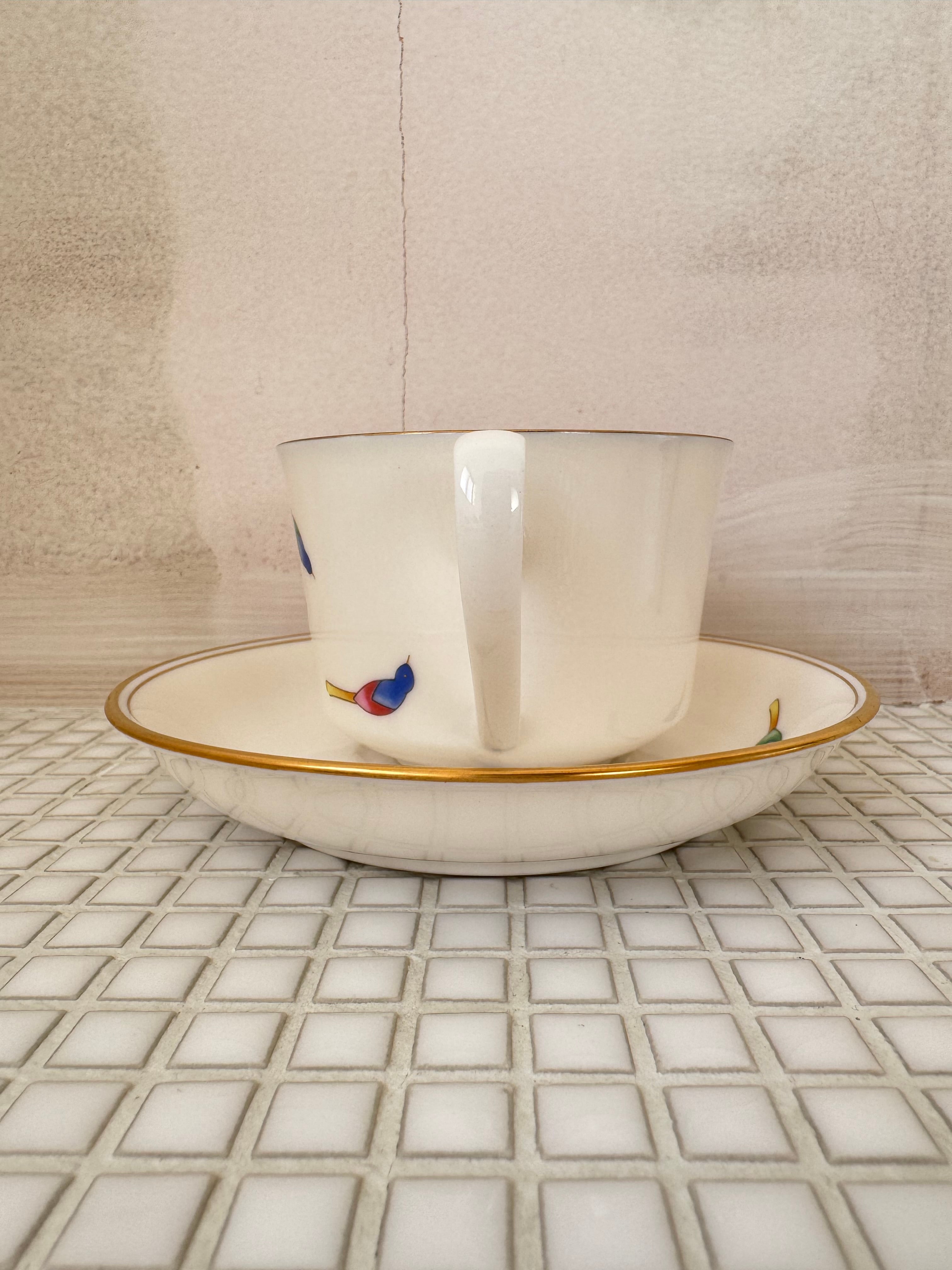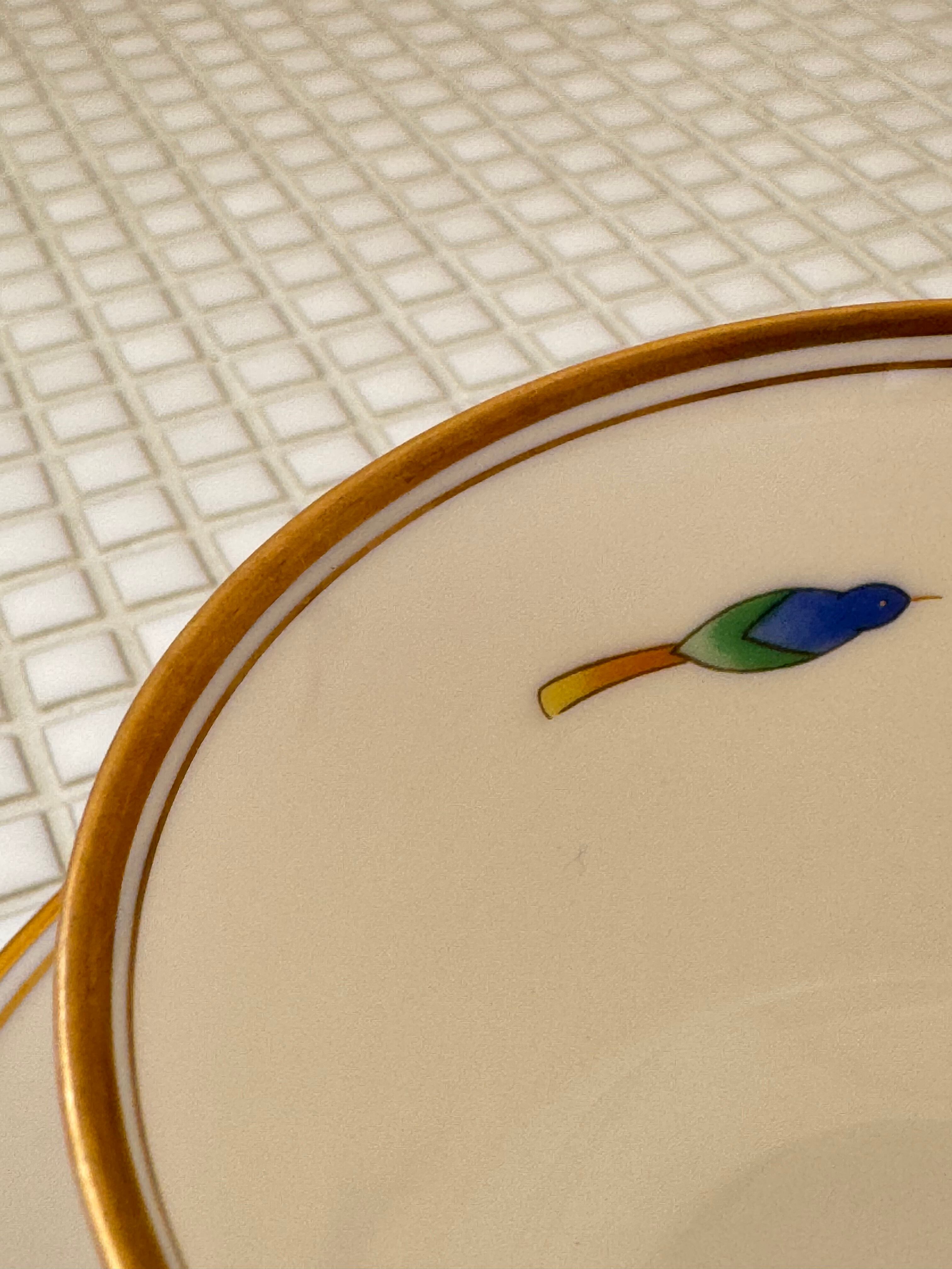 尾の長い、綺麗な色の鳥さんが可愛いカップ&ソーサー。香蘭社のお品です。