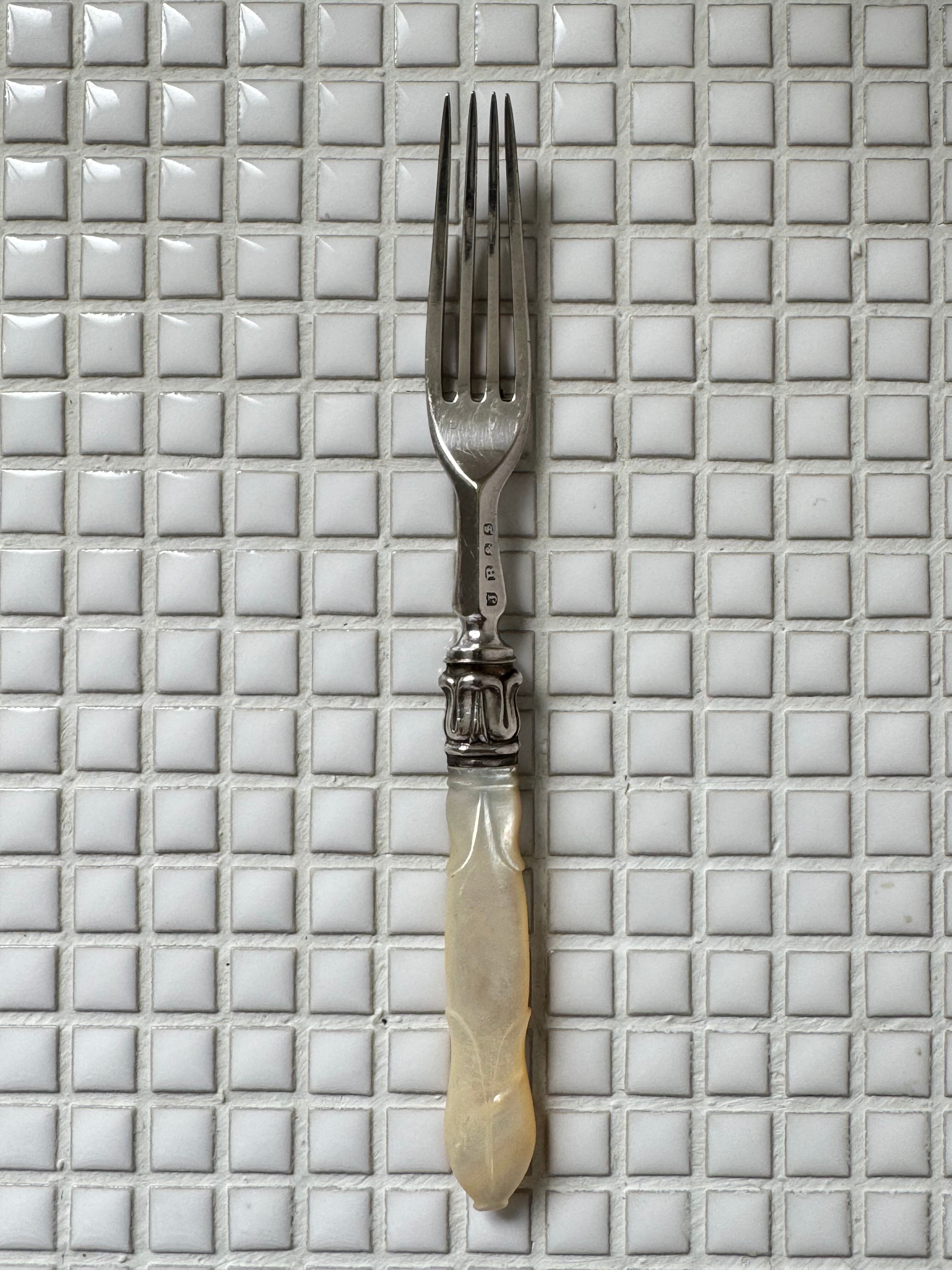 別ページにもマザーオブパールのデザートフォークシリーズがございますので、ぜひ合わせてご覧ください。
