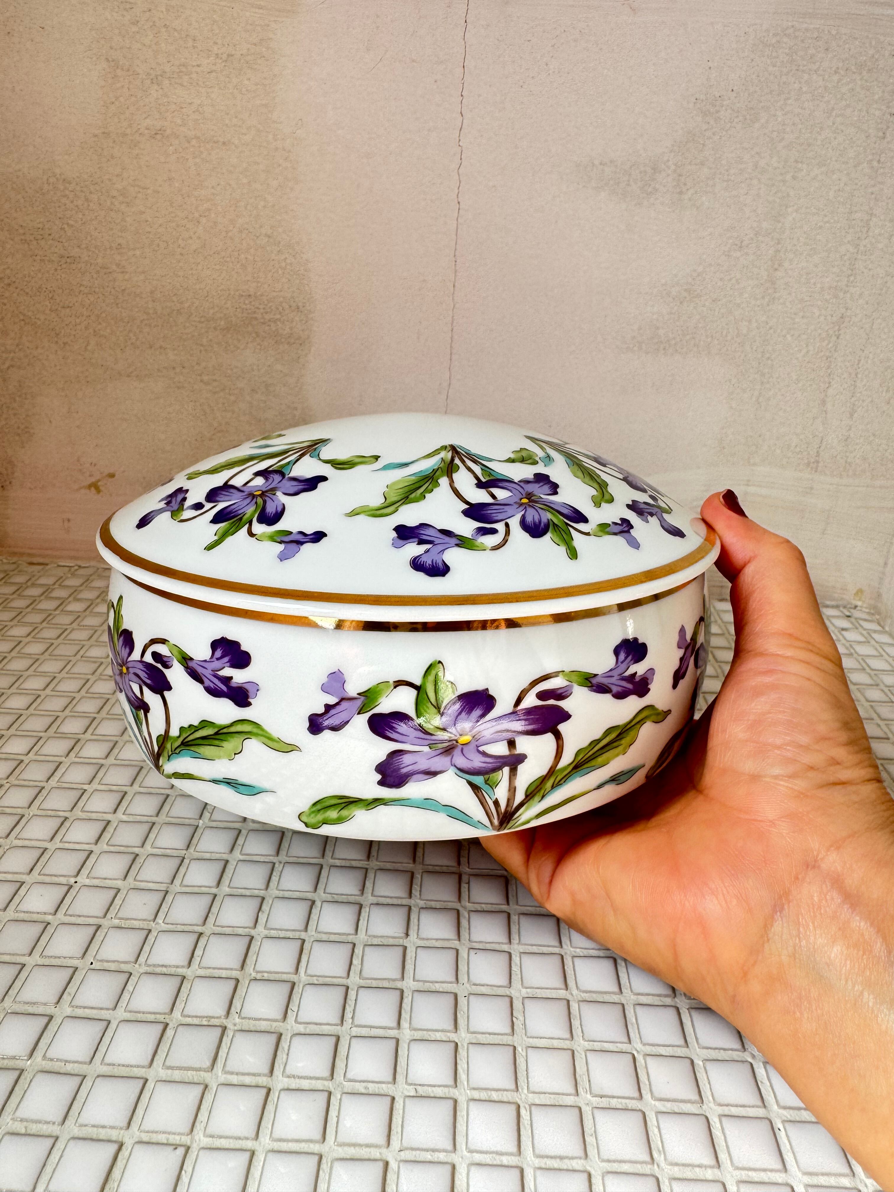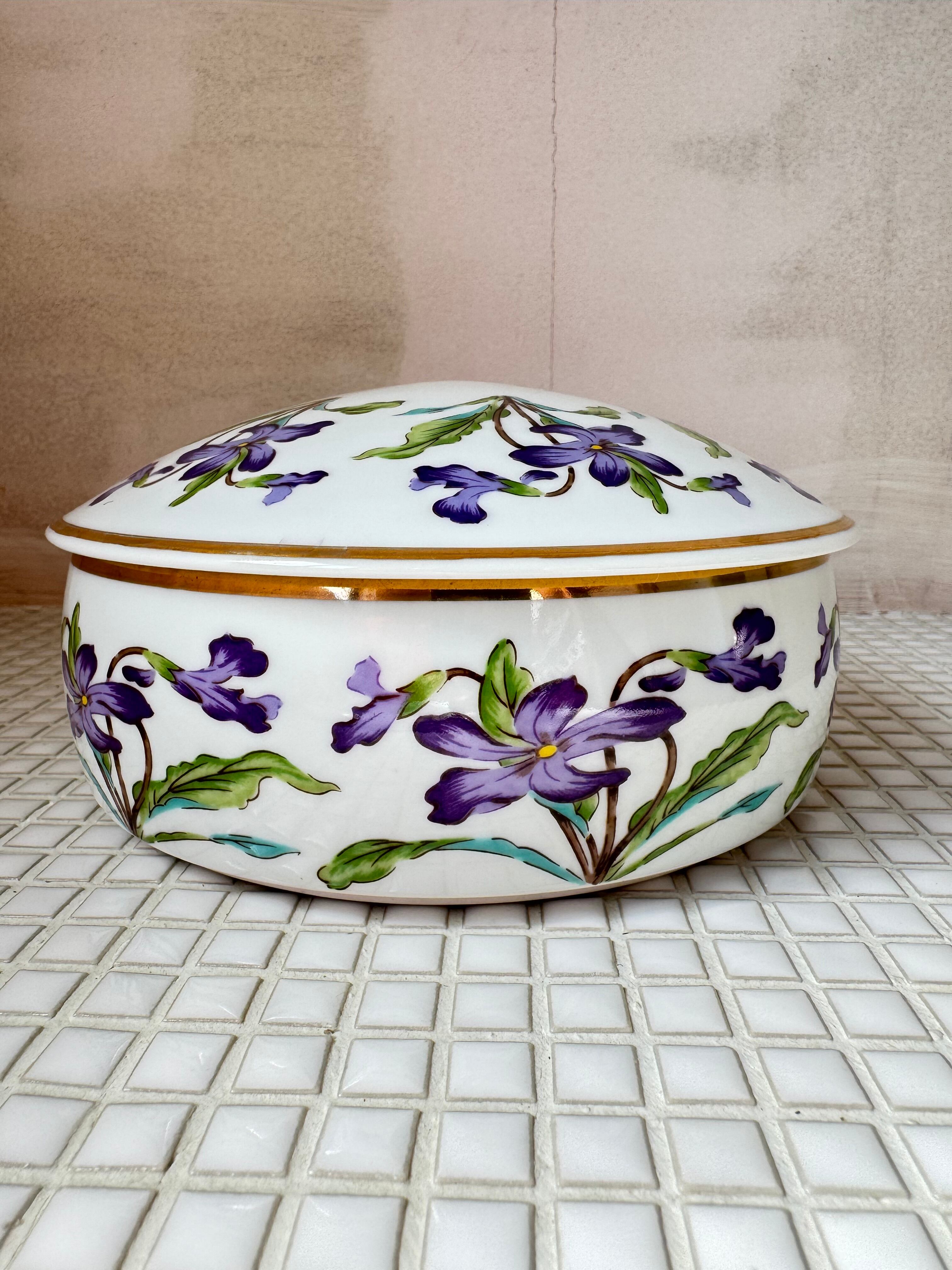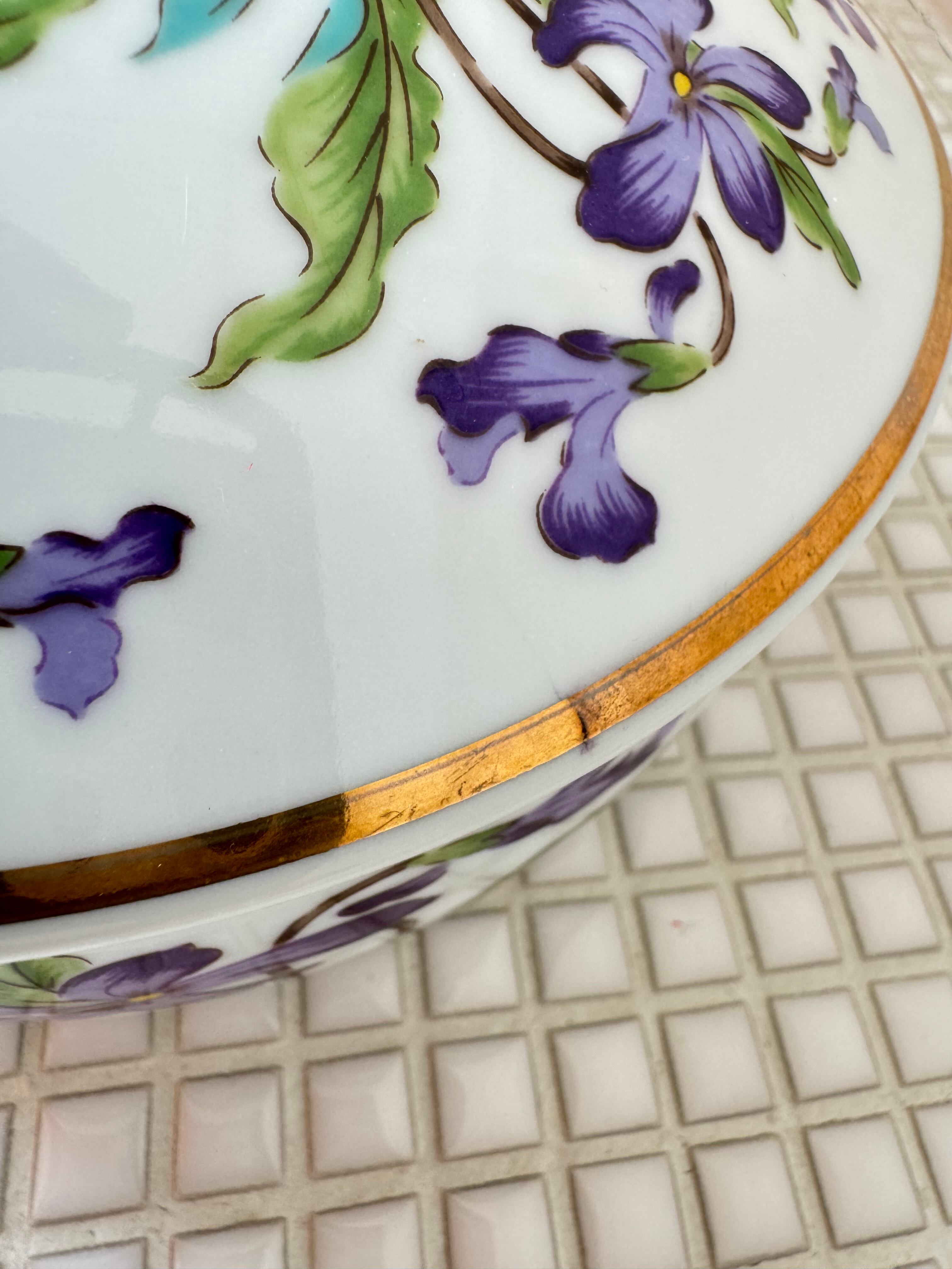 スミレの絵の陶器の入れ物