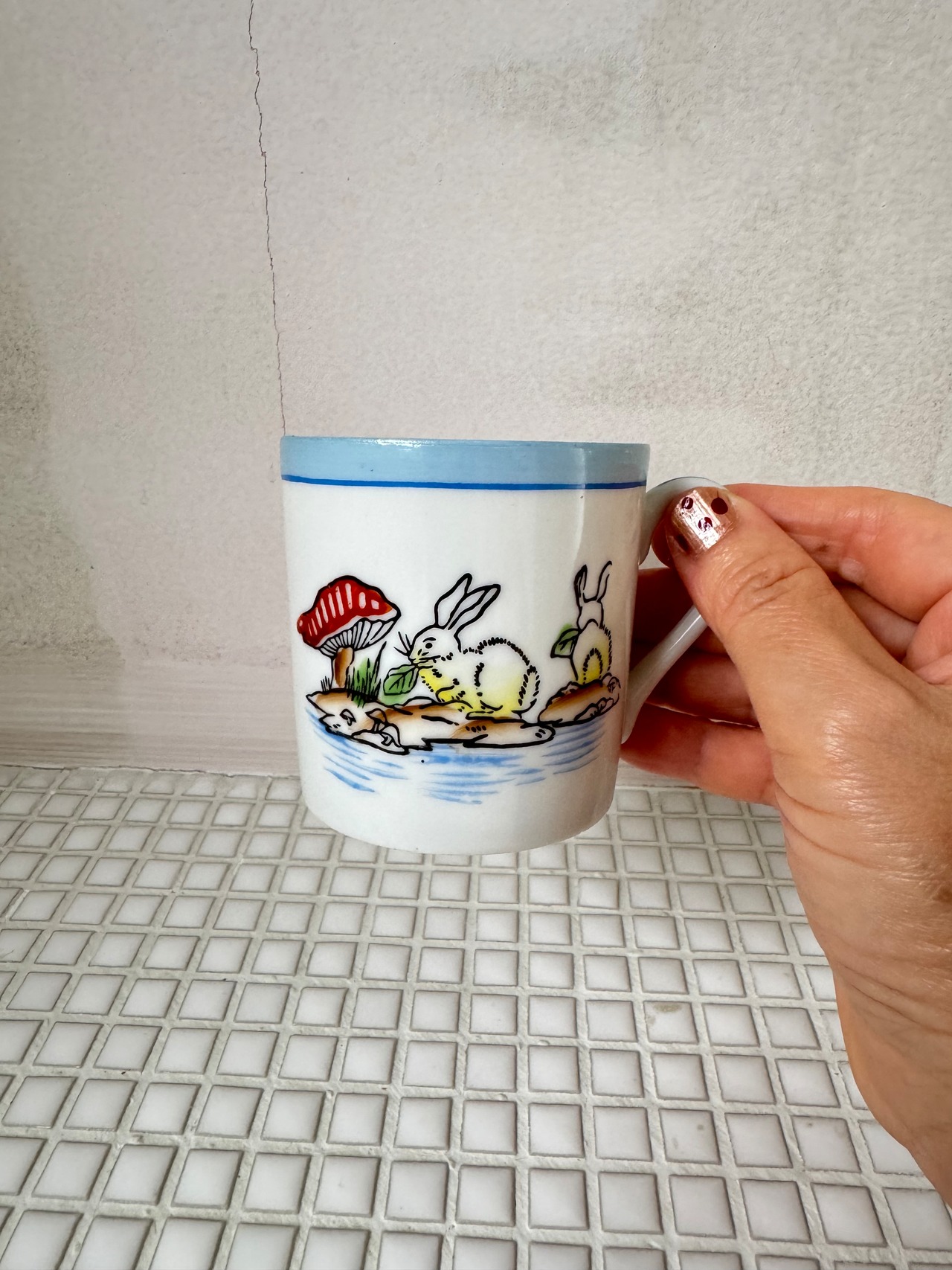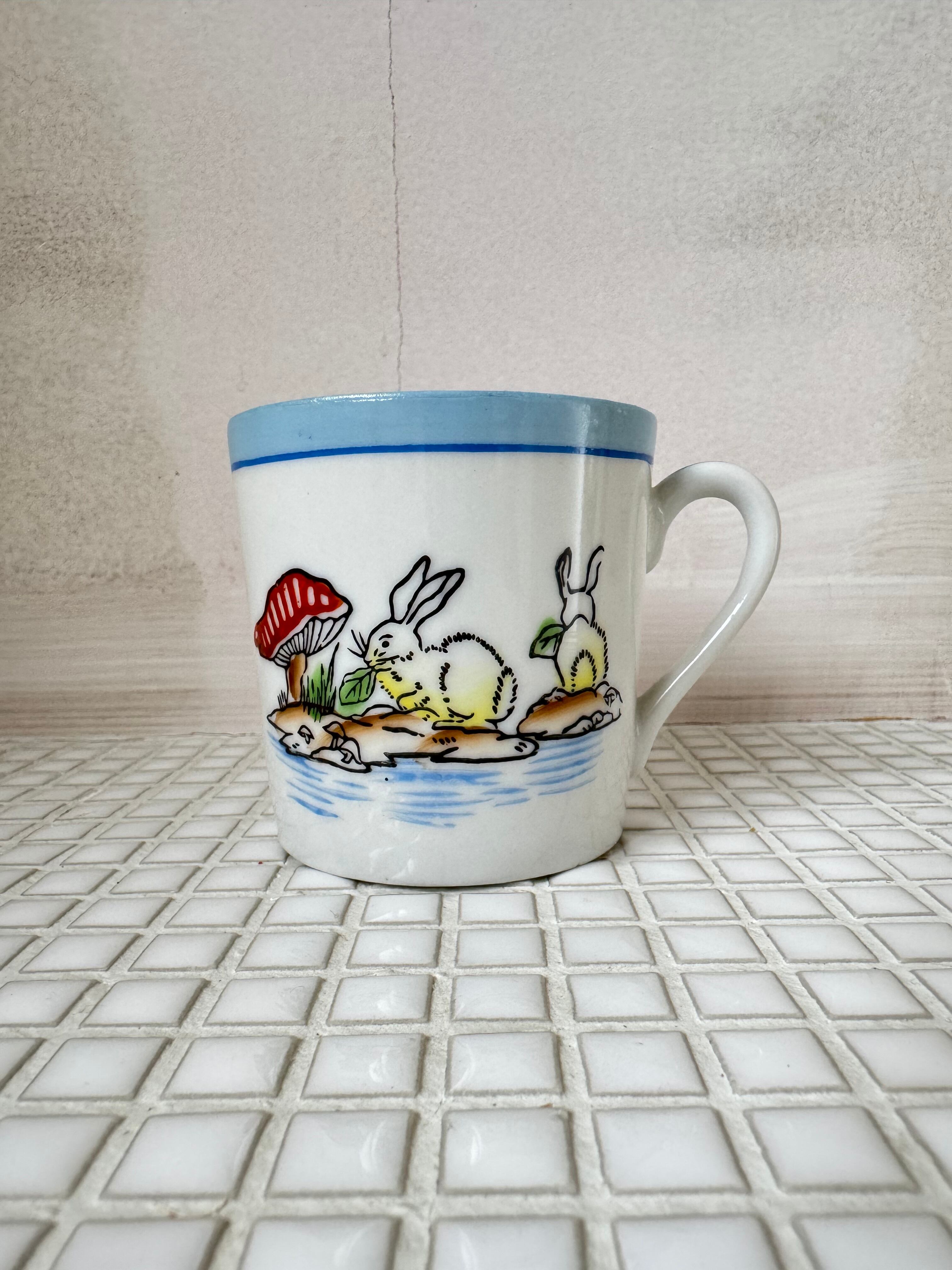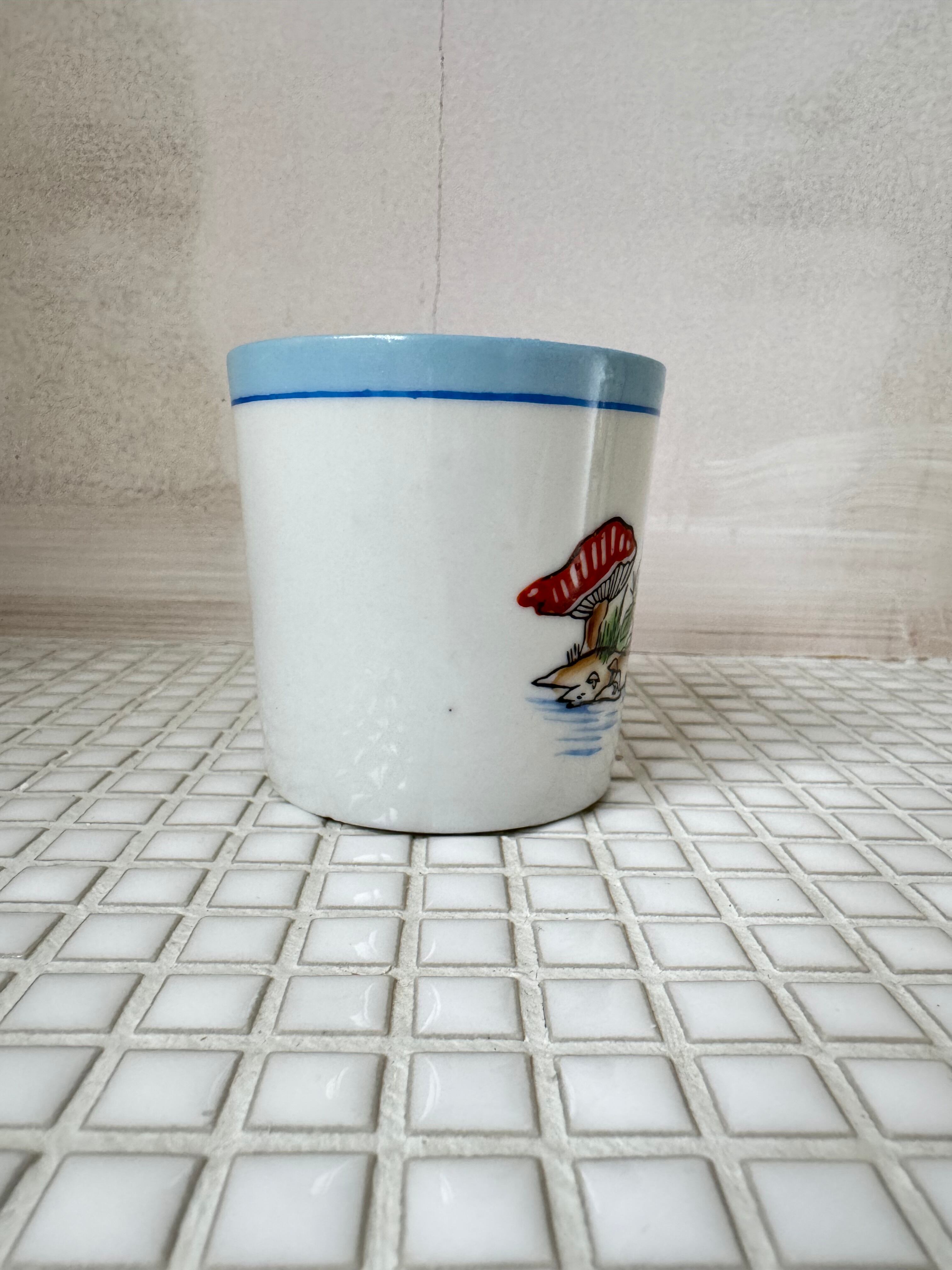うさぎと、毒毒したキノコが可愛いマグカップ。小さなサイズでお子様用でしょうか。