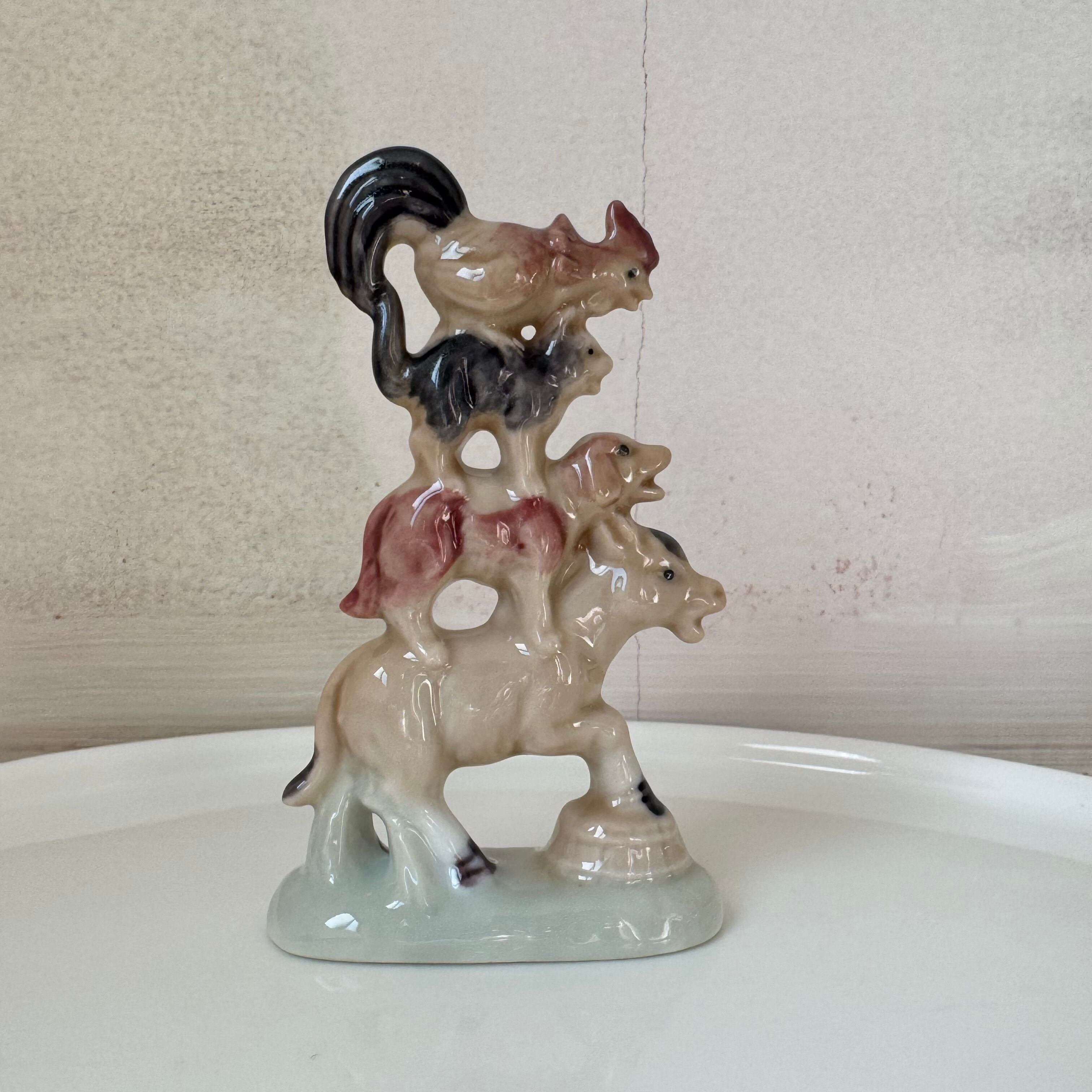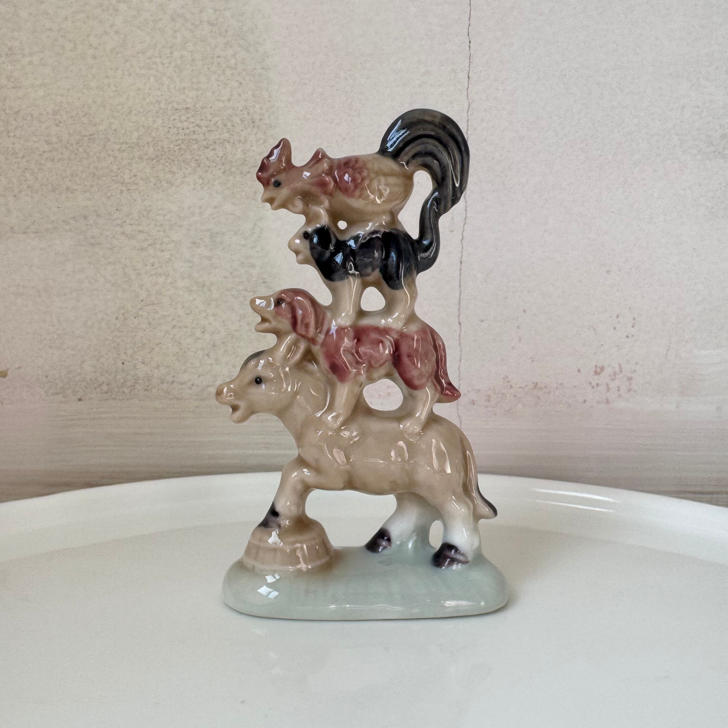 ブレーメンの音楽隊が瀬戸焼で可愛く作られた置物。