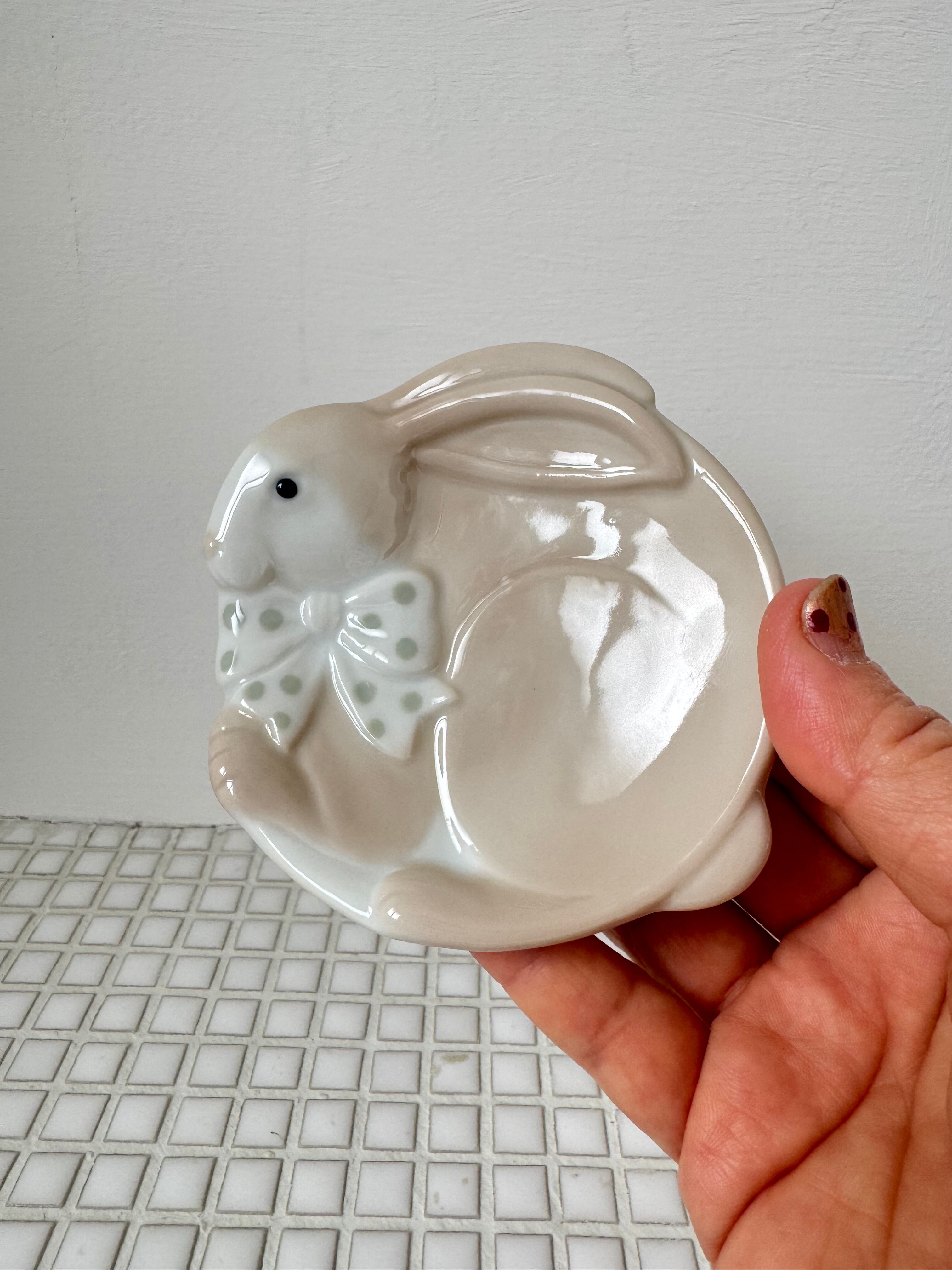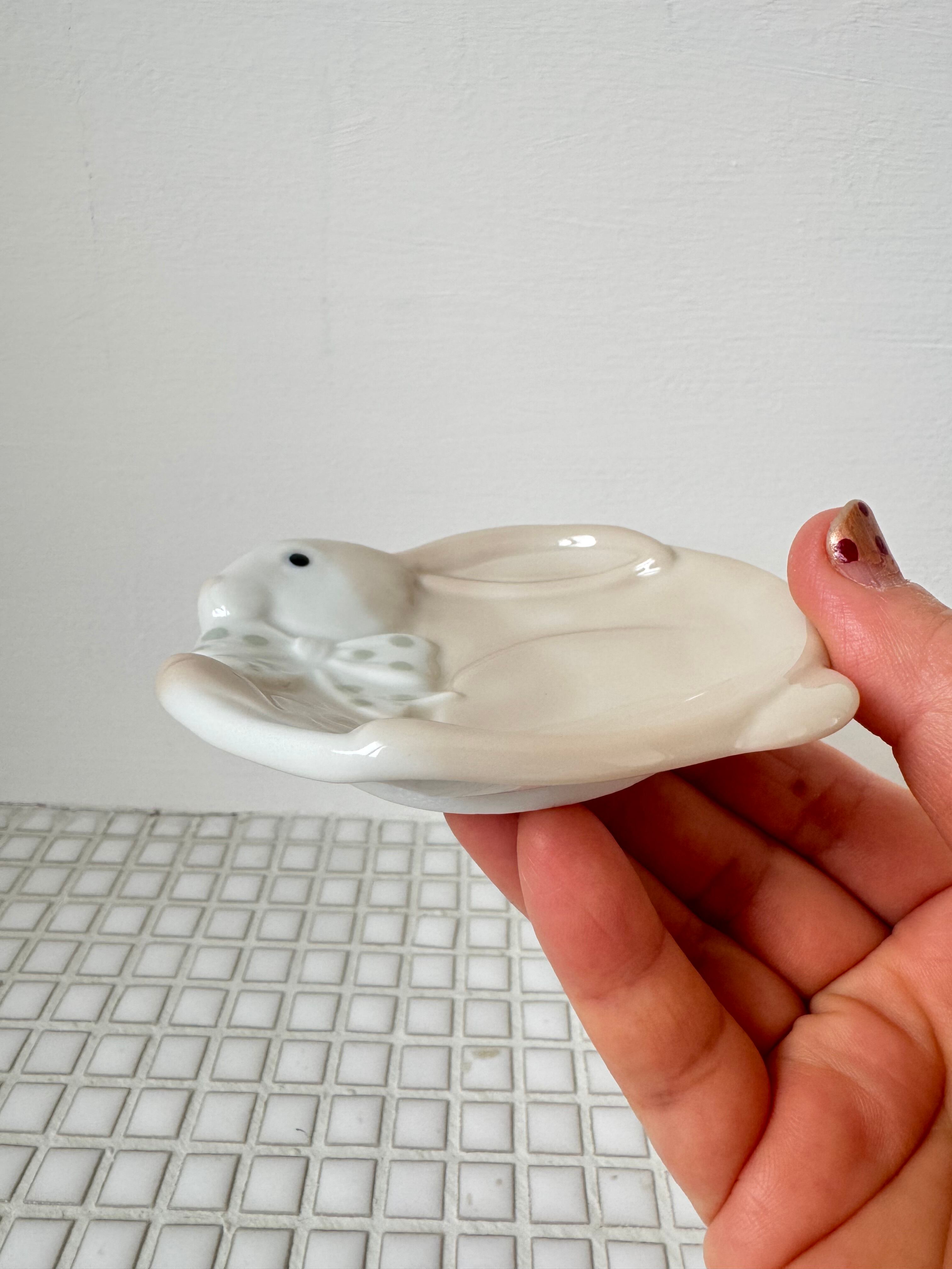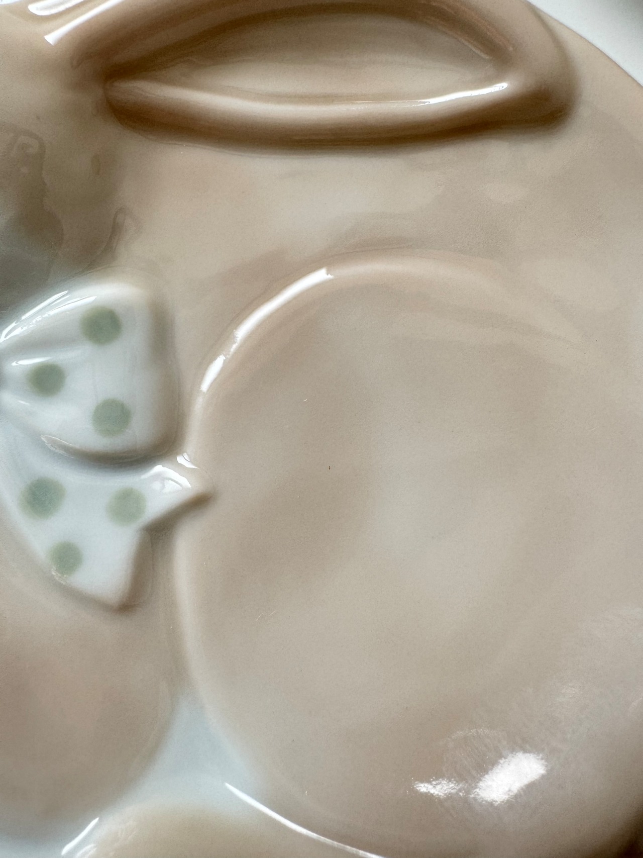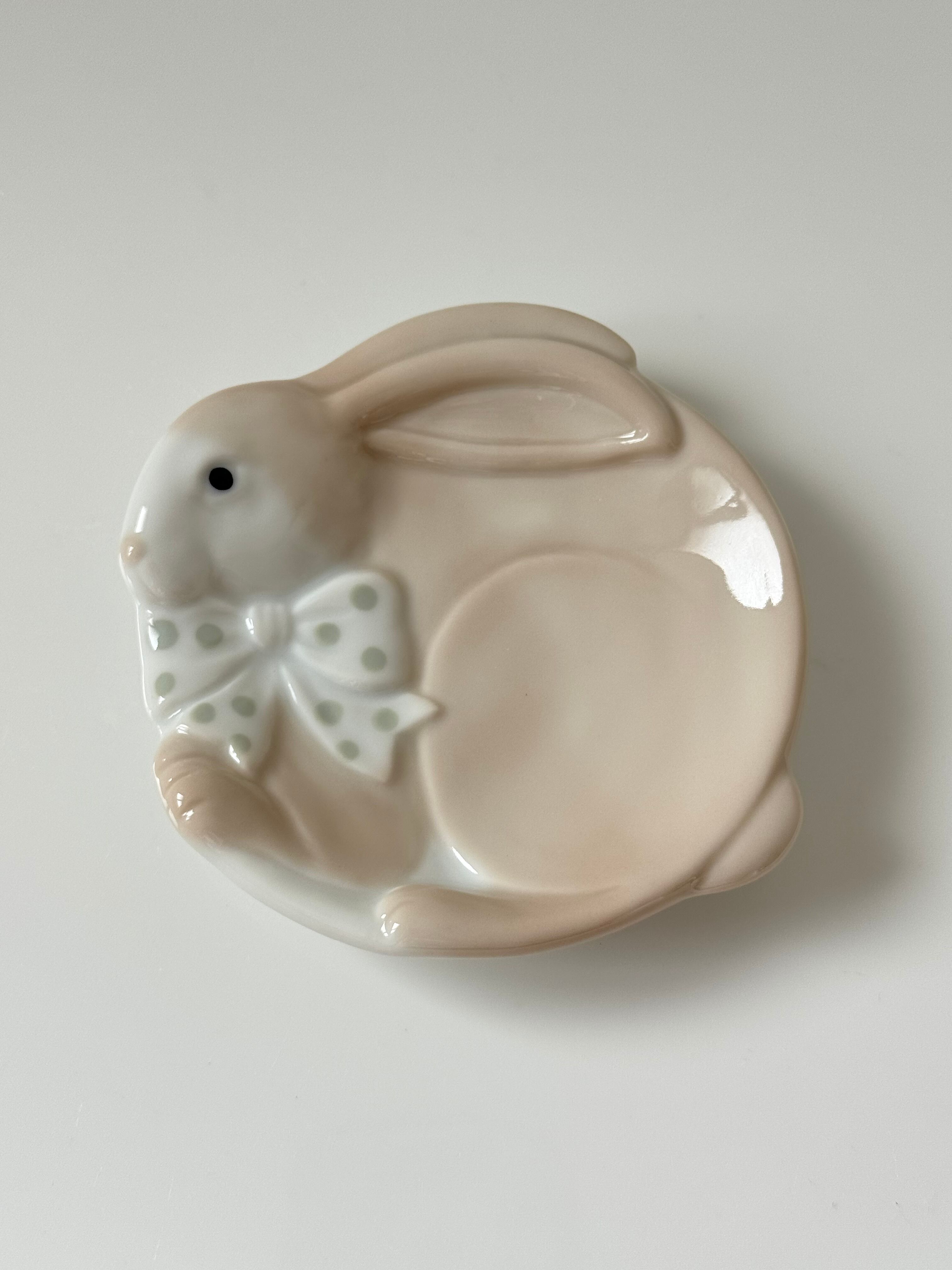 くるんと丸まったシルエットや、顔や耳やリボンの立体感がなんとも言えず可愛い。ちゃんと丸いしっぽがある所も心をくすぐります。