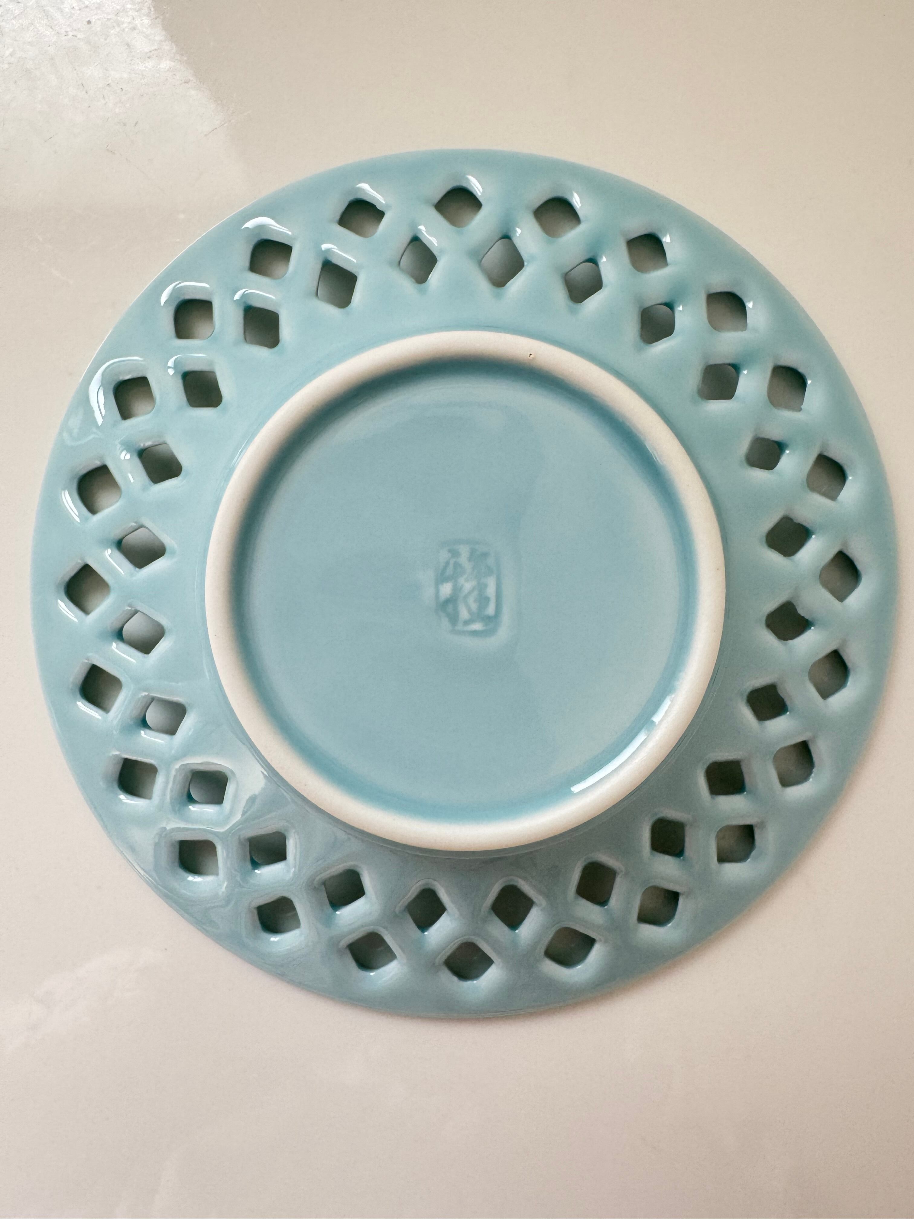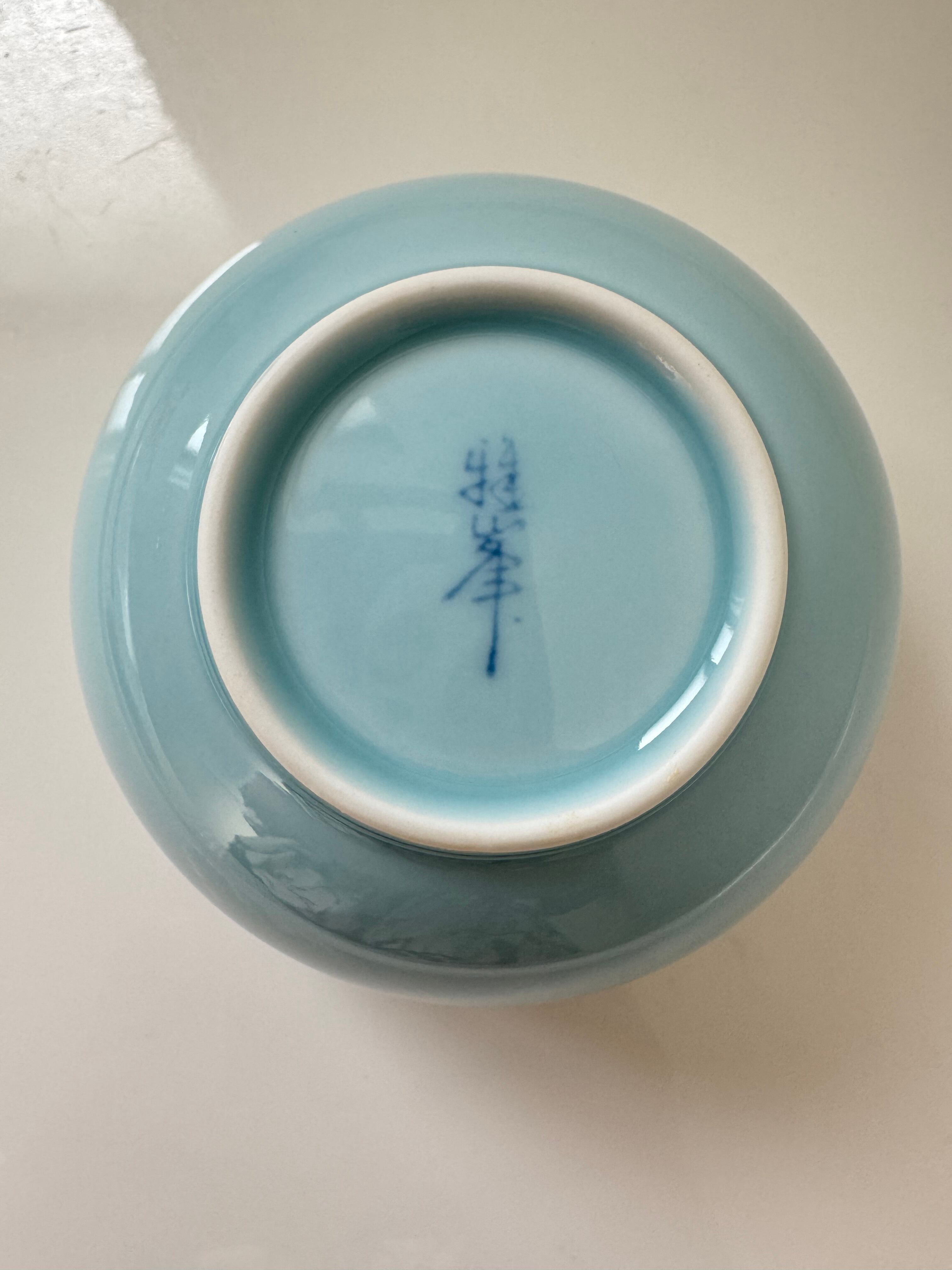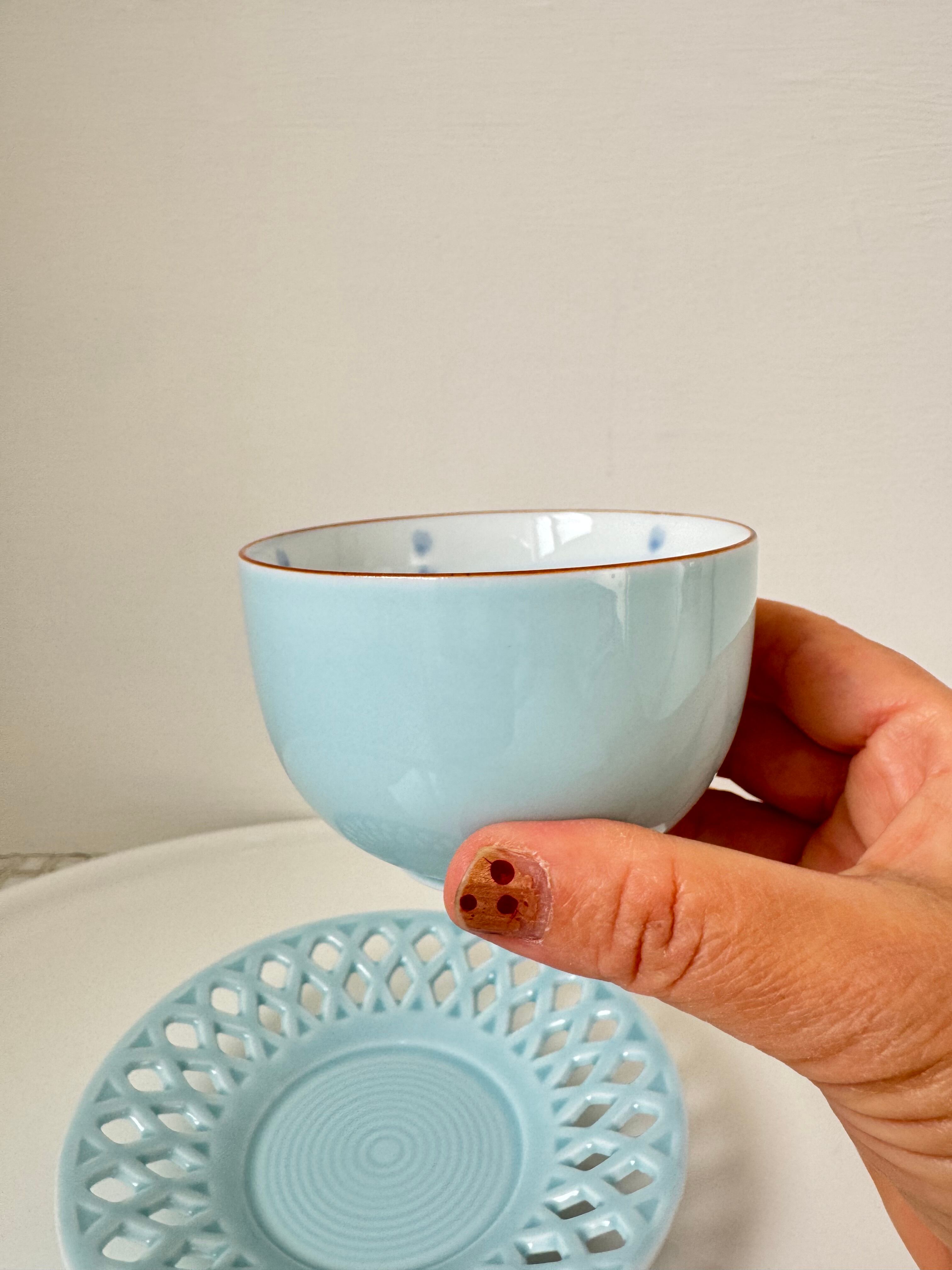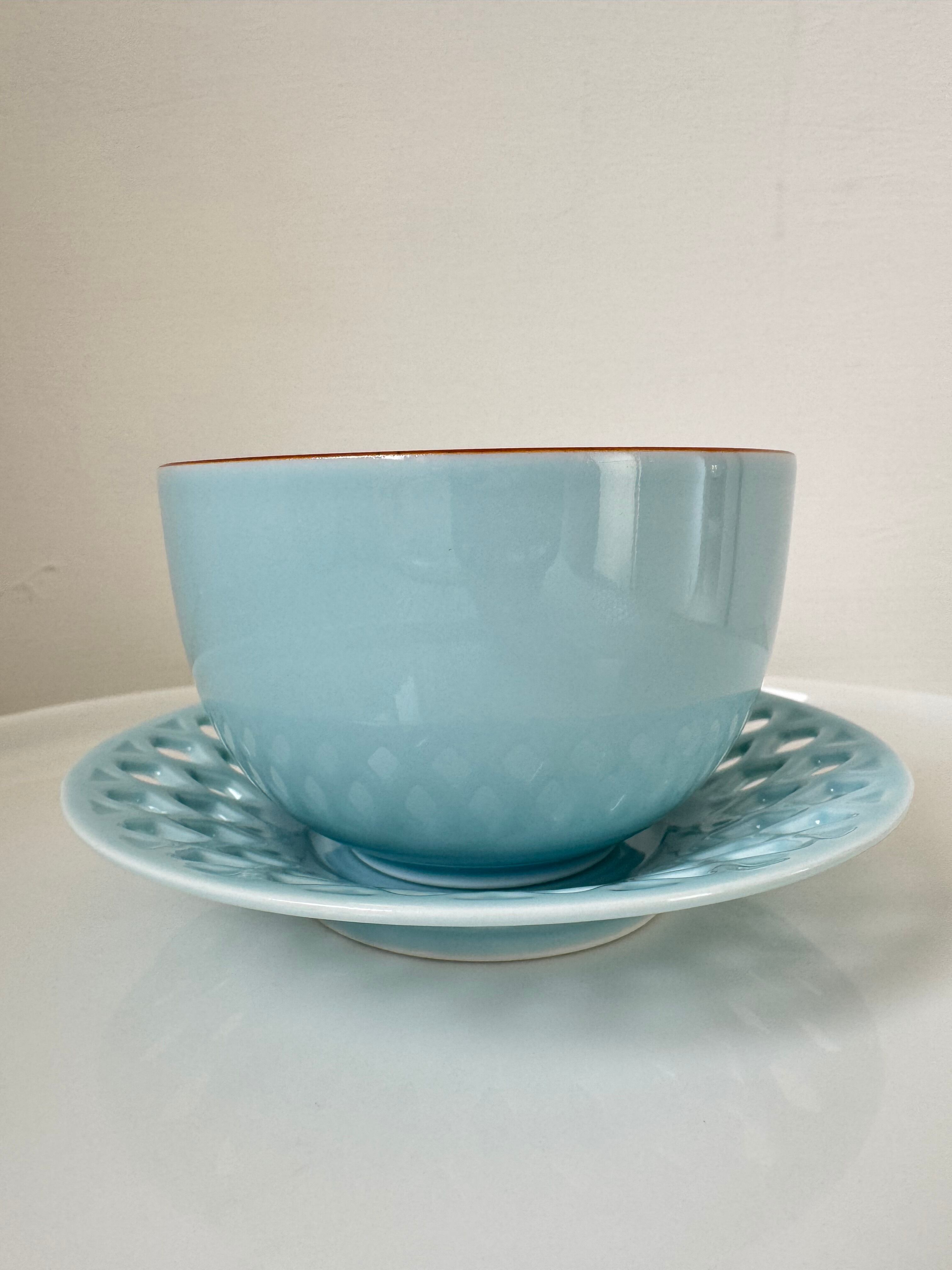 水色が綺麗な有田焼の茶托付きお湯呑み。