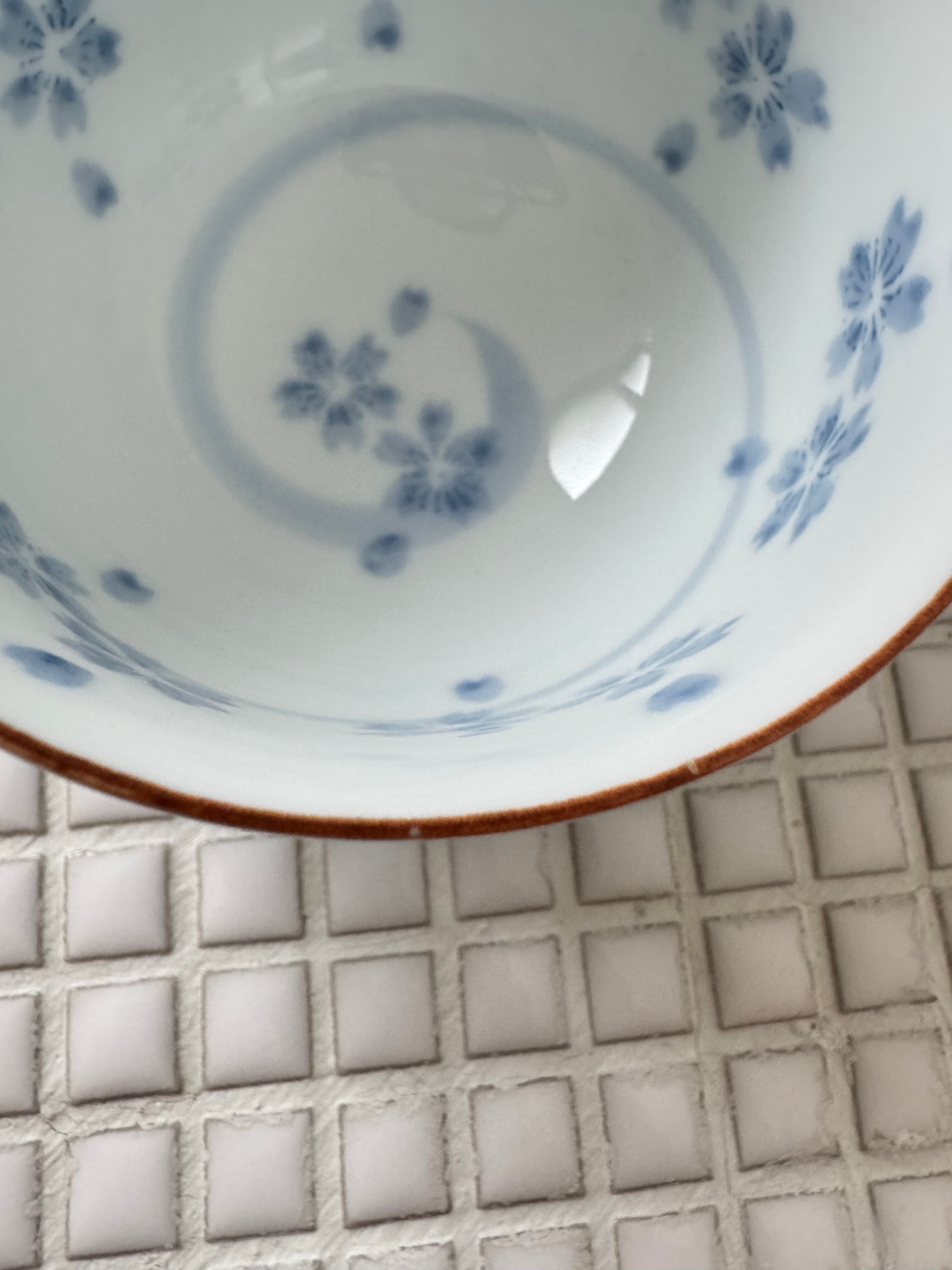 縁の部分の茶色のラインが剥がれている箇所があります。欠けではないのですが。最後の4枚の画像をご確認くださいませ。