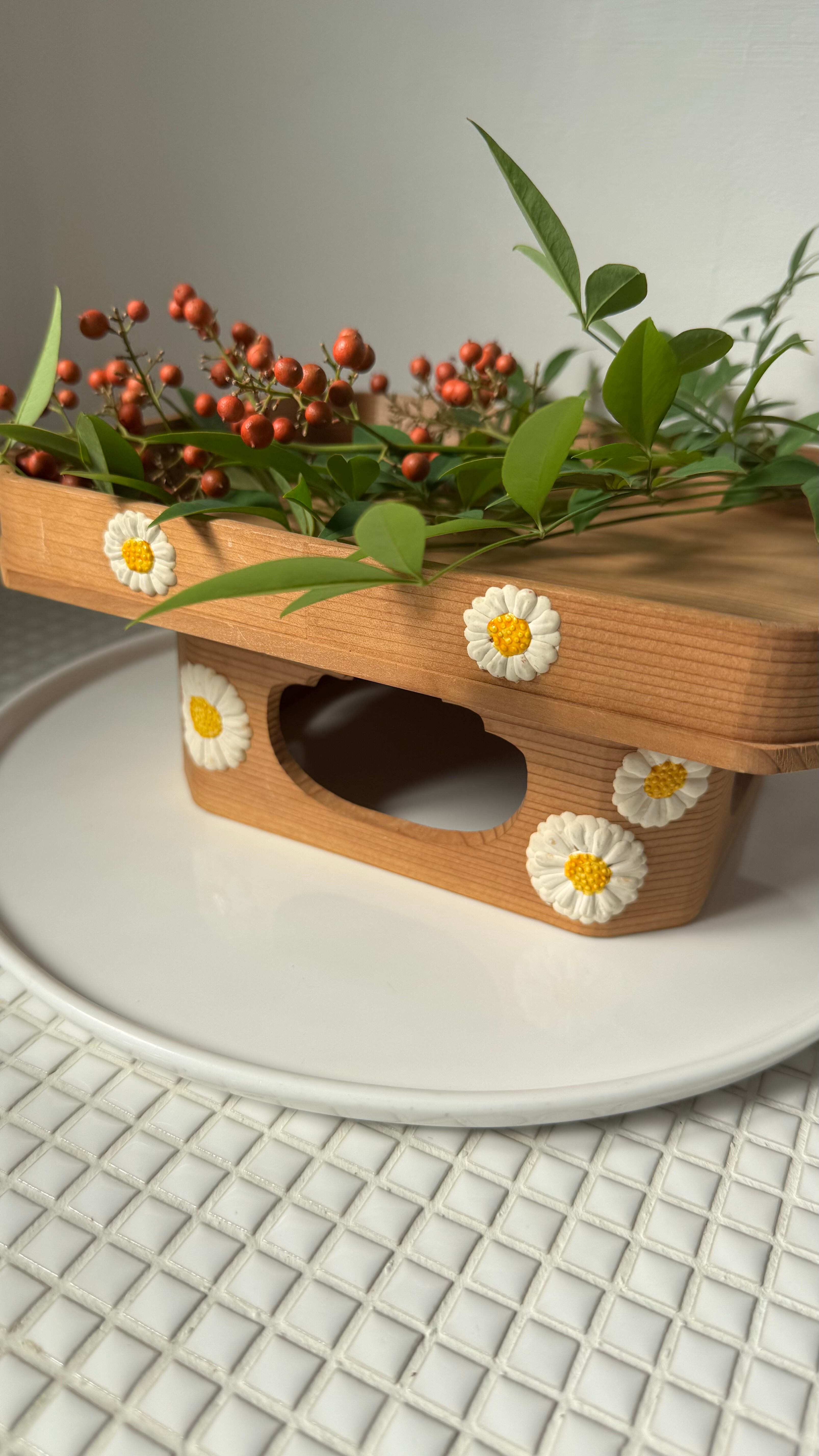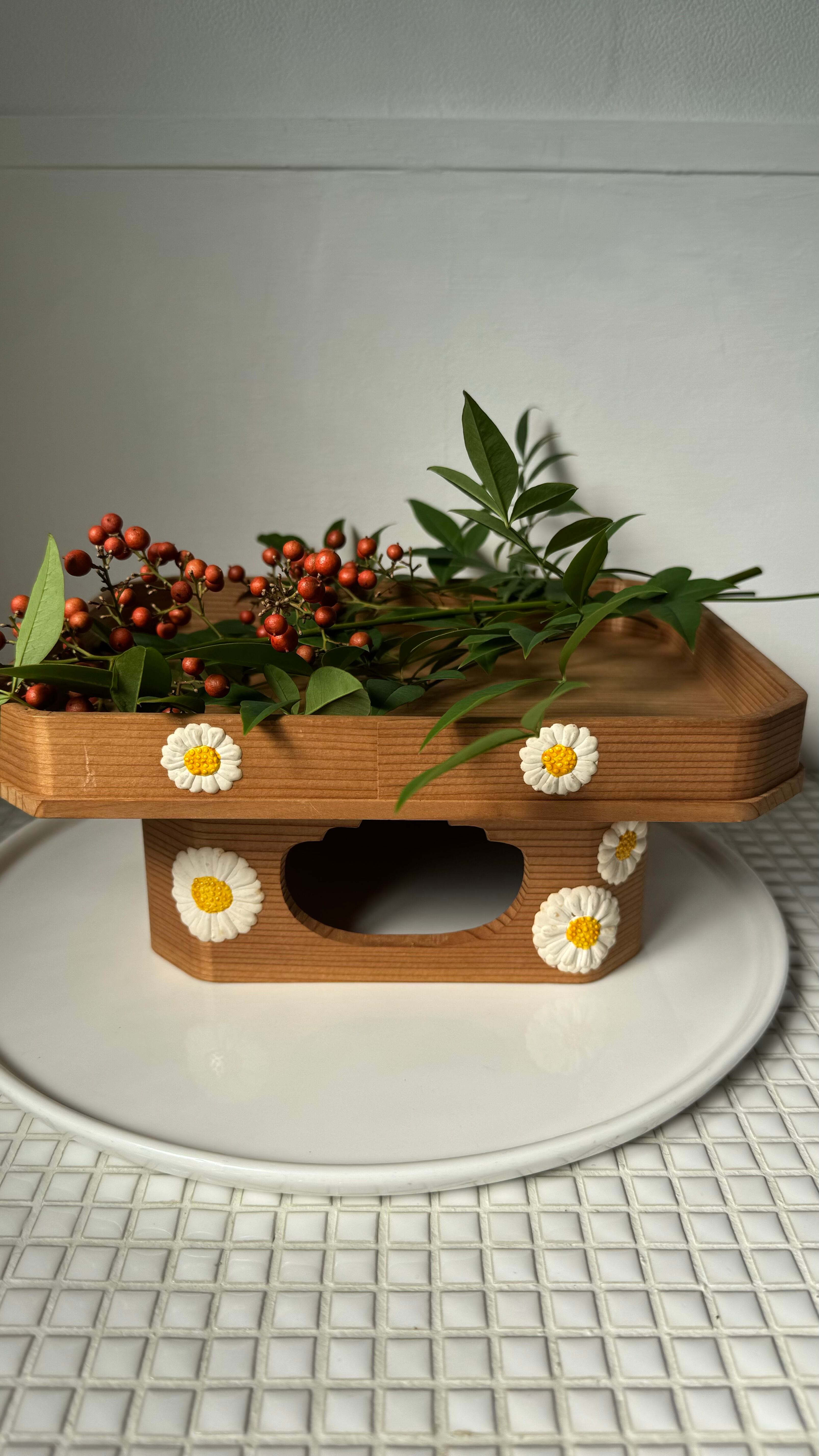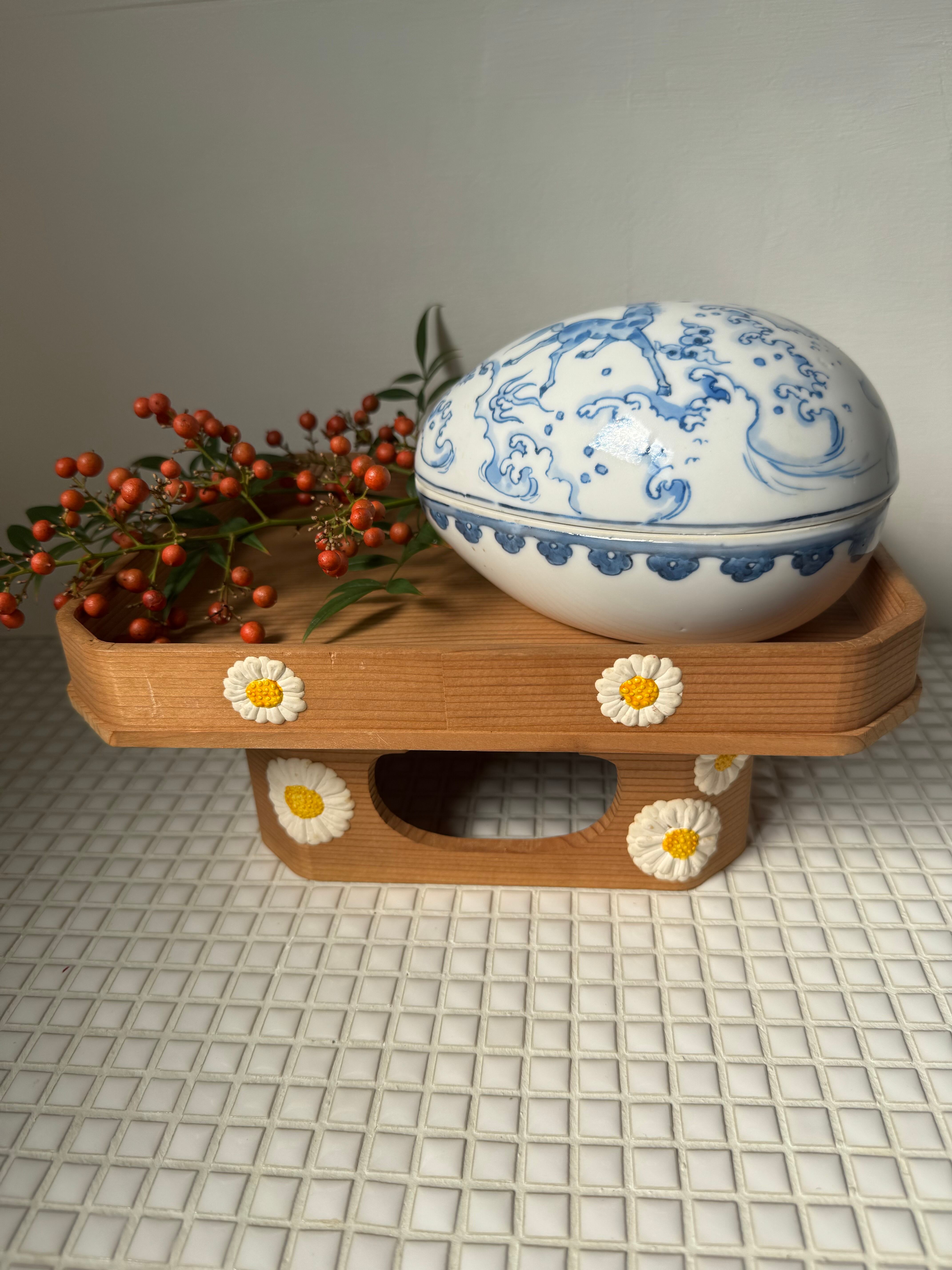 こちらはぷっくりとした菊の模様が可愛い飾り台。