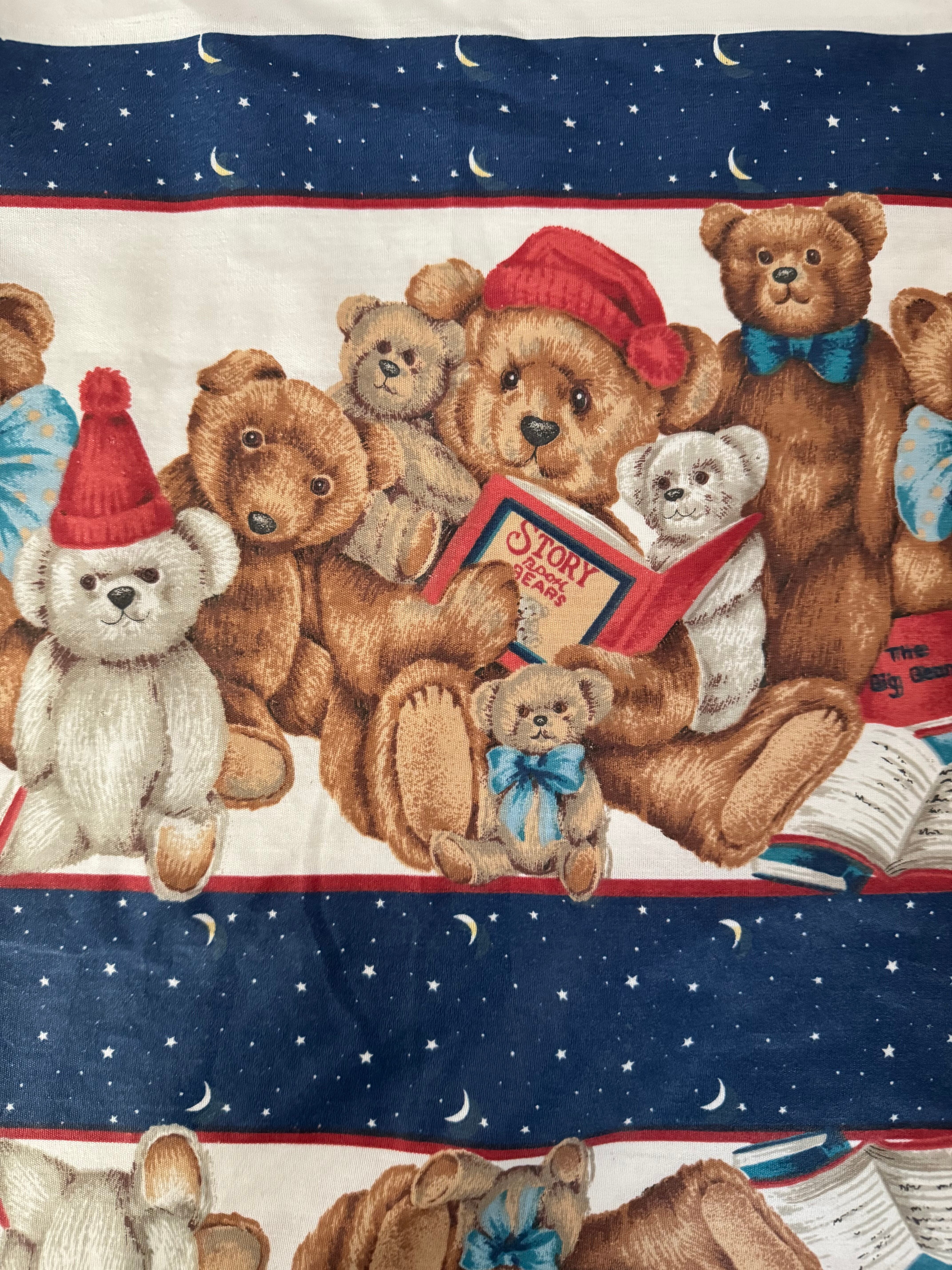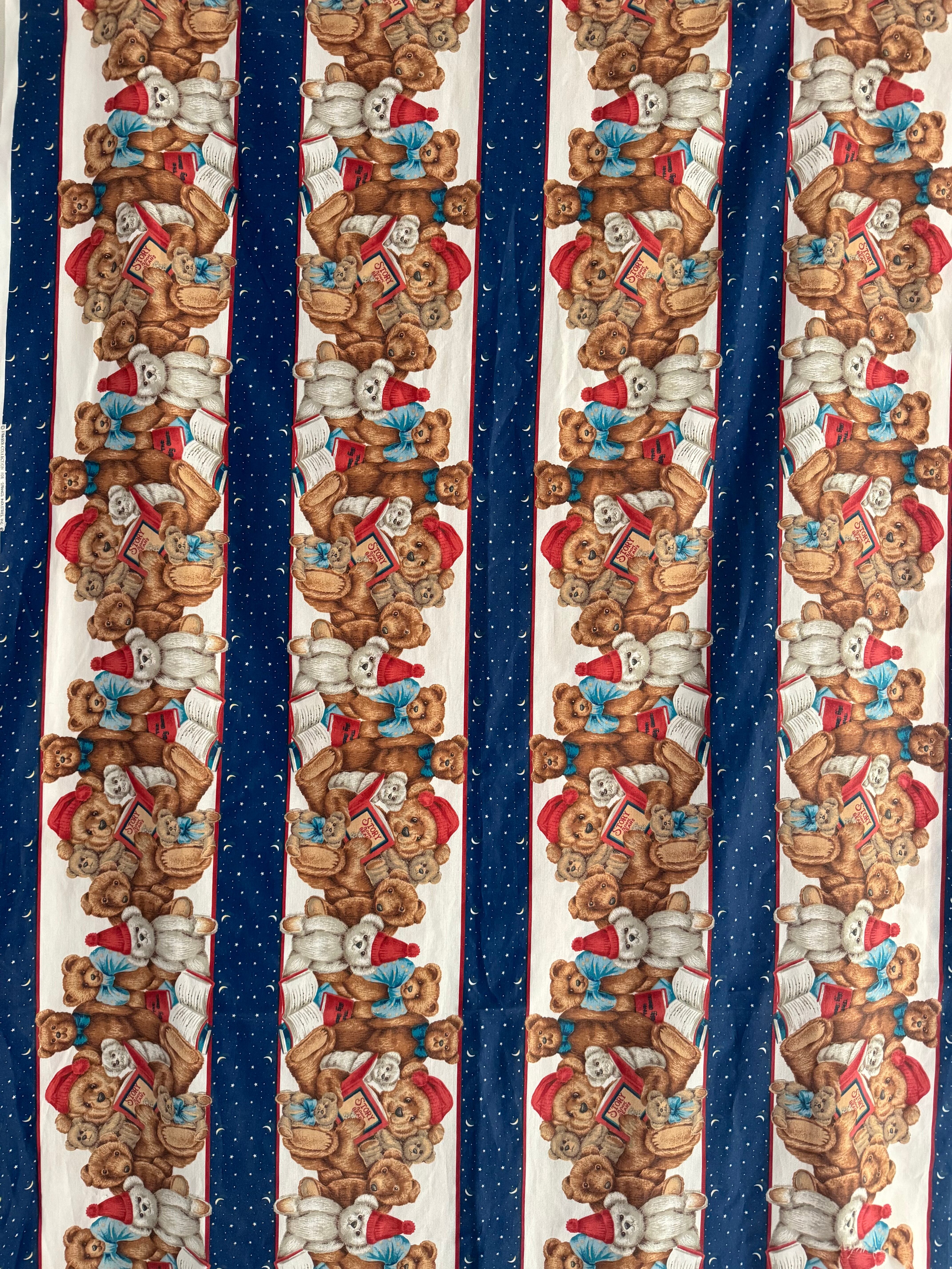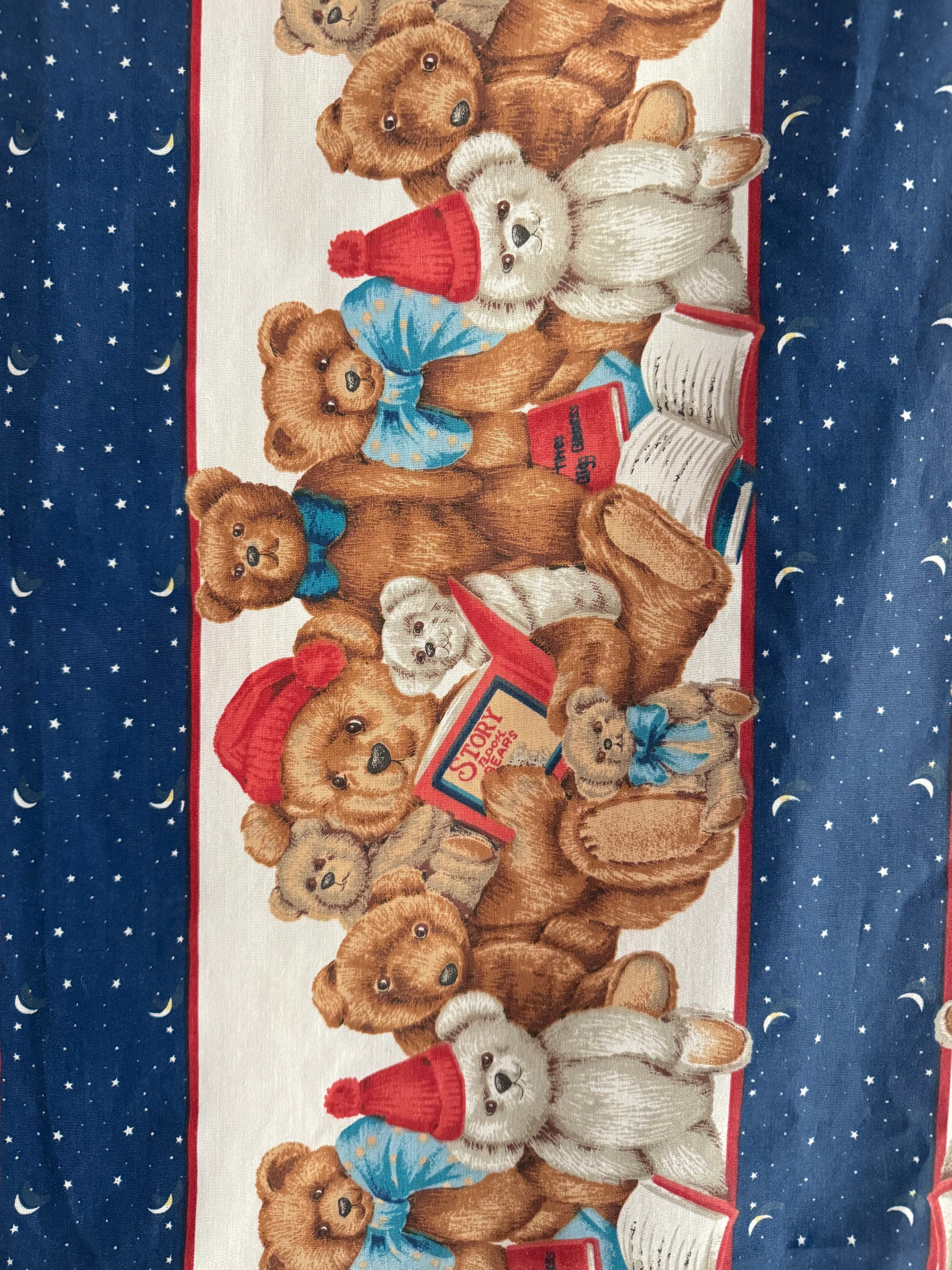 可愛いくまのぬいぐるみ達が集合して連なっている可愛い布地。