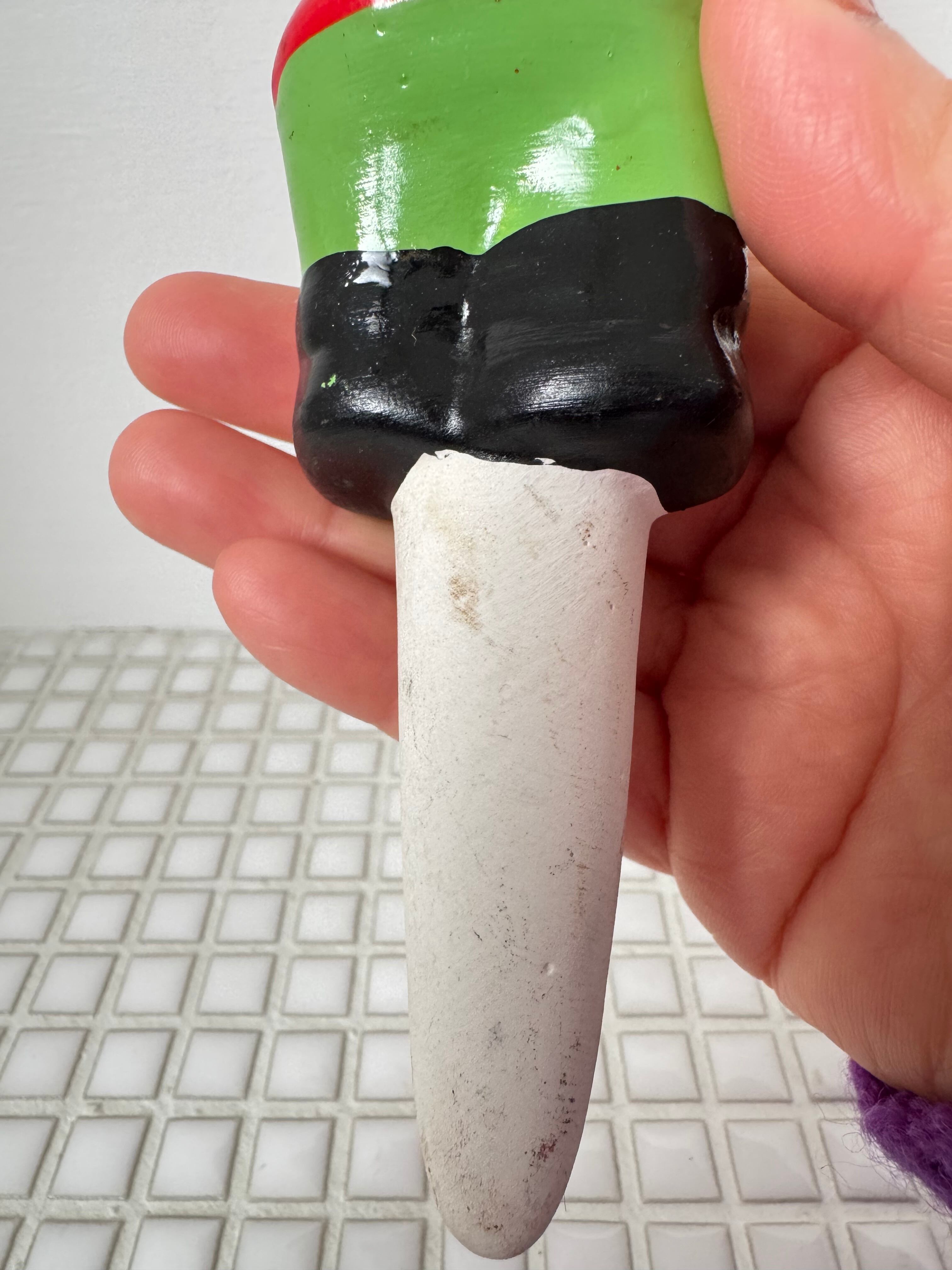 背中の穴の部分に水を入れて、植木鉢などに挿しておくと、白い部分からじわじわと水が沁み出して水分をキープしてくれるという物です。