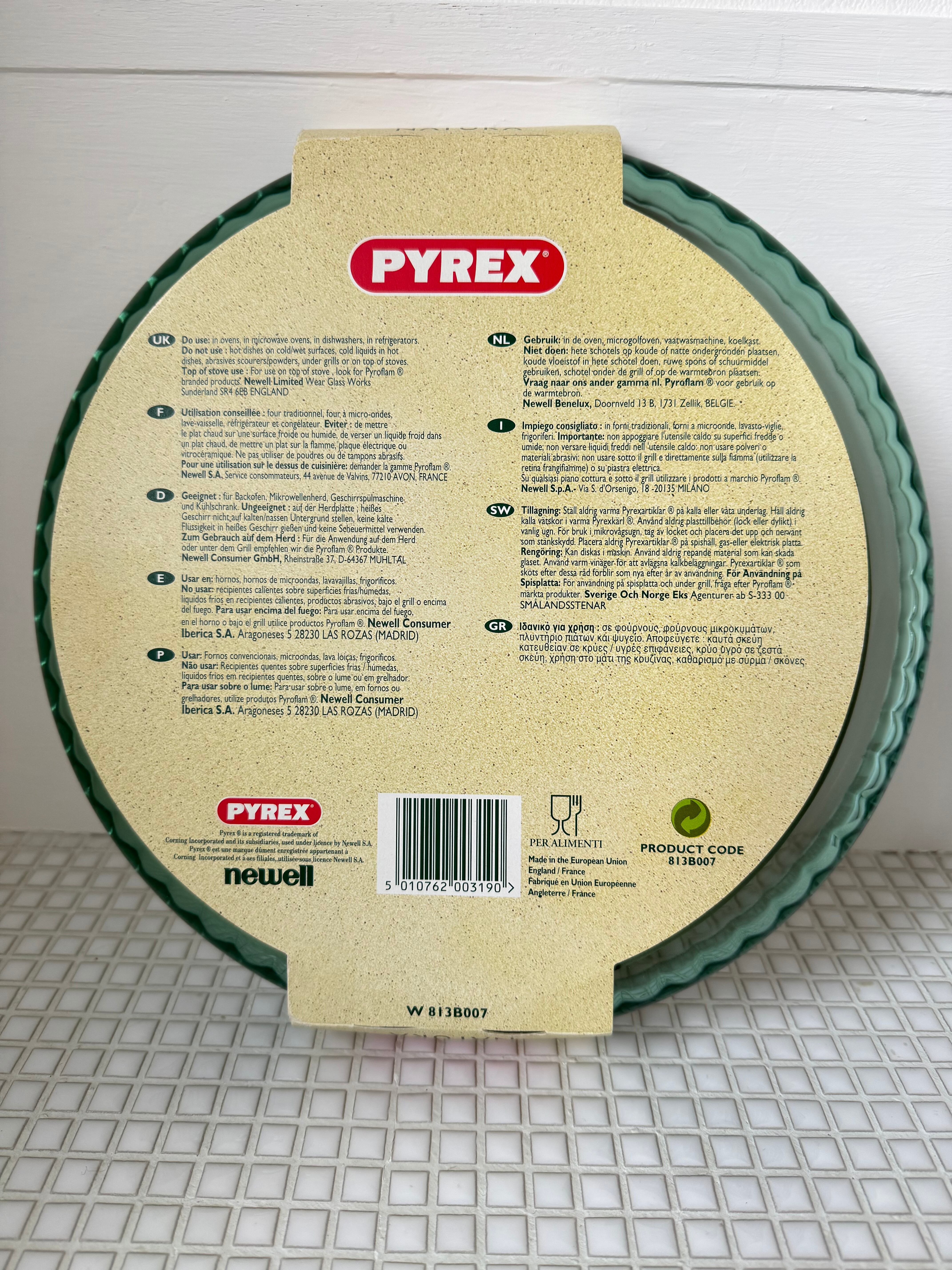 pyrexの耐熱ガラス皿、素敵なグリーンのお色。