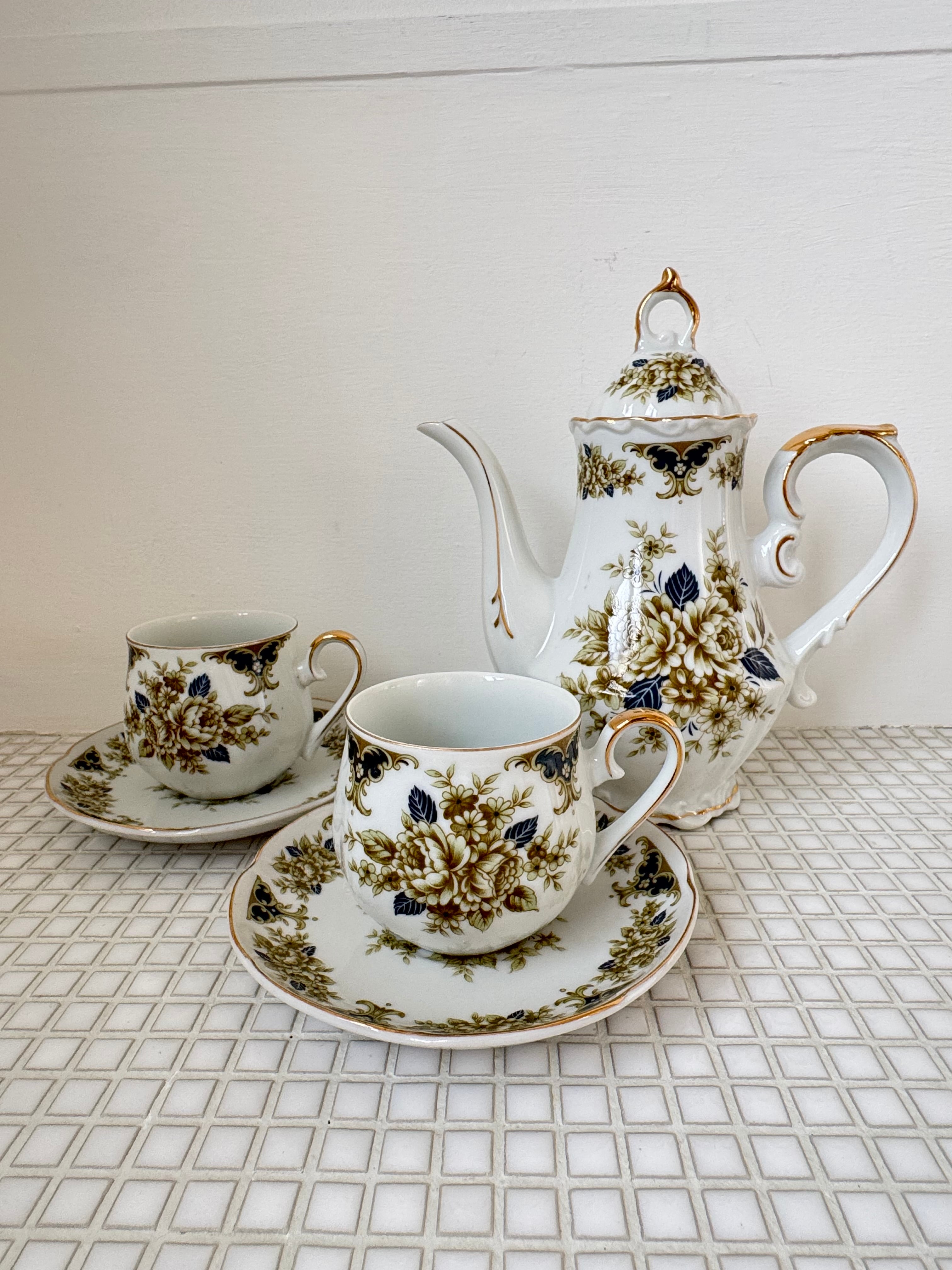 WADOレトロなティーセット。ポットと、カップ&ソーサー二脚のセットです。