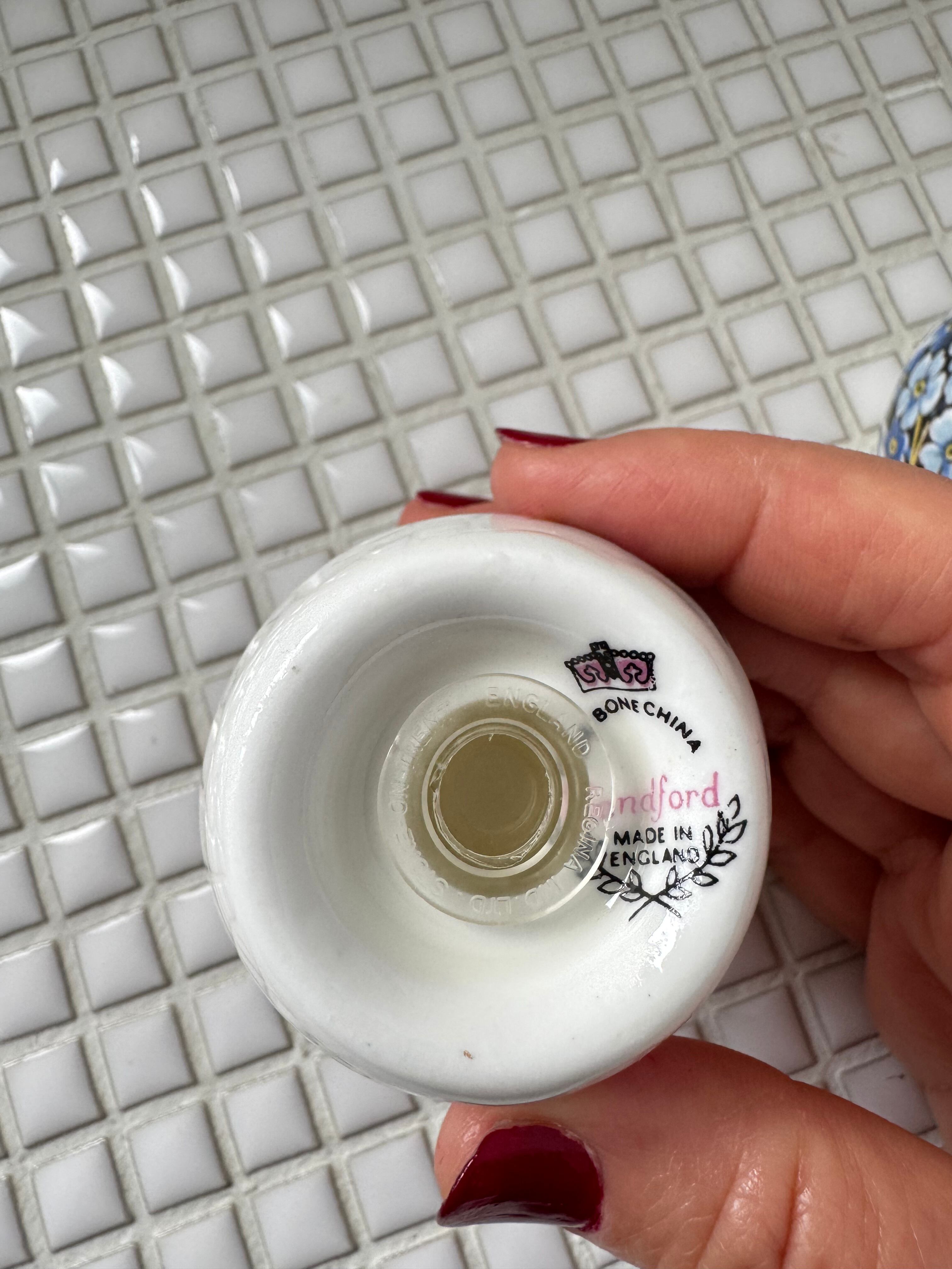 勿忘草の絵柄が可憐な、サンドフォード社のソルトアンドペッパー入れ。