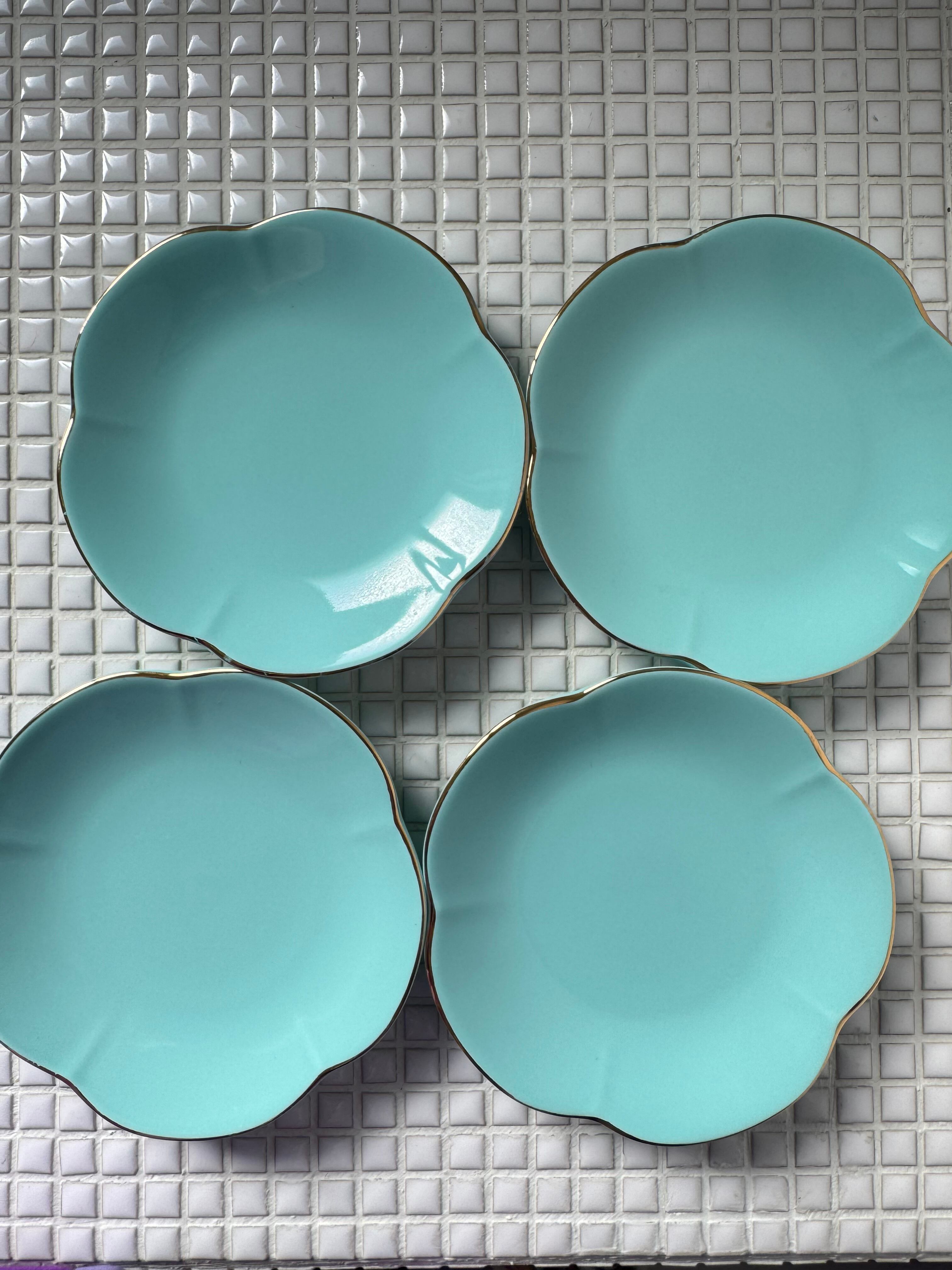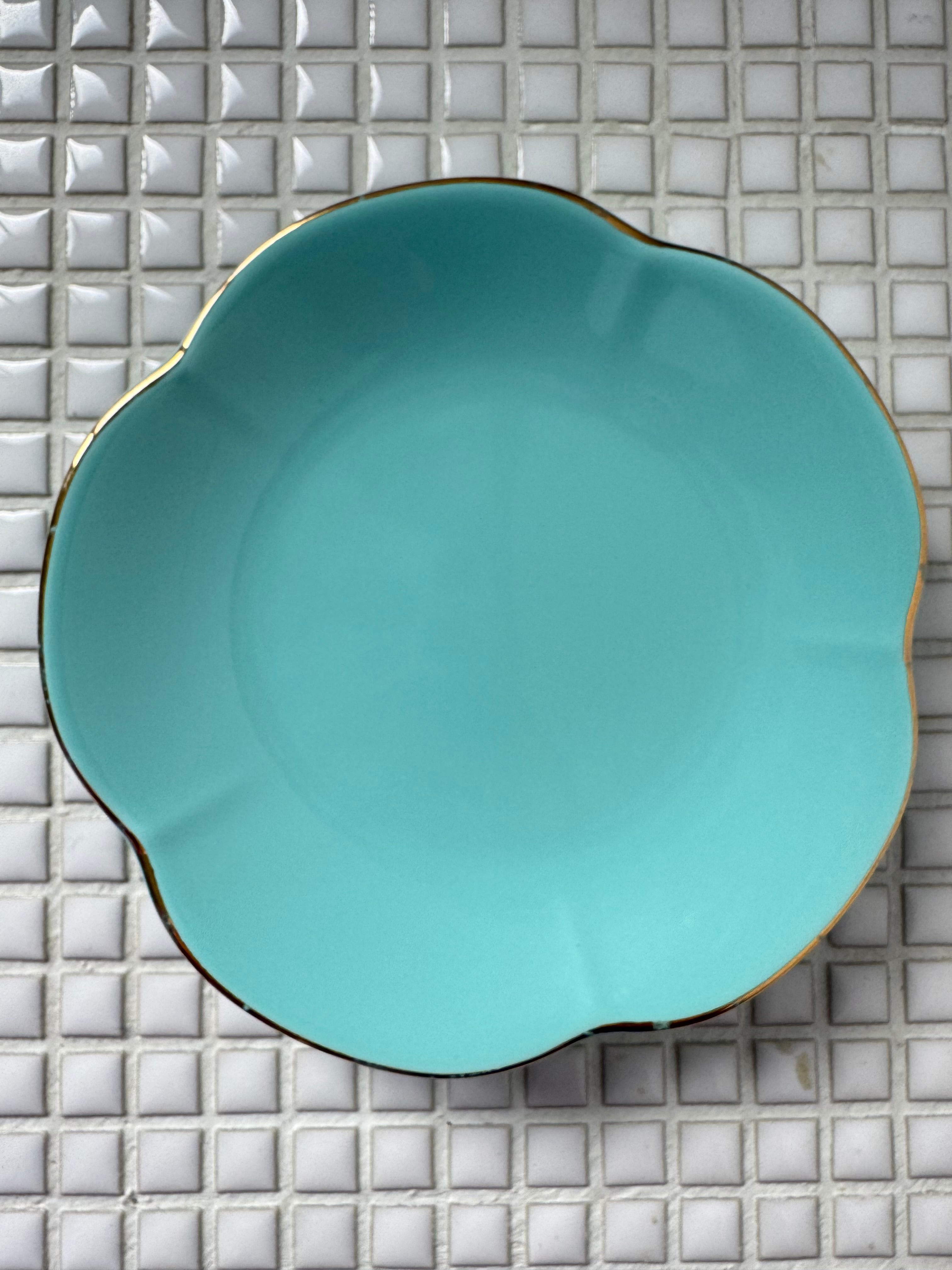 エメラルドグリーンのお花型小皿