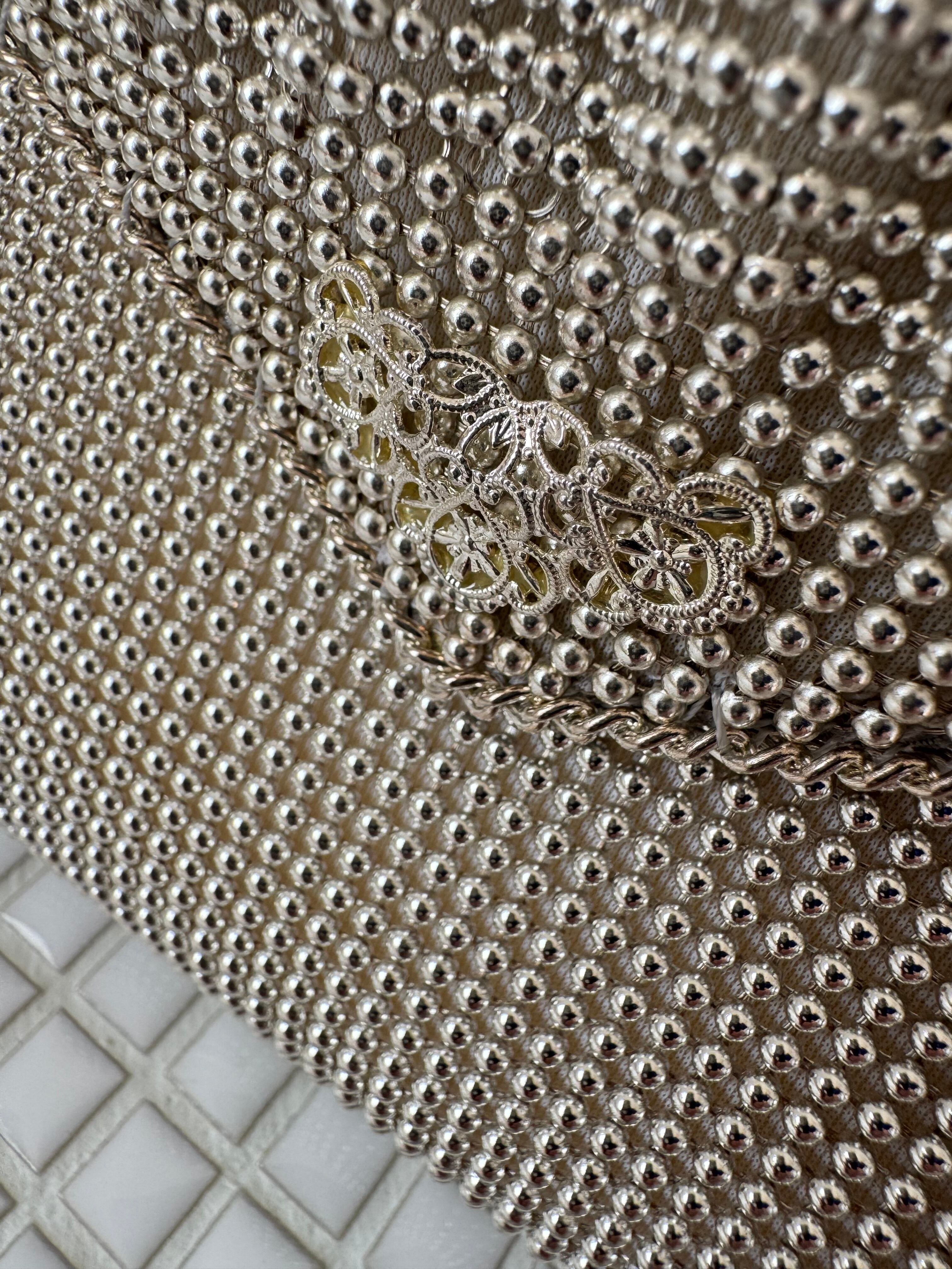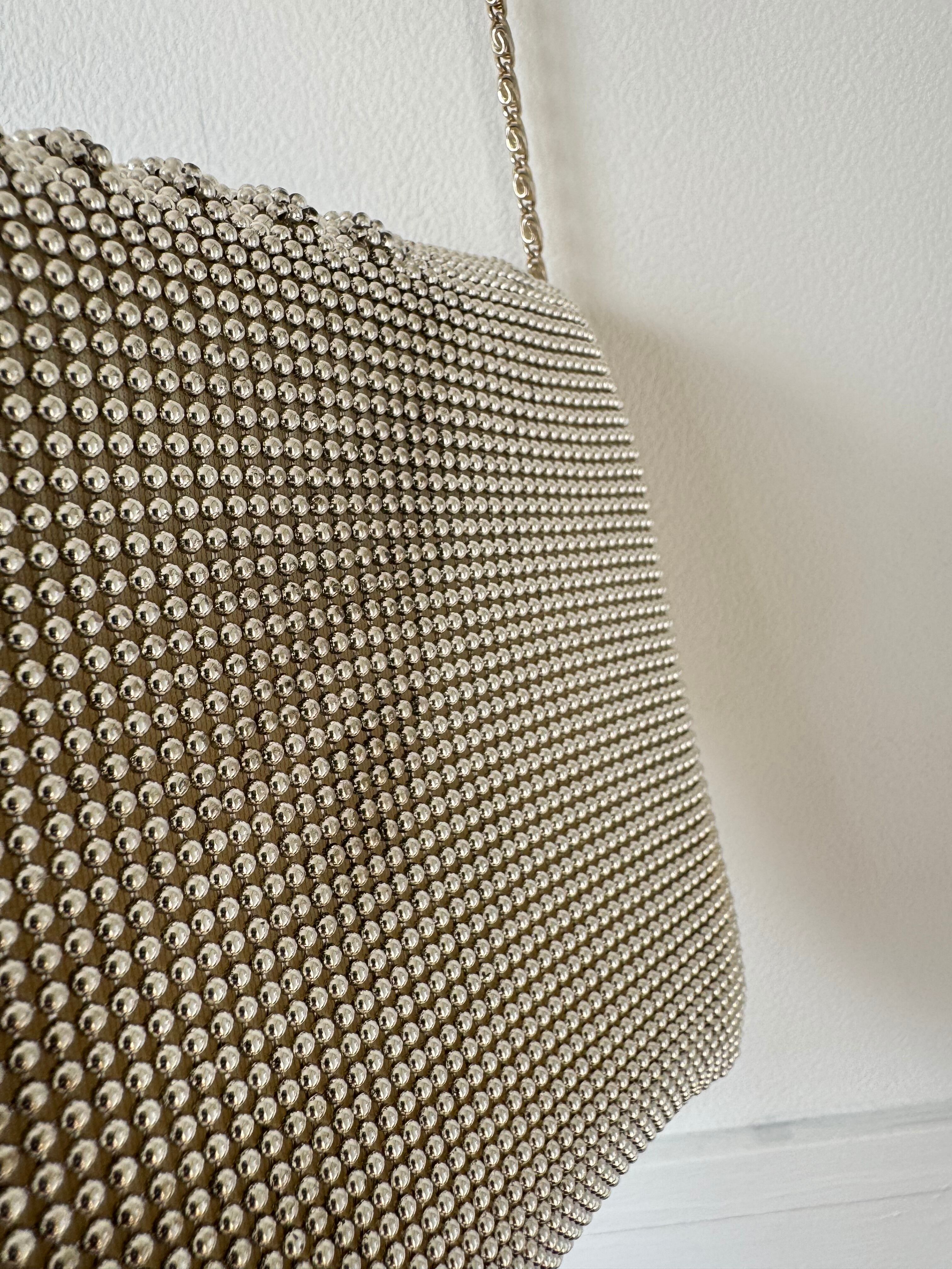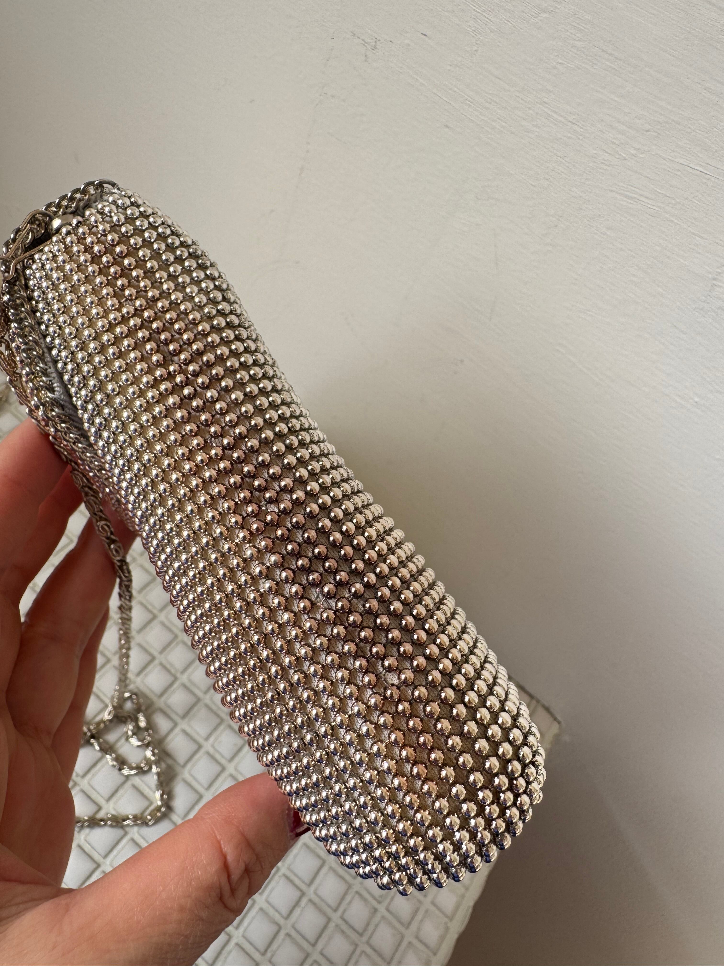 小さなメタルボールで形成された華やかなバッグです。