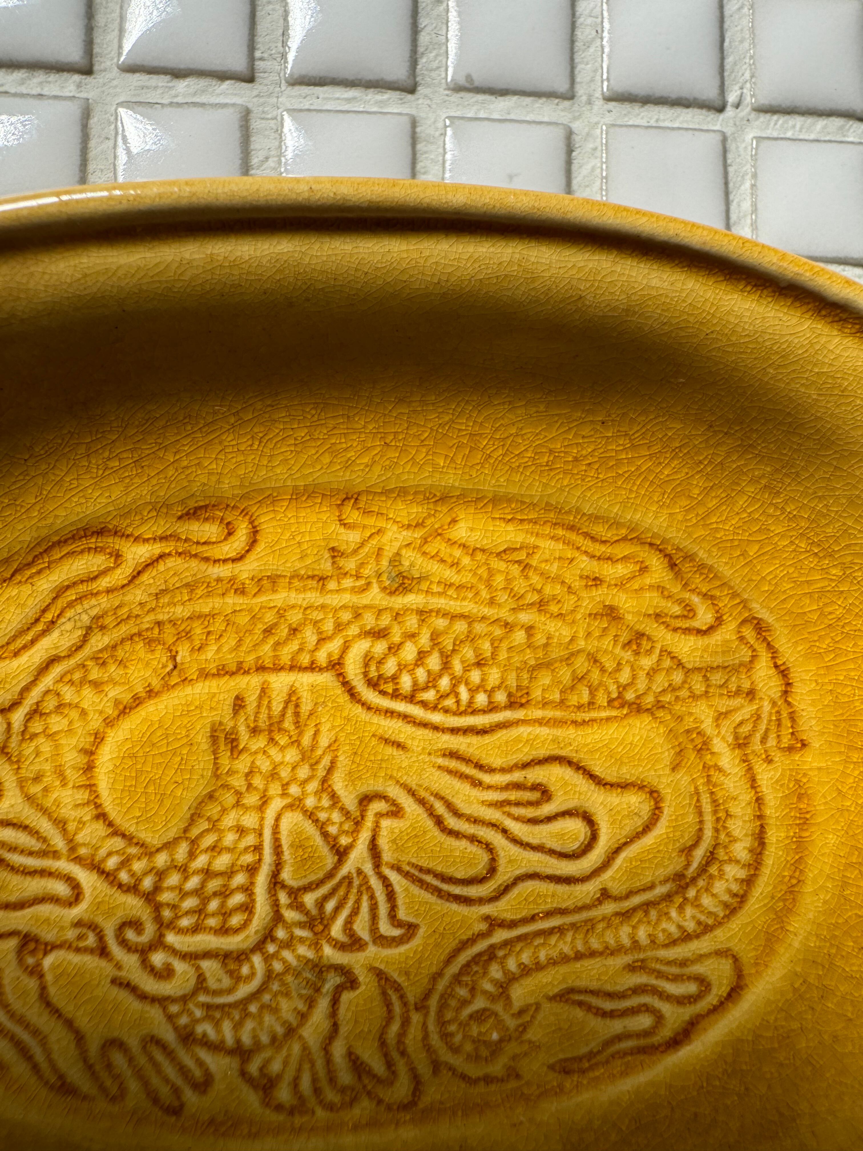 龍の模様と綺麗な黄釉の素敵なお皿ですね。