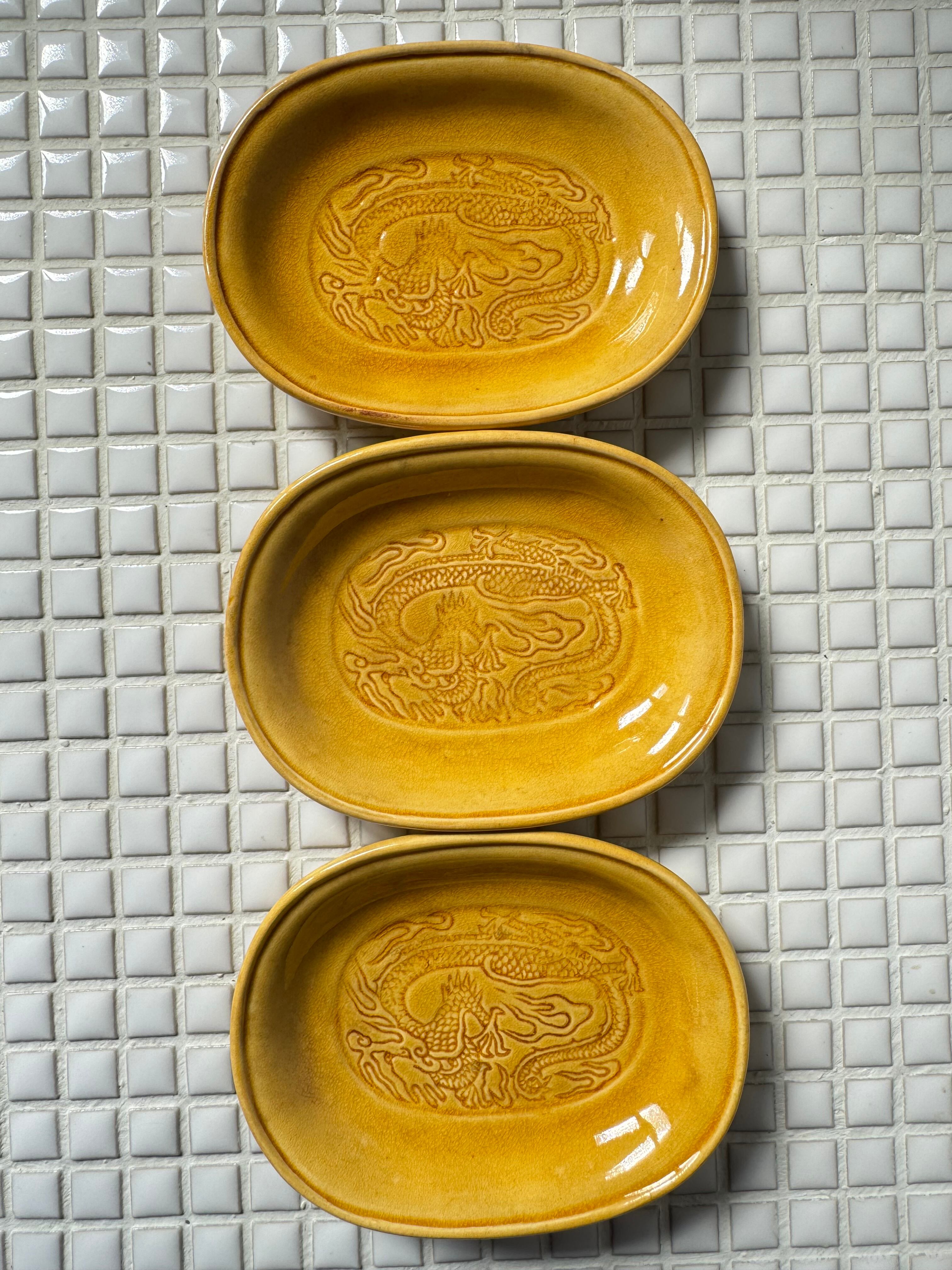 龍の模様と綺麗な黄釉の素敵なお皿ですね。