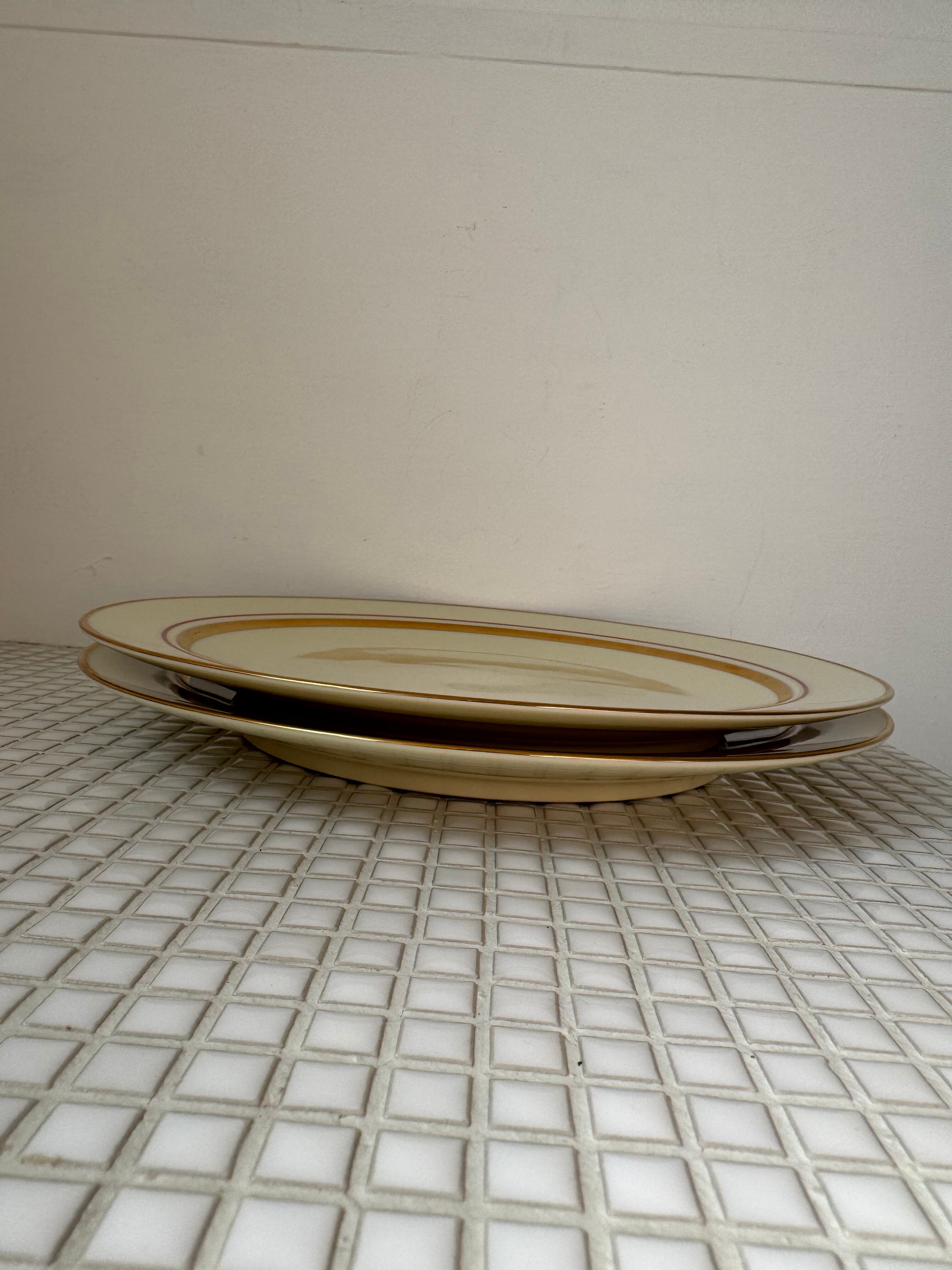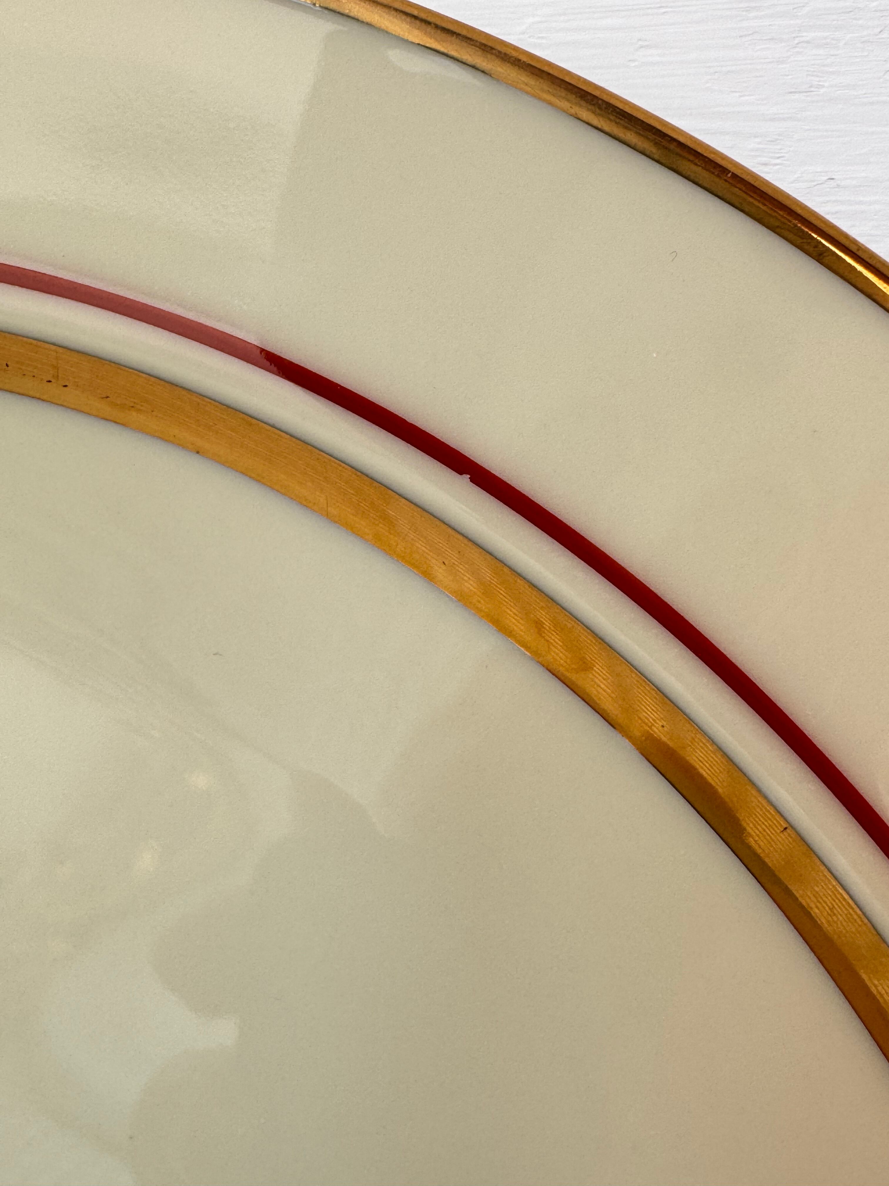 アイボリーのベースに、ゴールドと赤のラインが入っていて、上品とカジュアルの間を行き来しているようなプレートです。