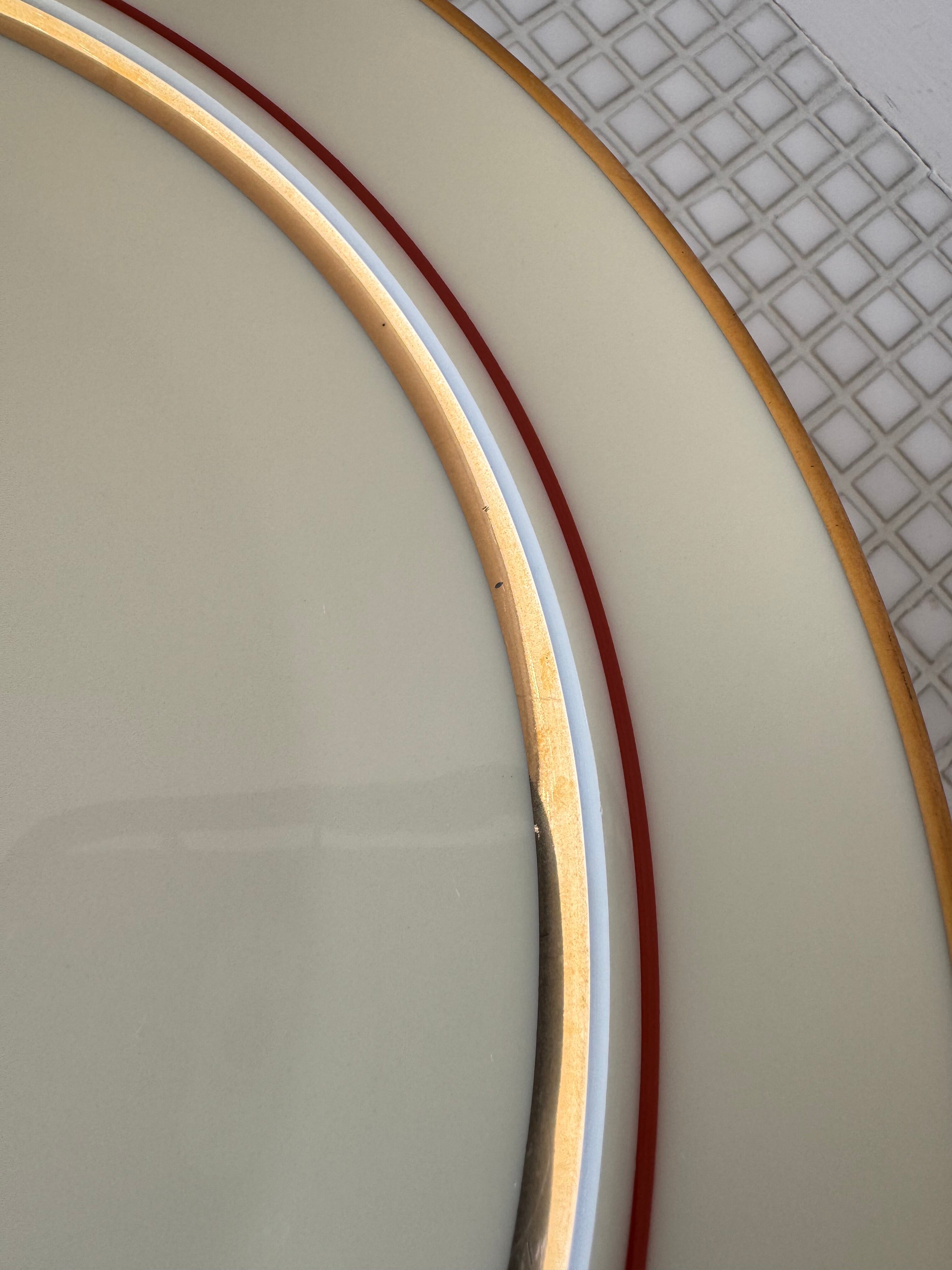 アイボリーのベースに、ゴールドと赤のラインが入っていて、上品とカジュアルの間を行き来しているようなプレートです。