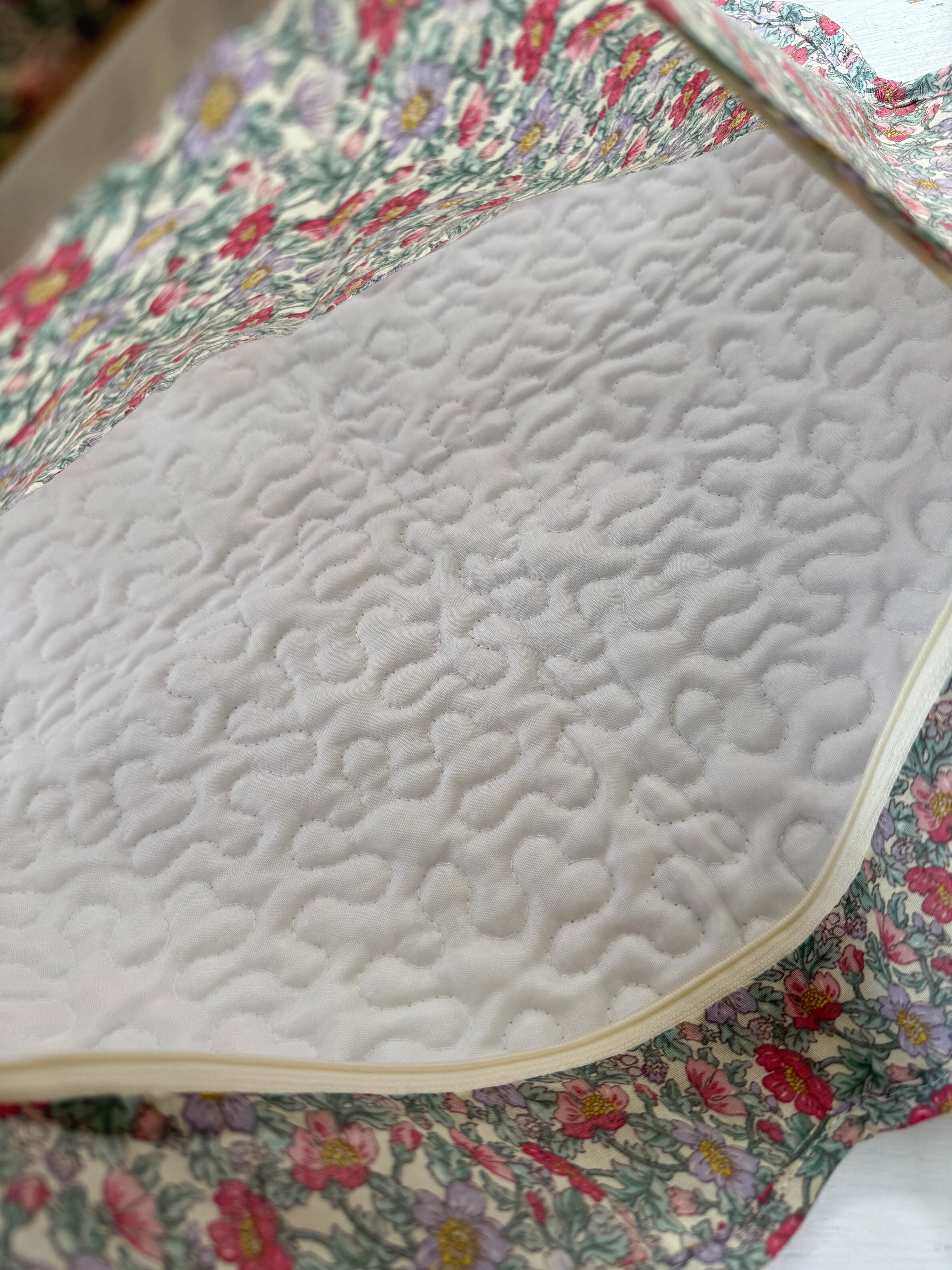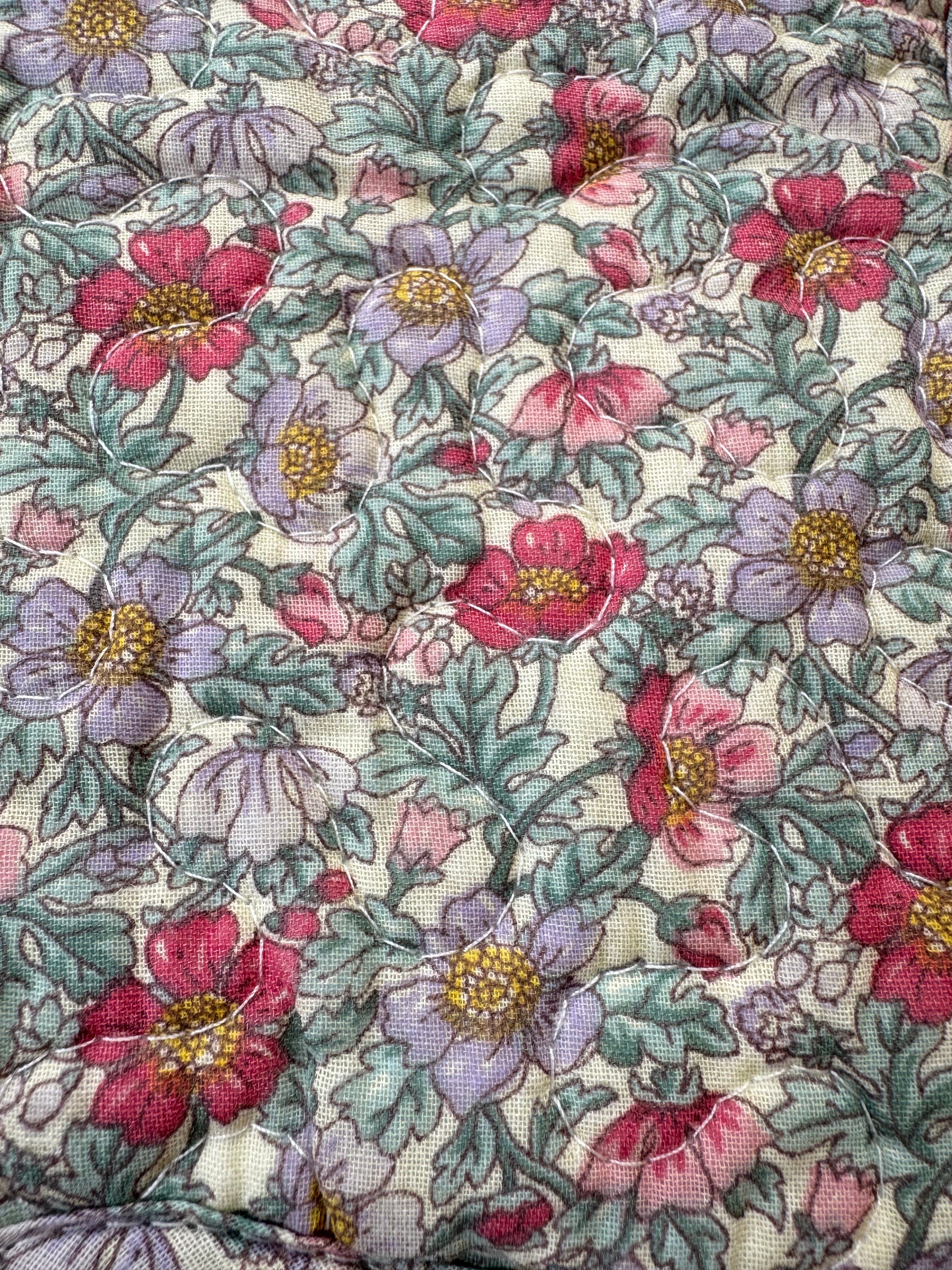 表面はキルト地、裏面は同柄のコットンの布地仕立てです。