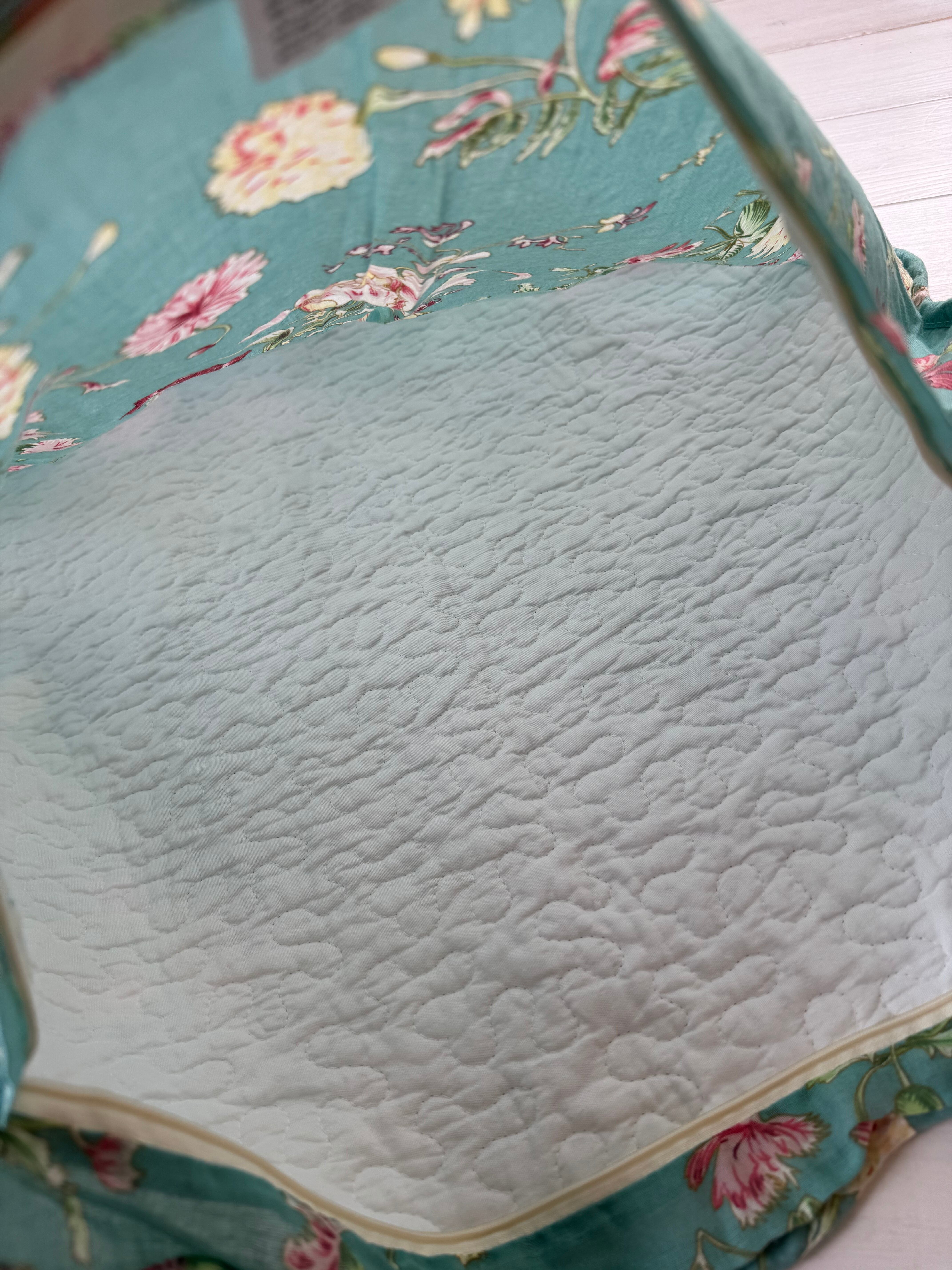 表面はキルト地、裏面は同柄のコットンの布地仕立てです。