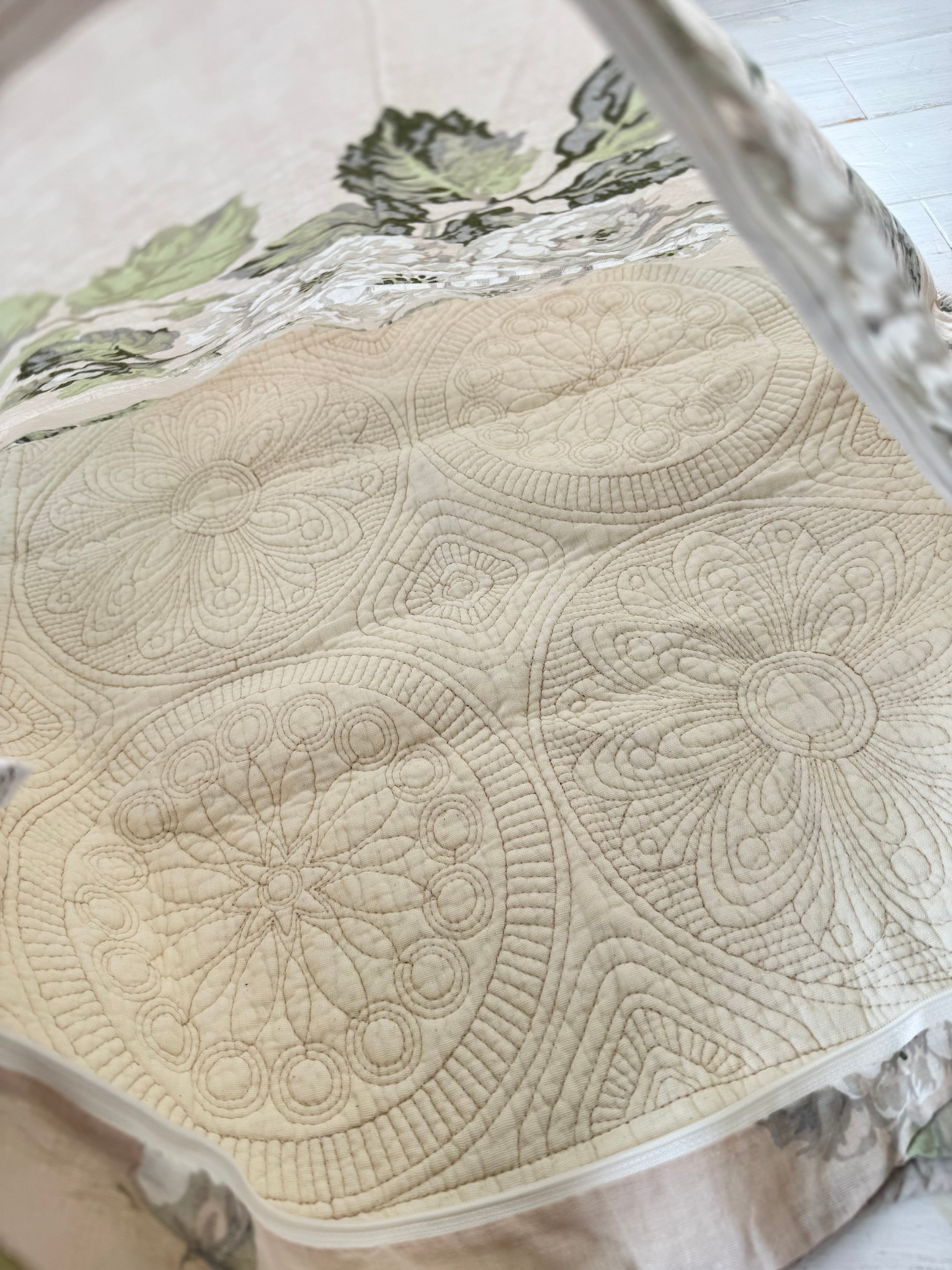 表面はキルト地、裏面は同柄のコットンの布地仕立てです。