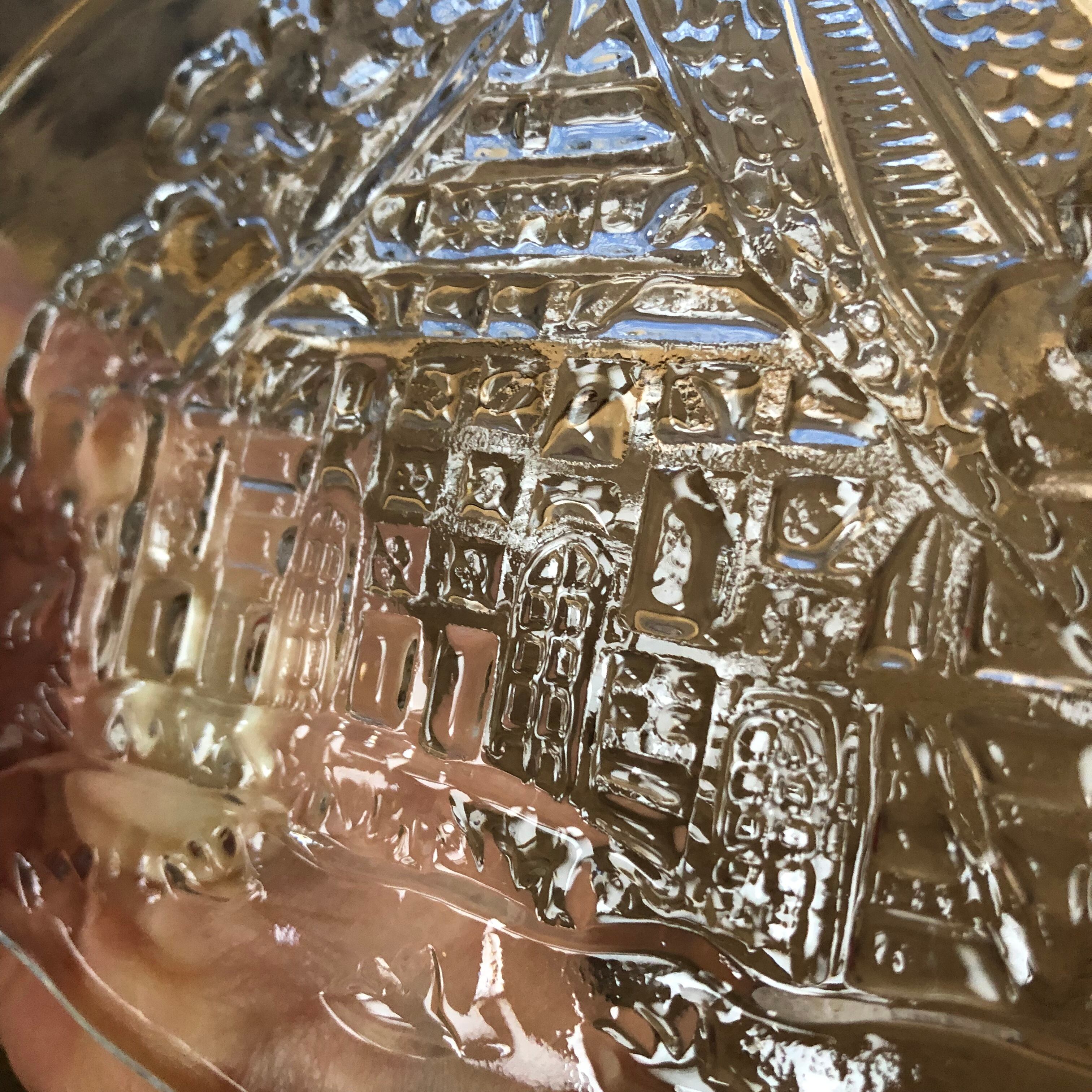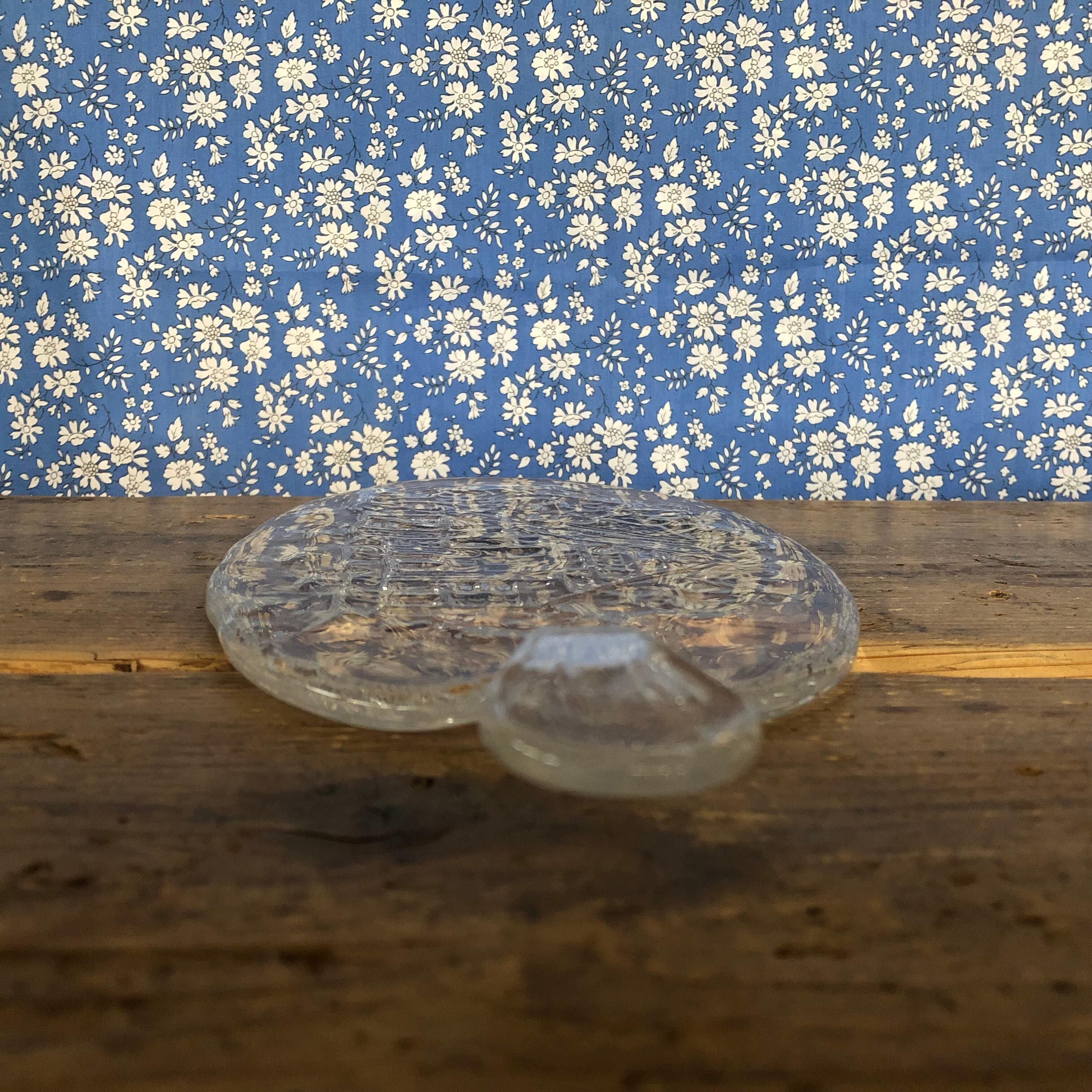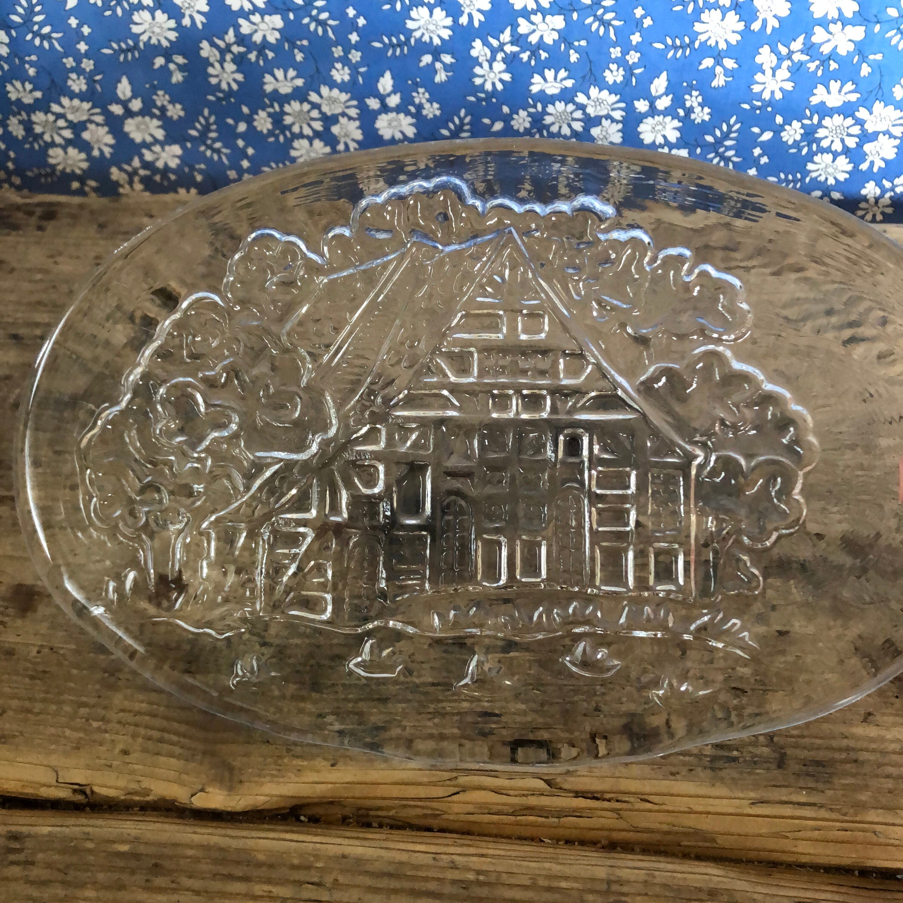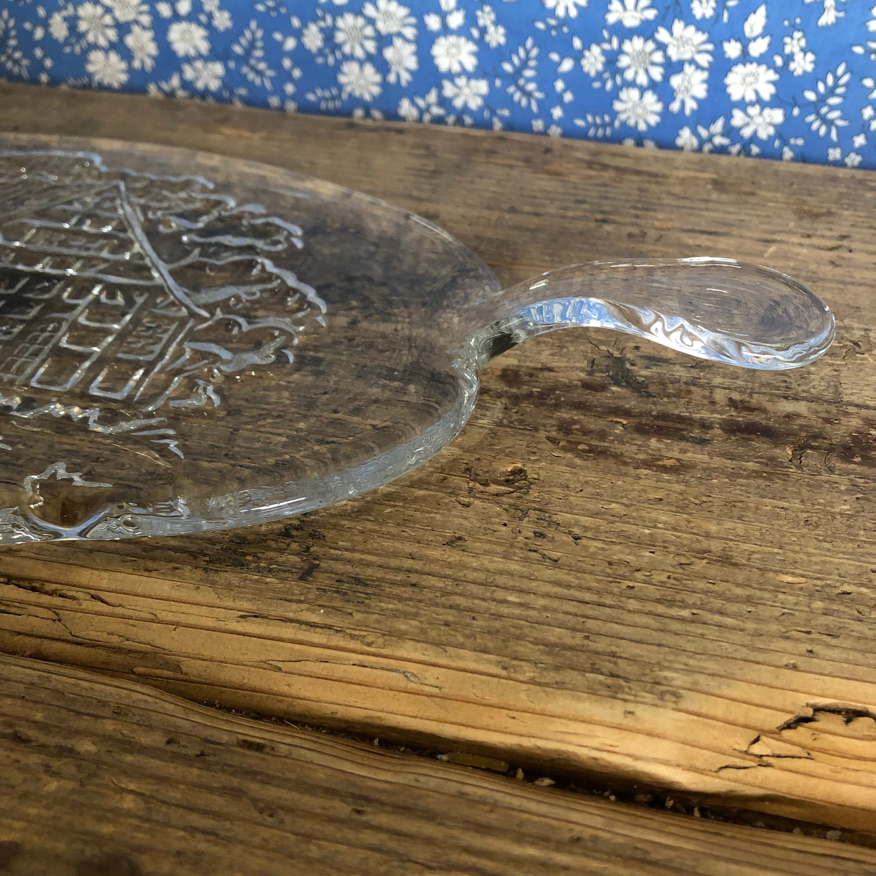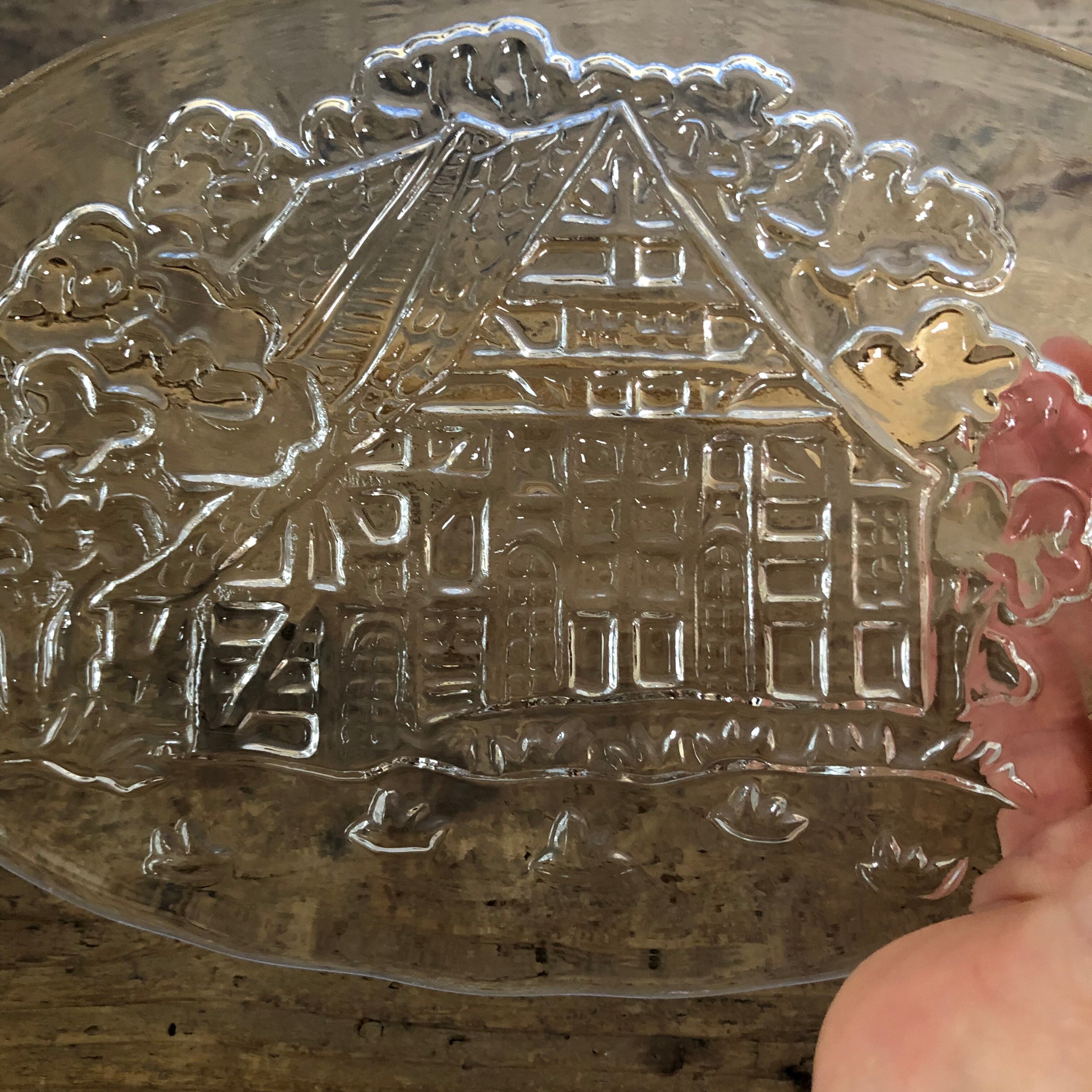 森の中に佇むおうちがデザインされた可愛いガラスプレート。裏面に型押しされた創りになっています。