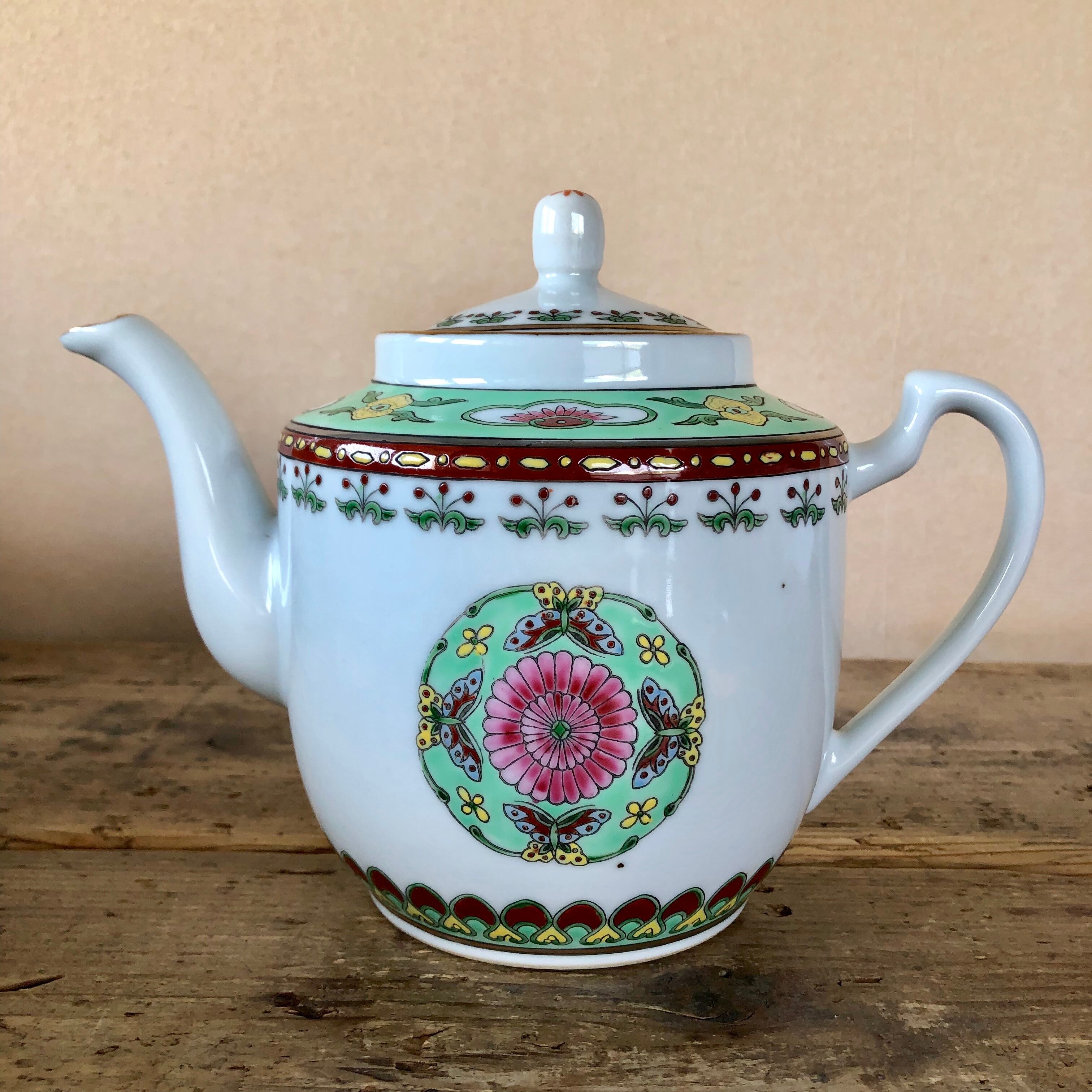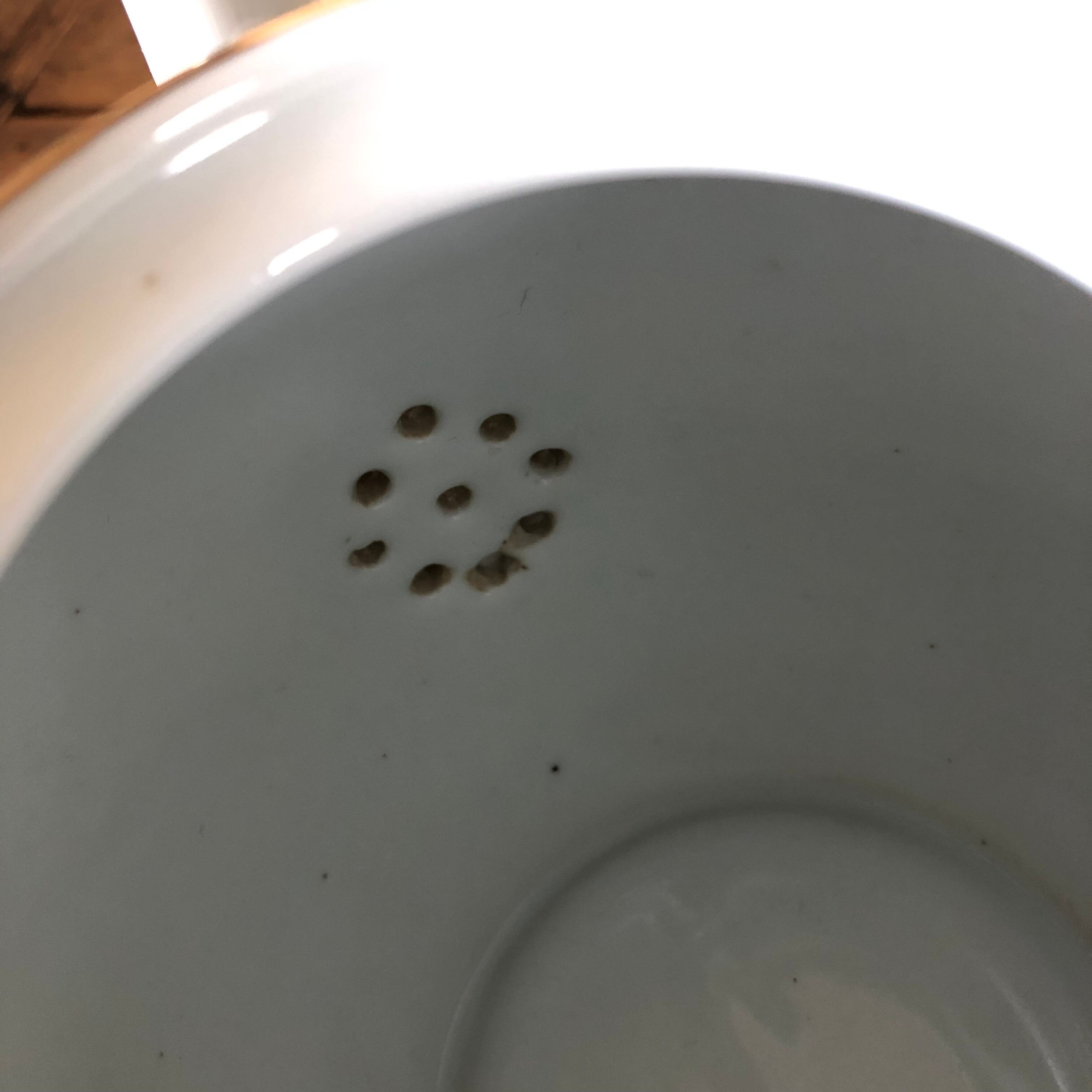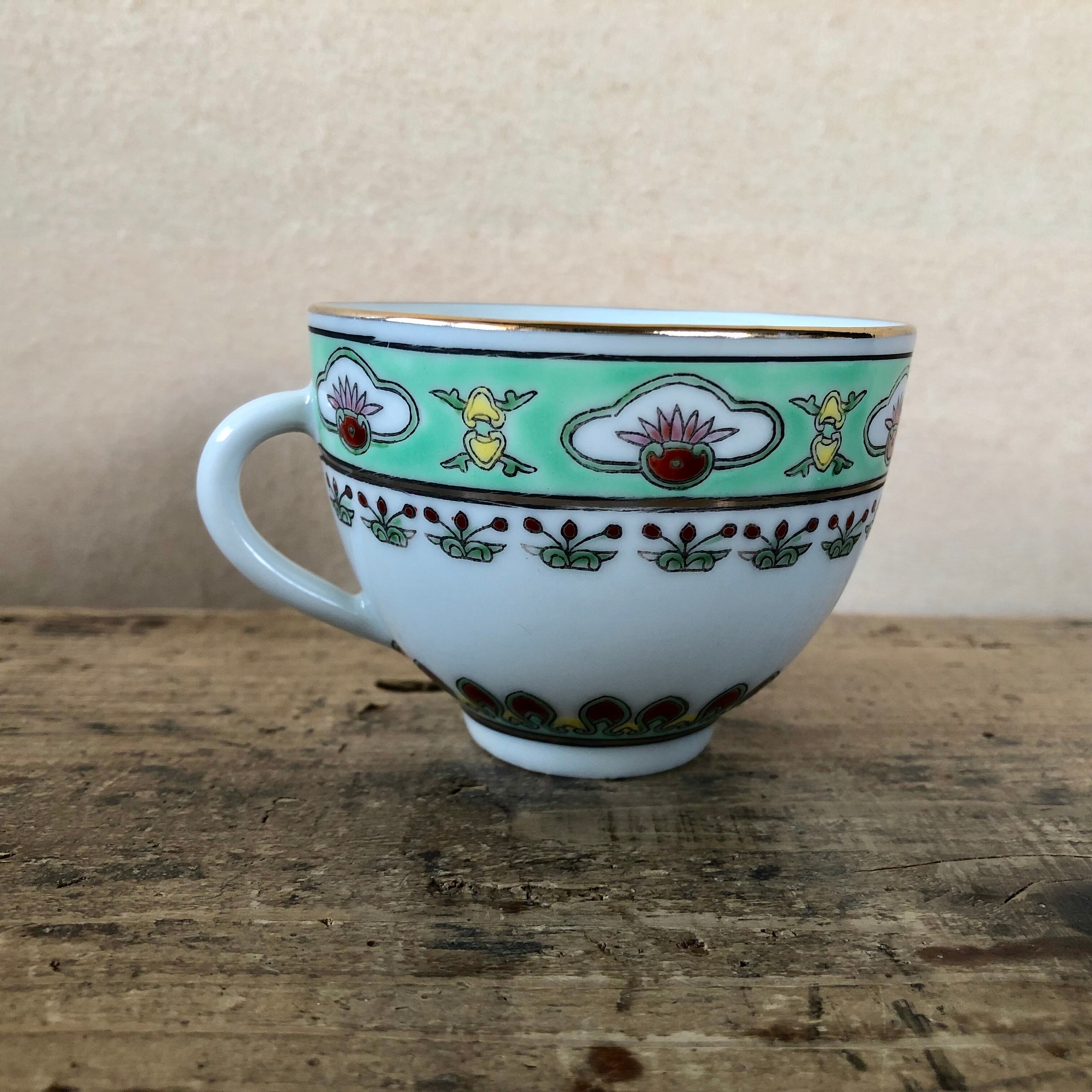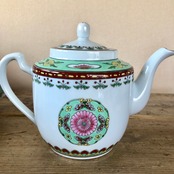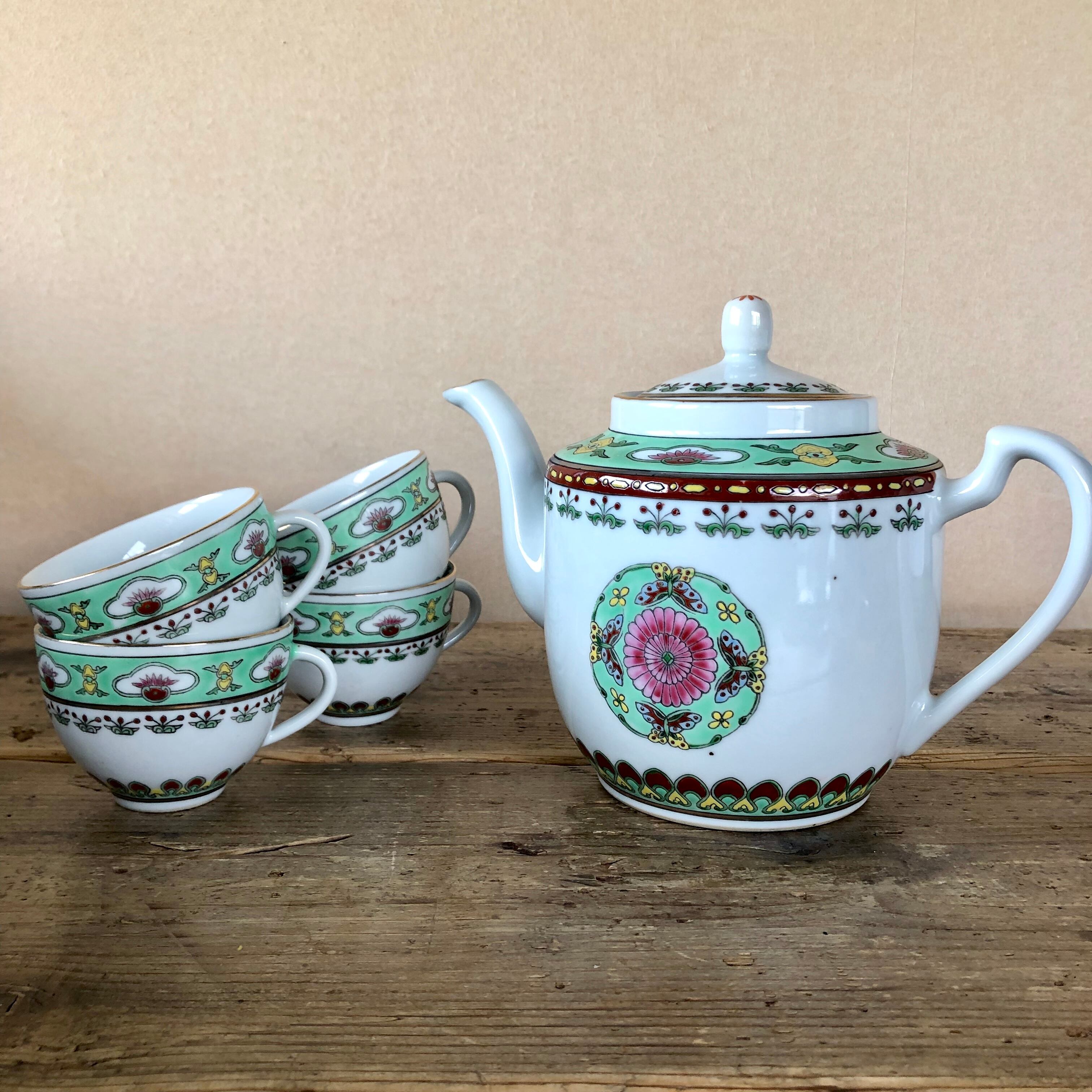 景徳鎮と言えば、白とブルーの物や、黄色の物、赤の物を良く見かけますが、こちらのセットの柄はあまり見かけない柄だと思います。