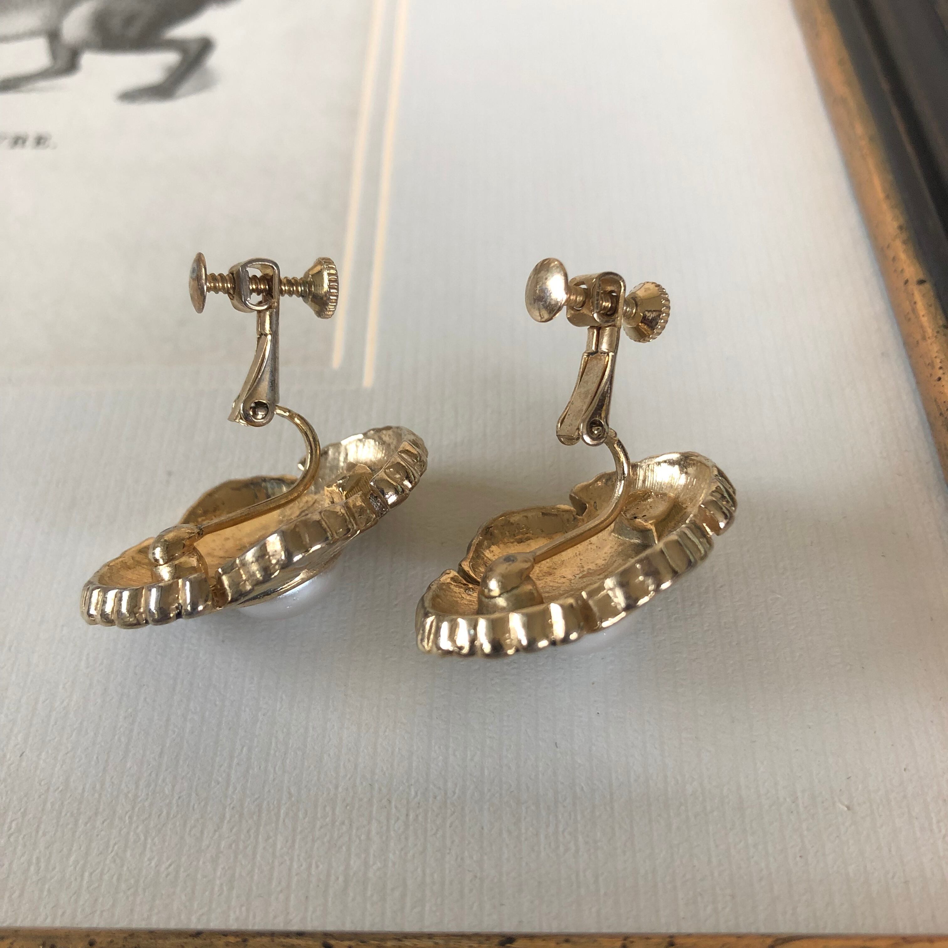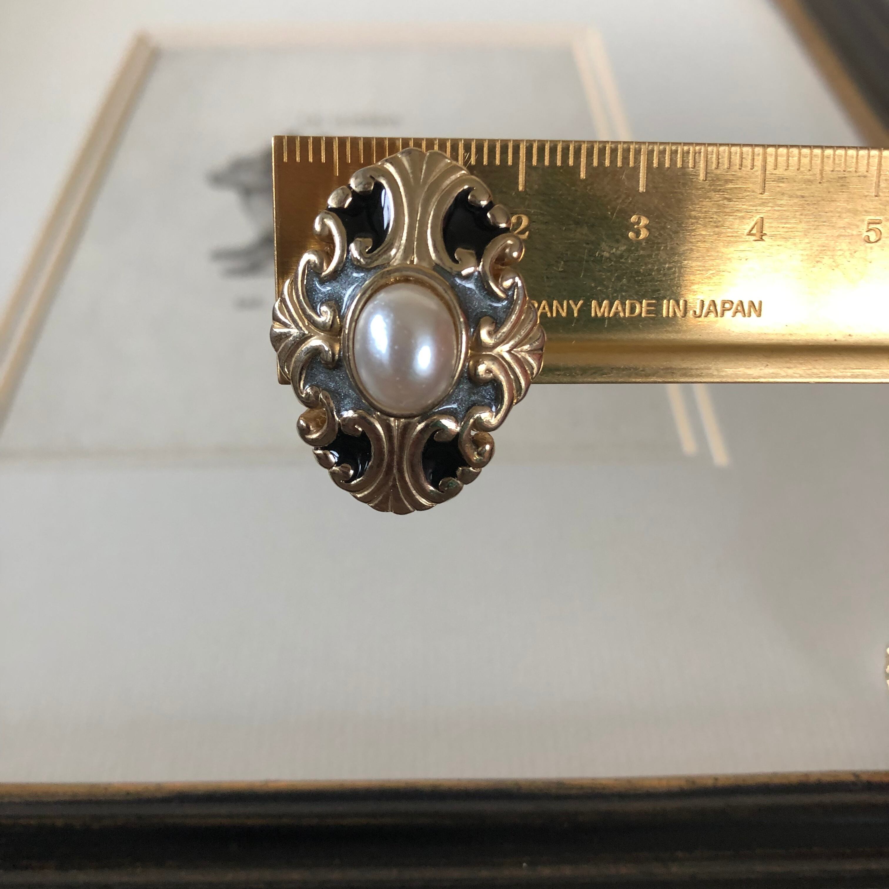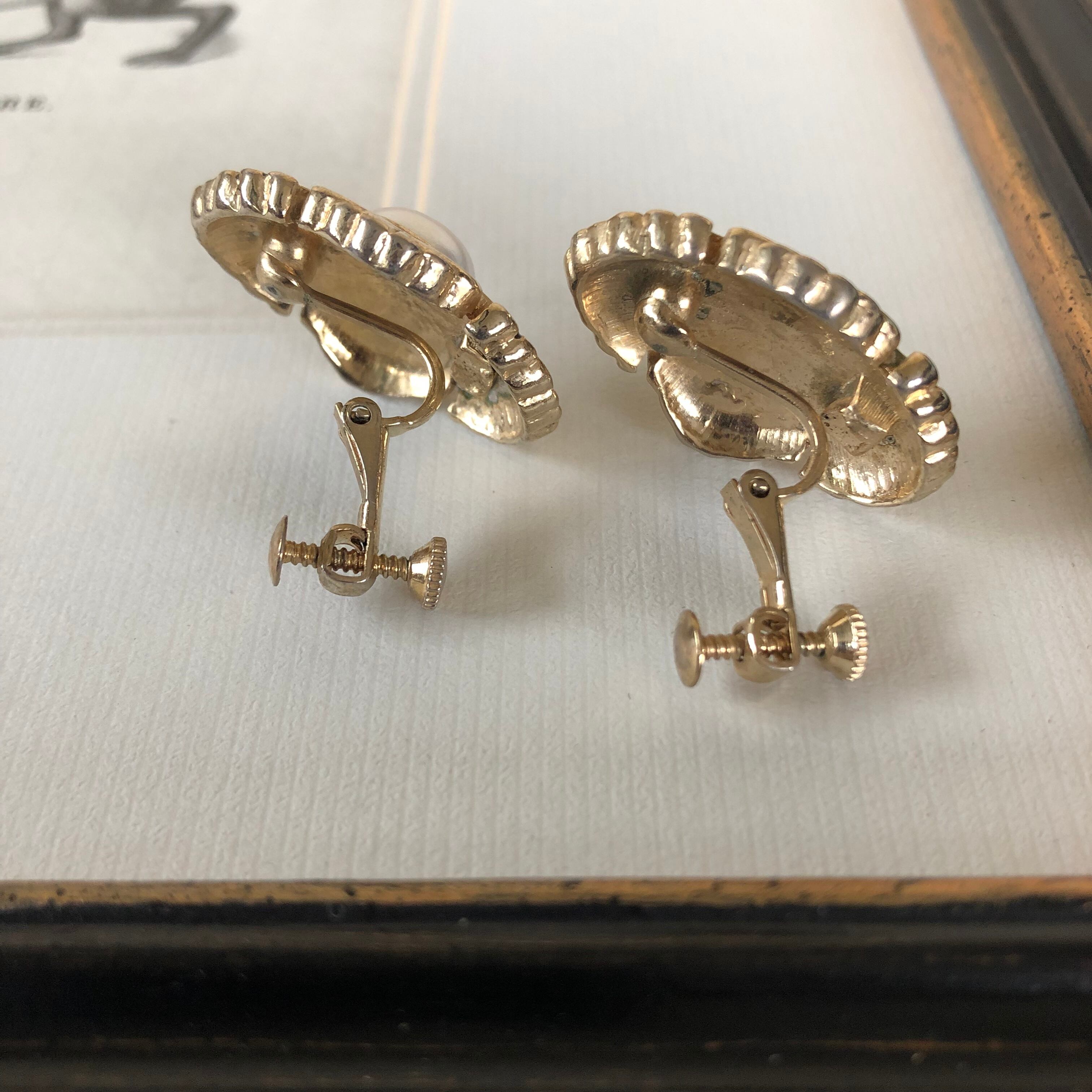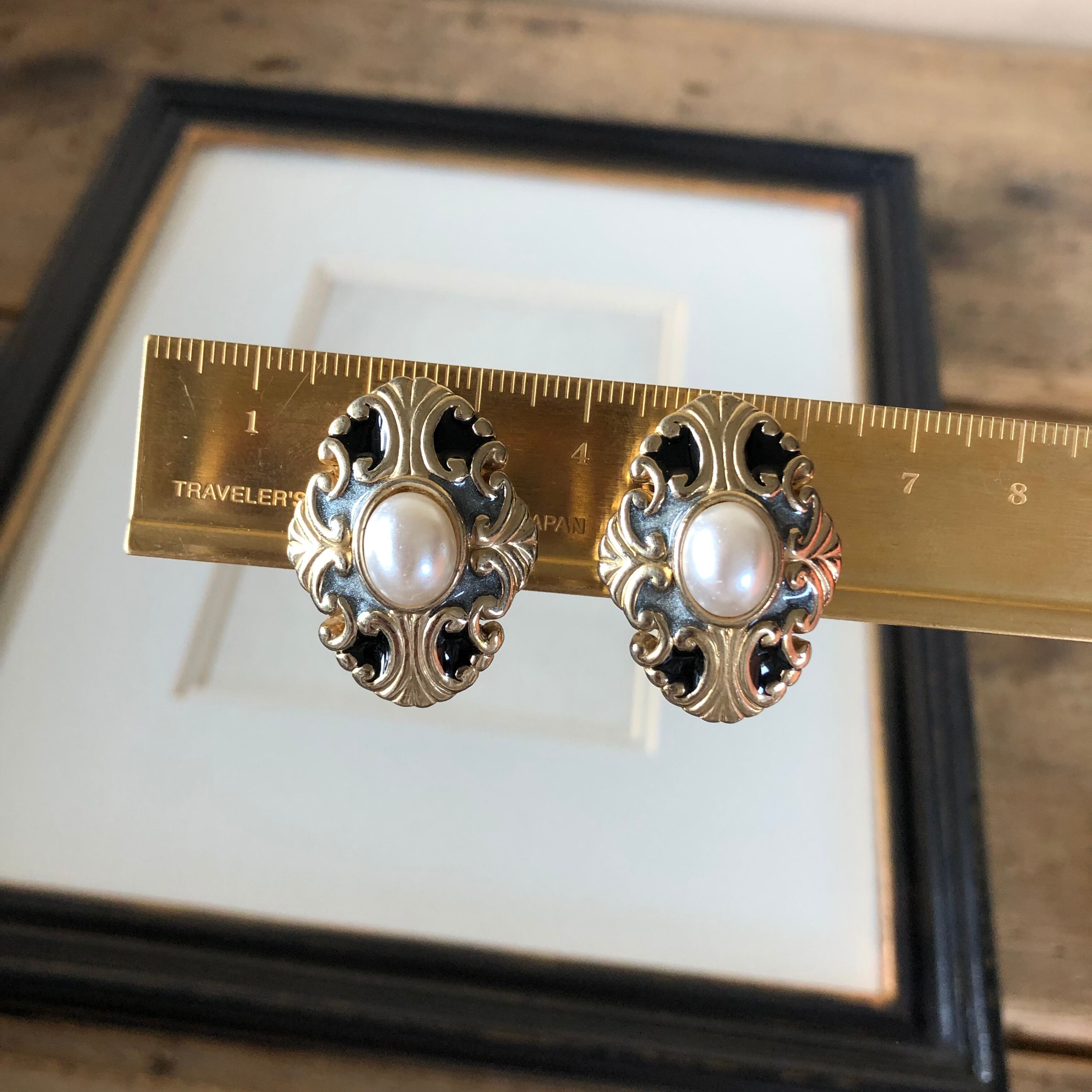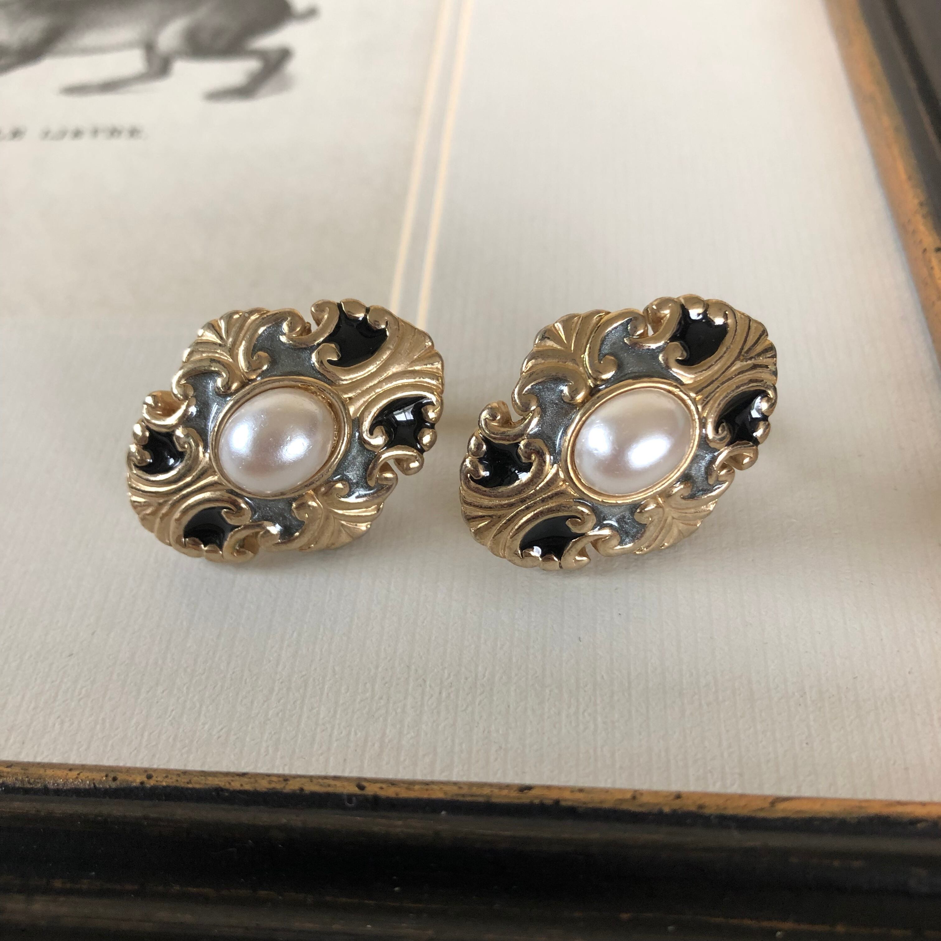 vintage earring black&gray&gold&pearl