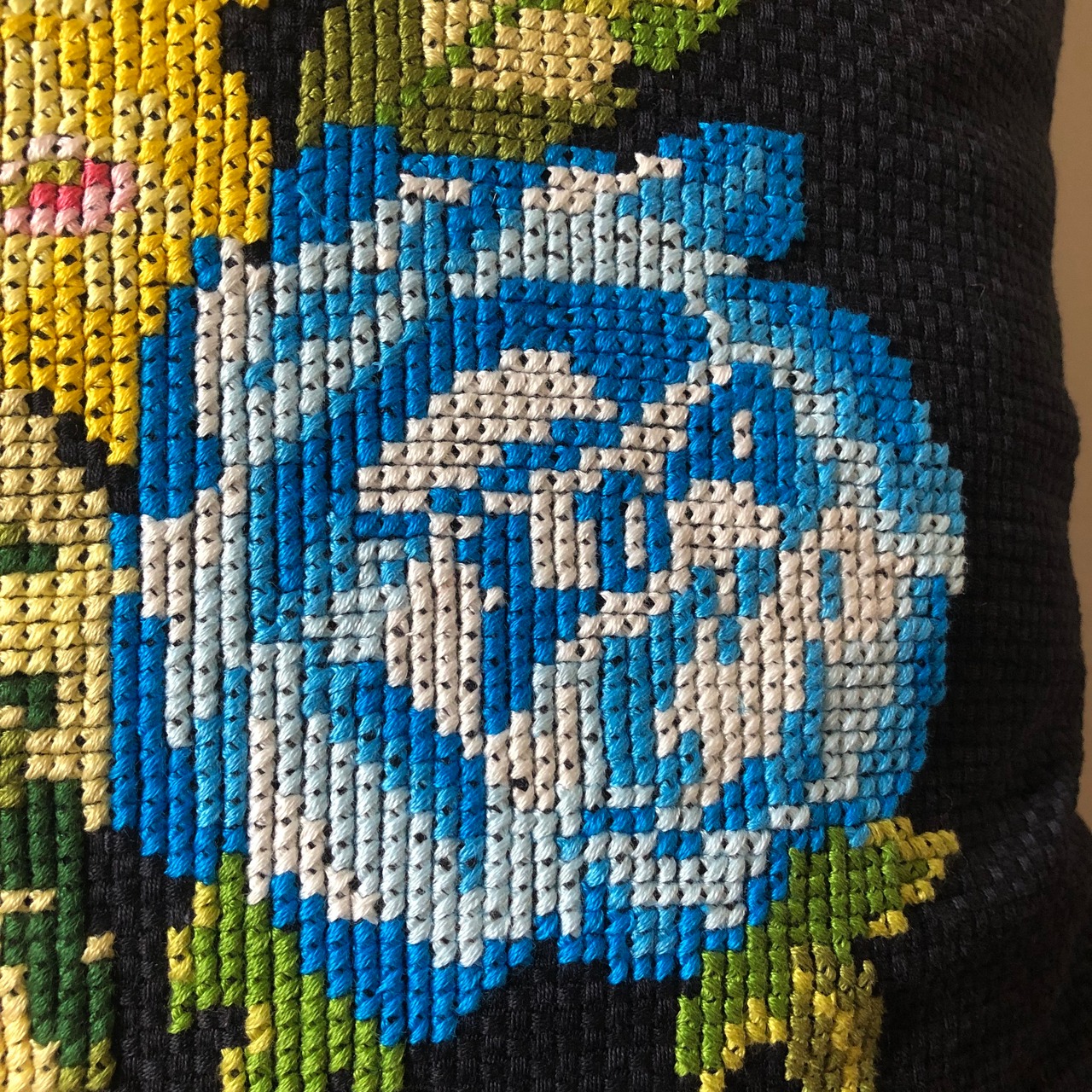 クロスステッチでお花が刺繍されたクッションカバーです。