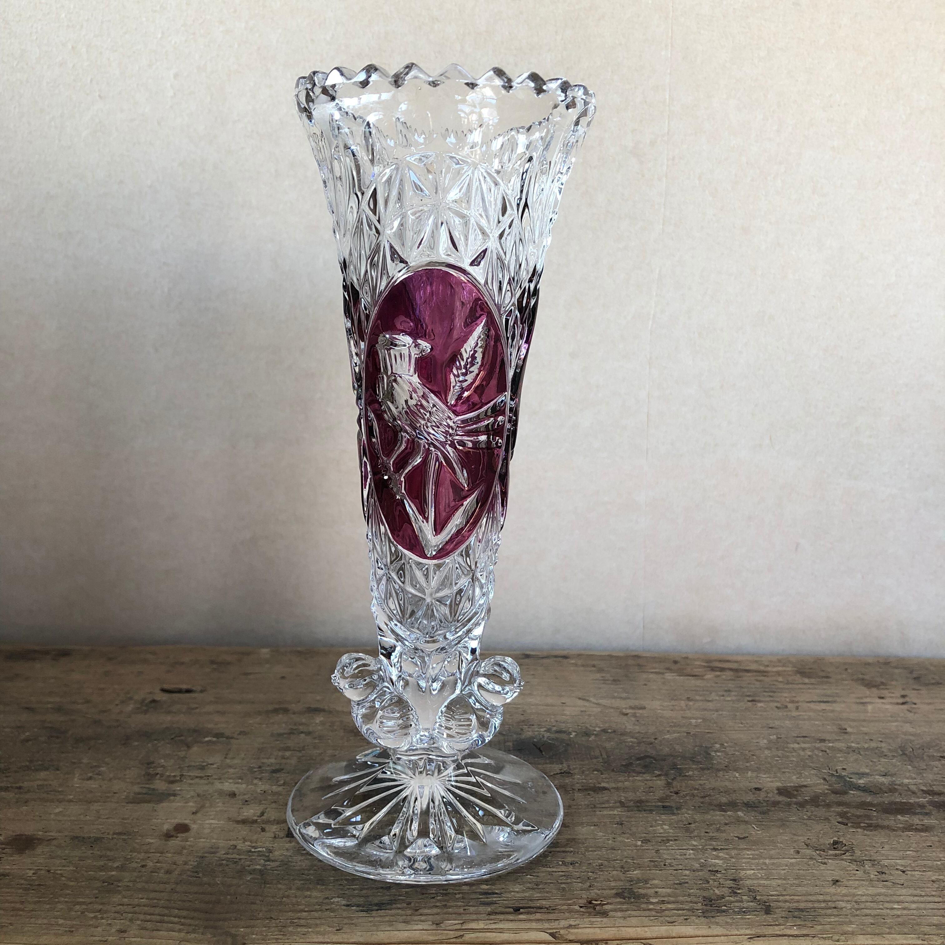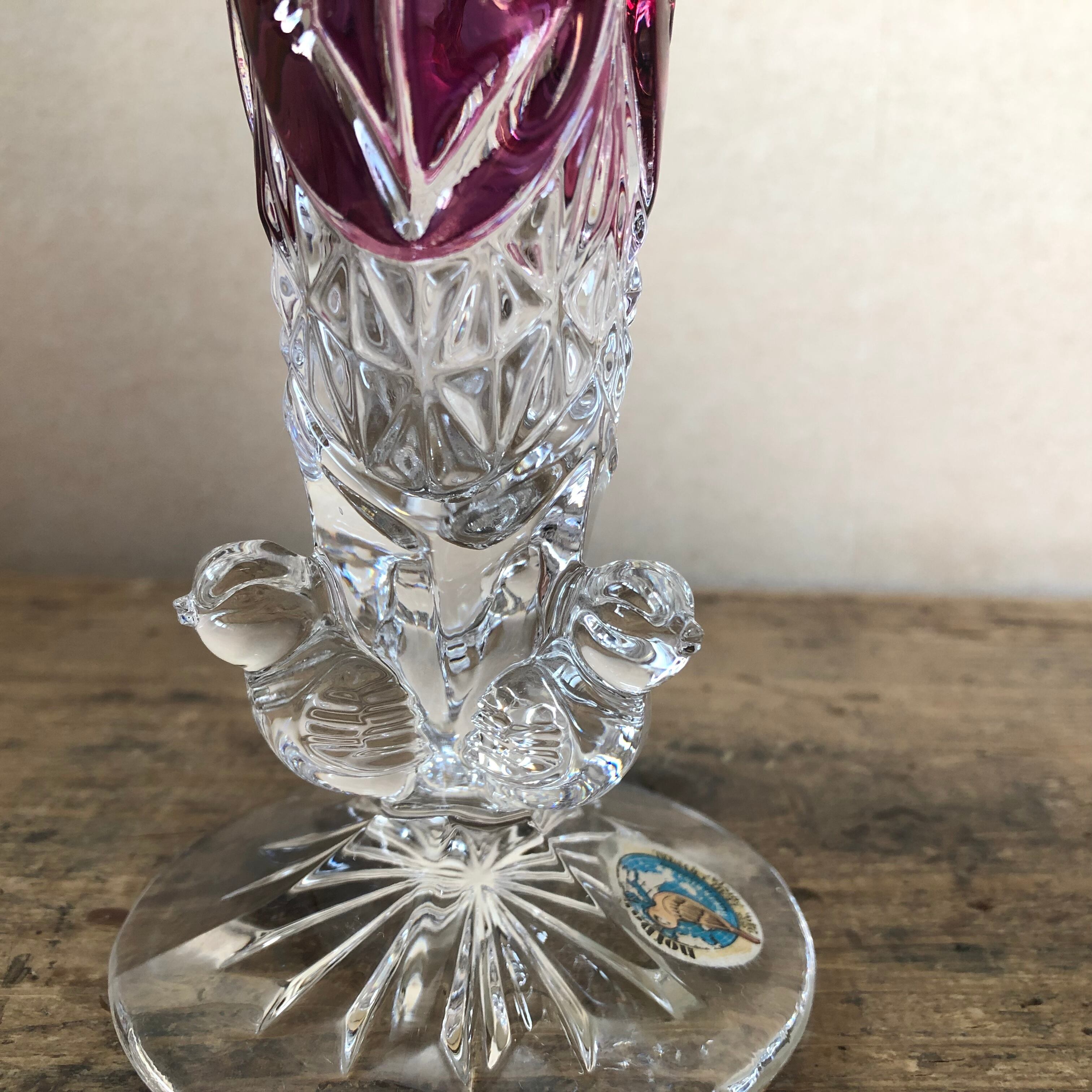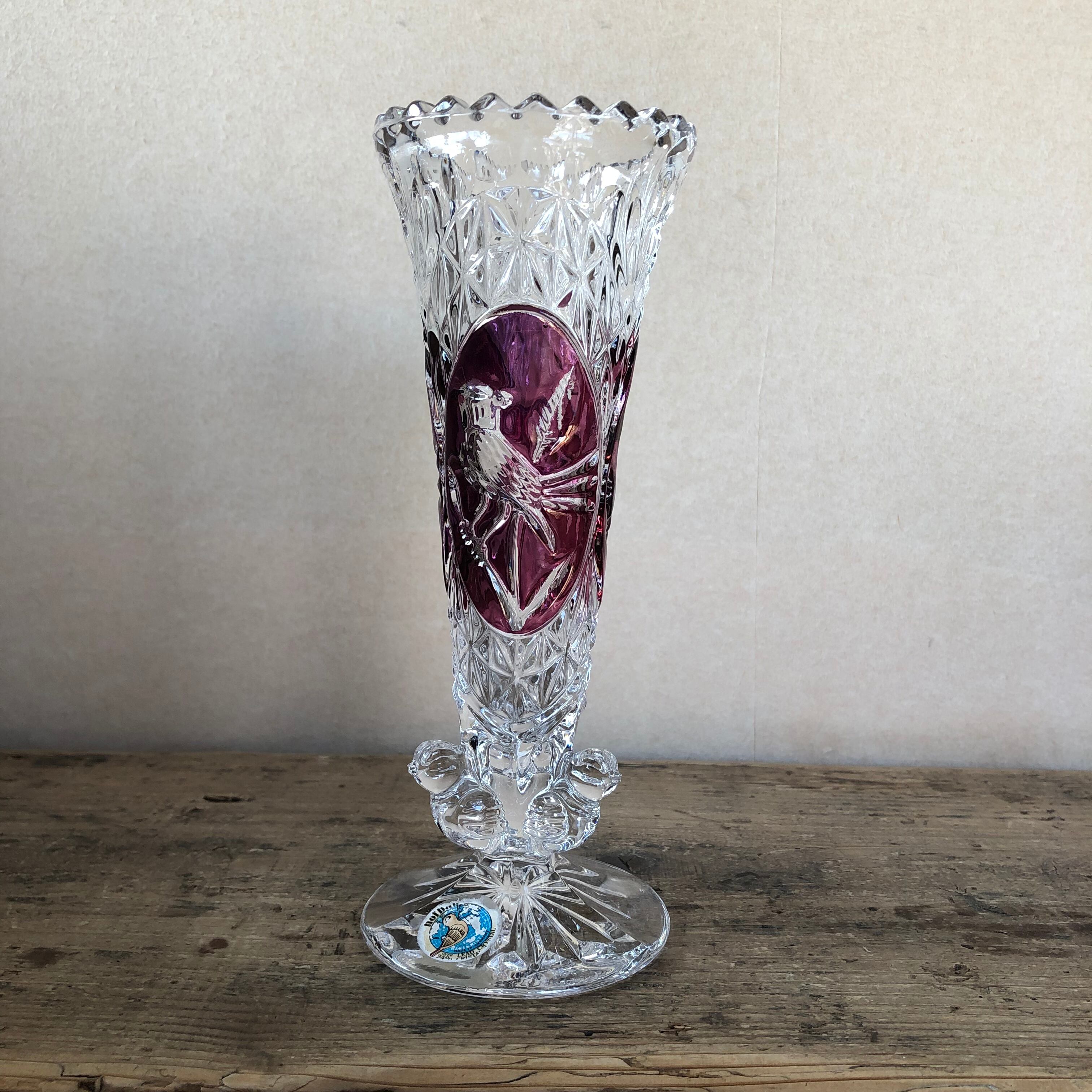 旧西ドイツ ホフバウワー社製、リードガラスの花瓶、小鳥のシリーズです。