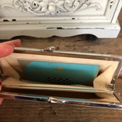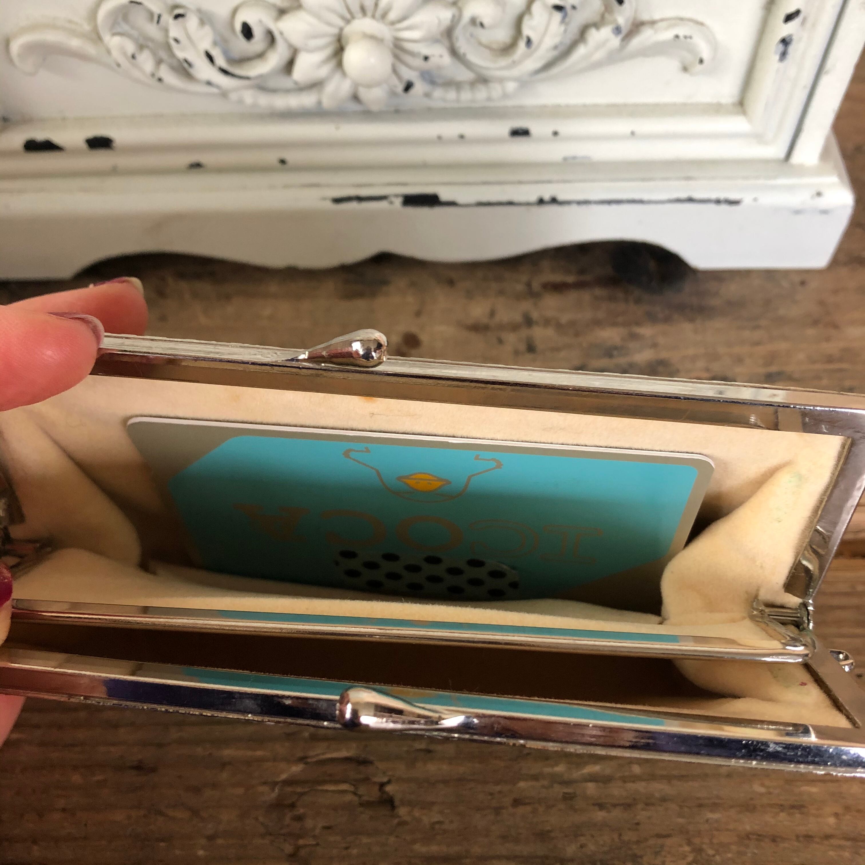 一般的なサイズのカードも入るサイズですので、お財布やカード入れとしてもお使い頂けると思いますが、開口部があまり広くなく、指でぐっと広げておかないと閉まってくるタイプの口なのでお会計の時には若干使いにくいかもしれません。