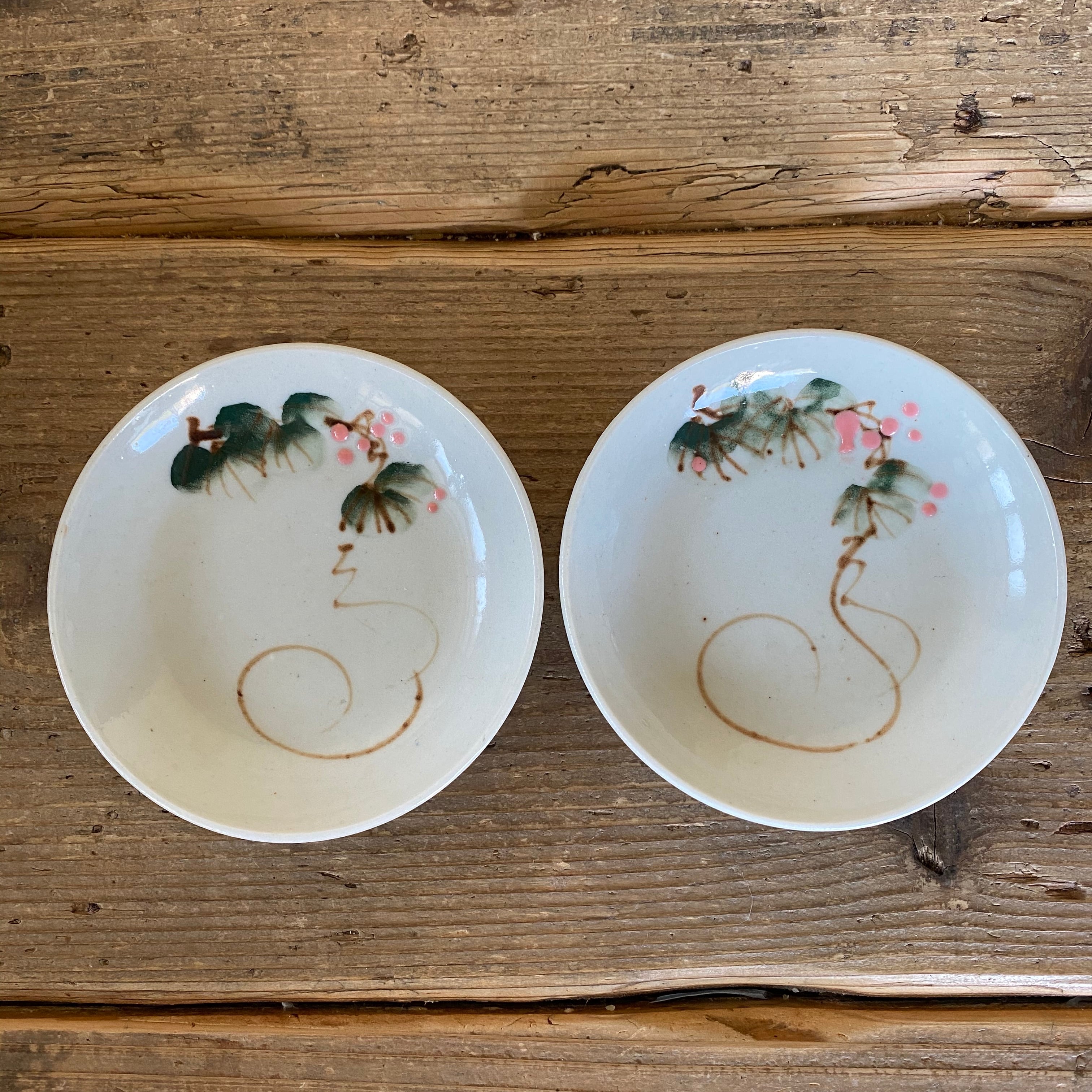 ピンクの実の印判皿2枚組