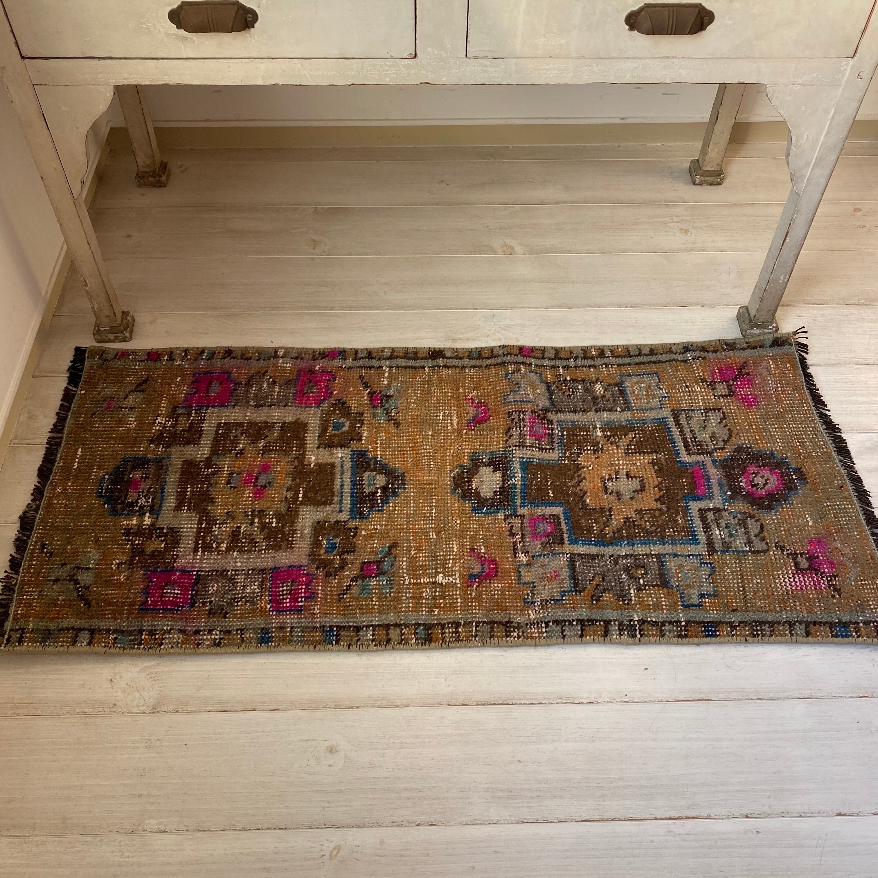 約45cm×95cmの小さめサイズのラグですので、玄関や棚などの前にアクセントとしてお使い頂くと良いサイズ感です。