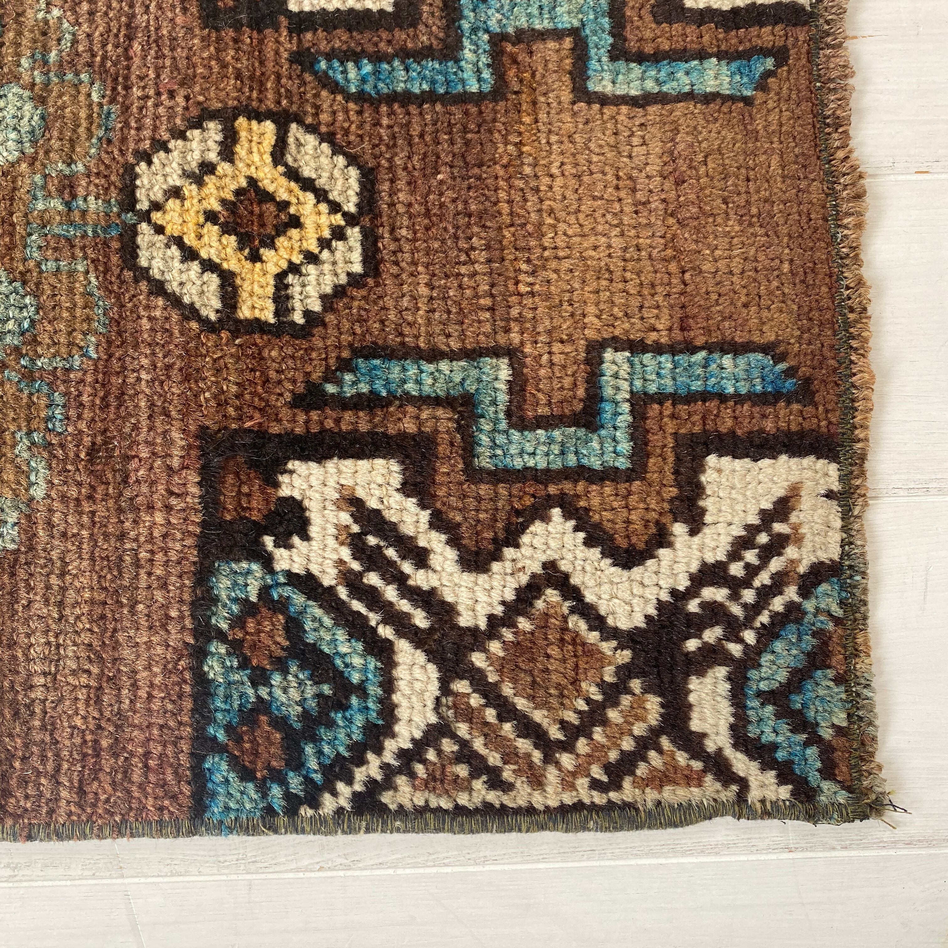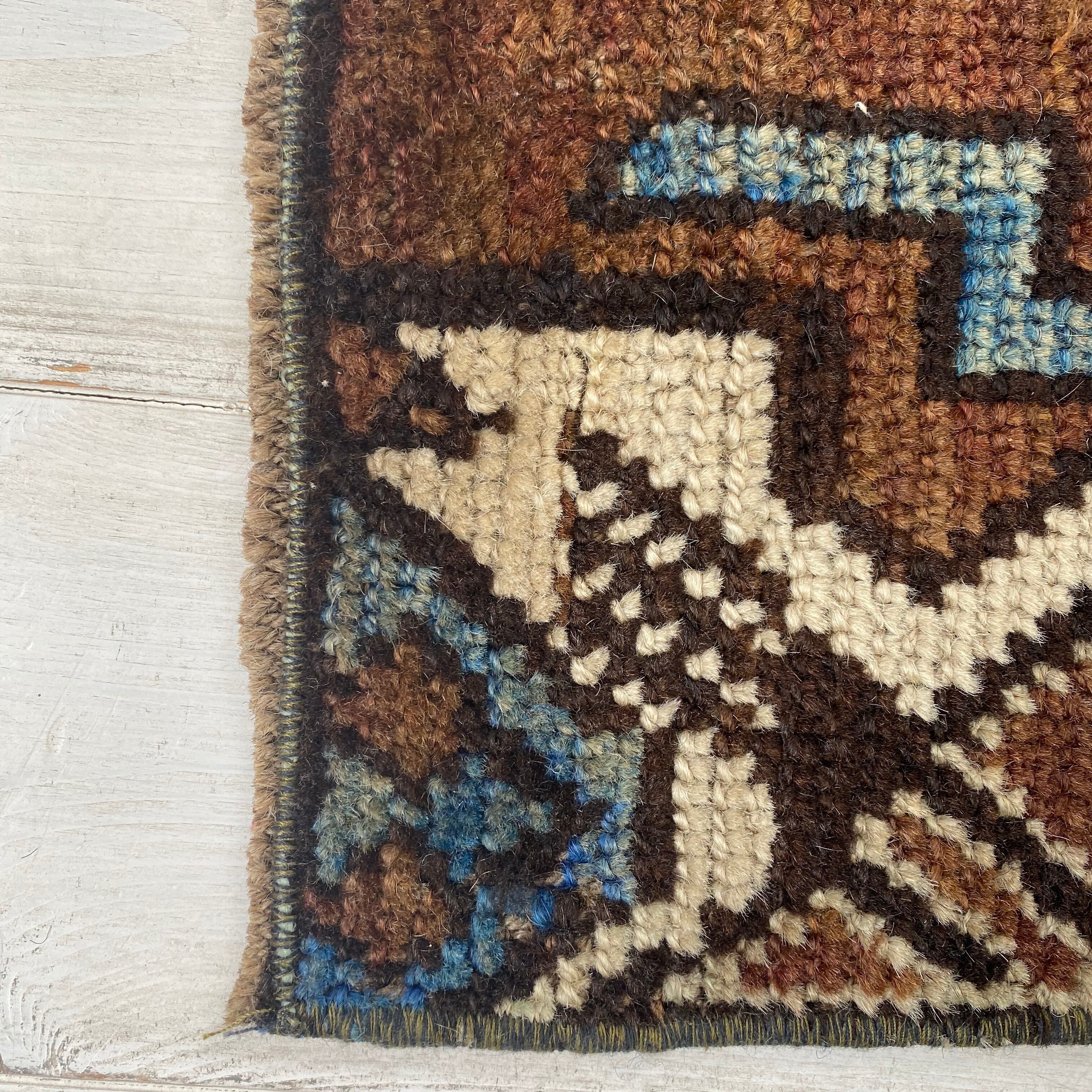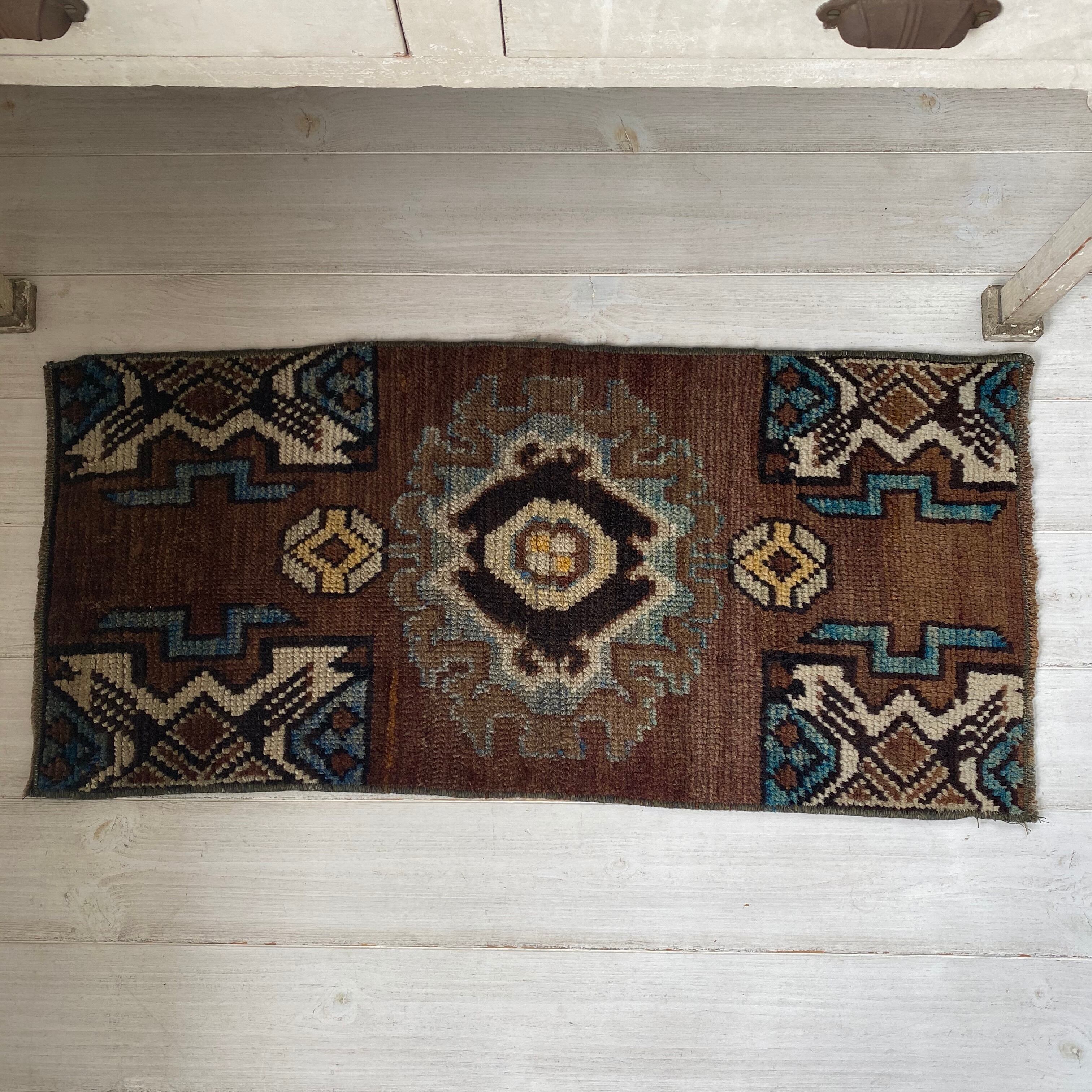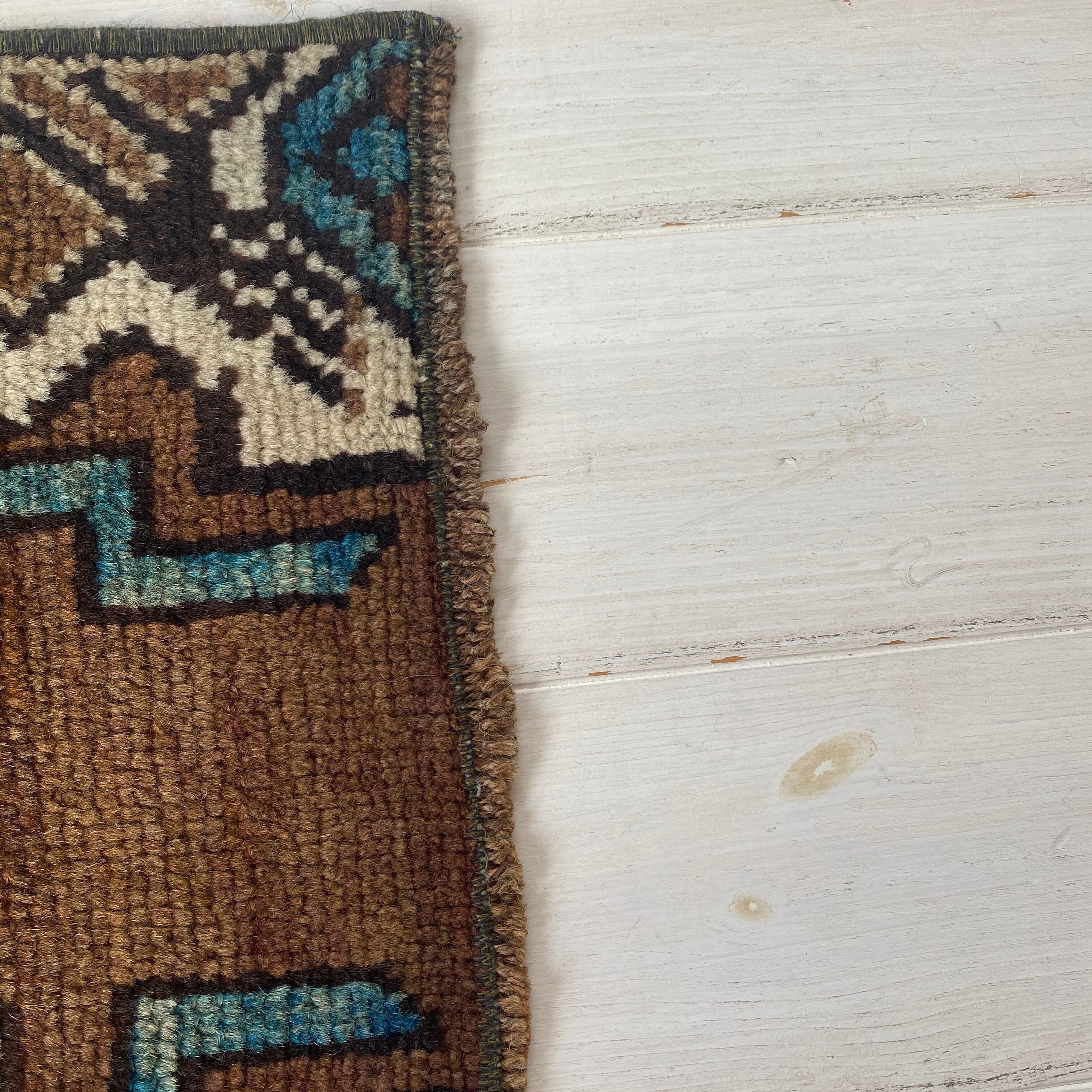 茶色とブルーの組み合わせ。あまり見かけない色合わせのラグかな、と思います。