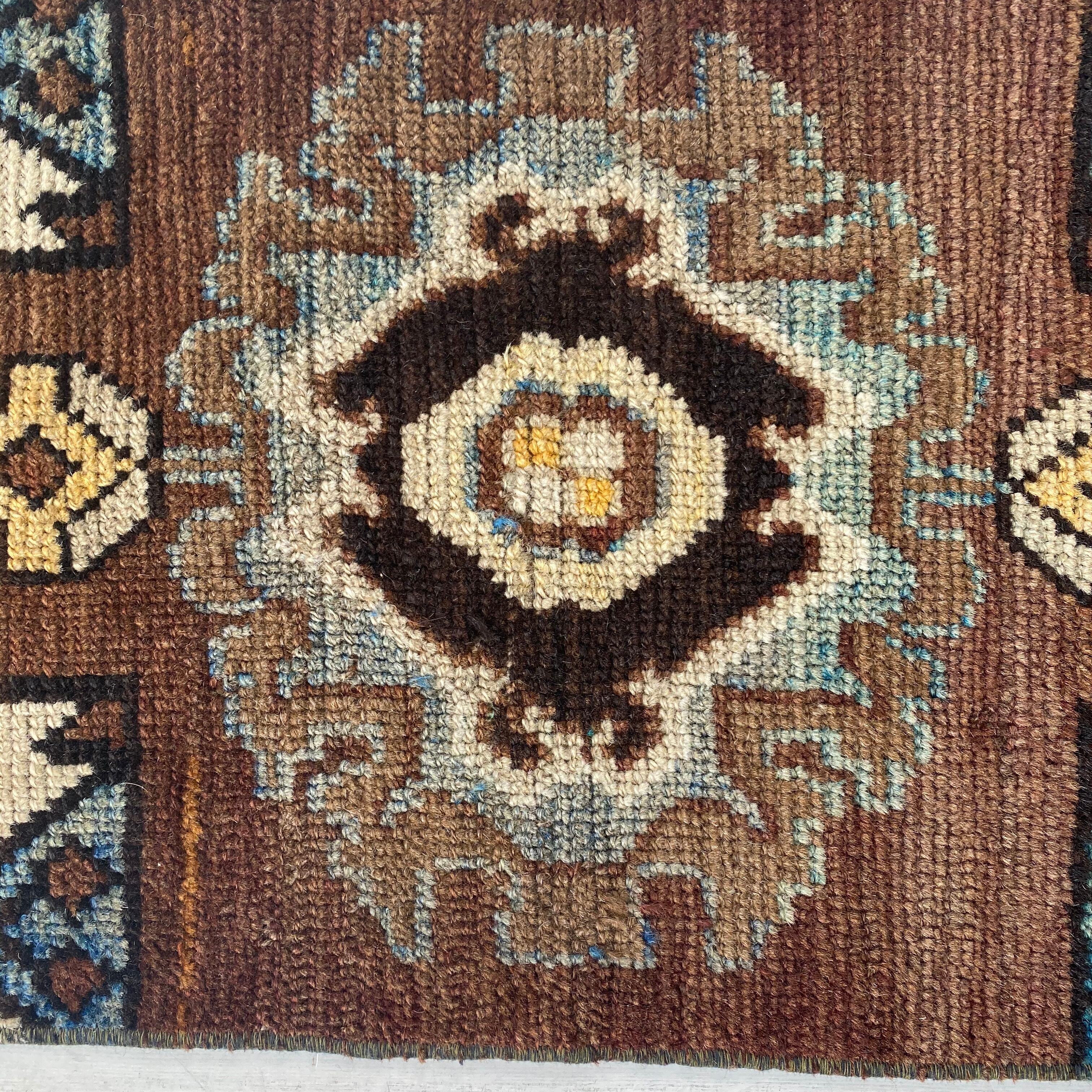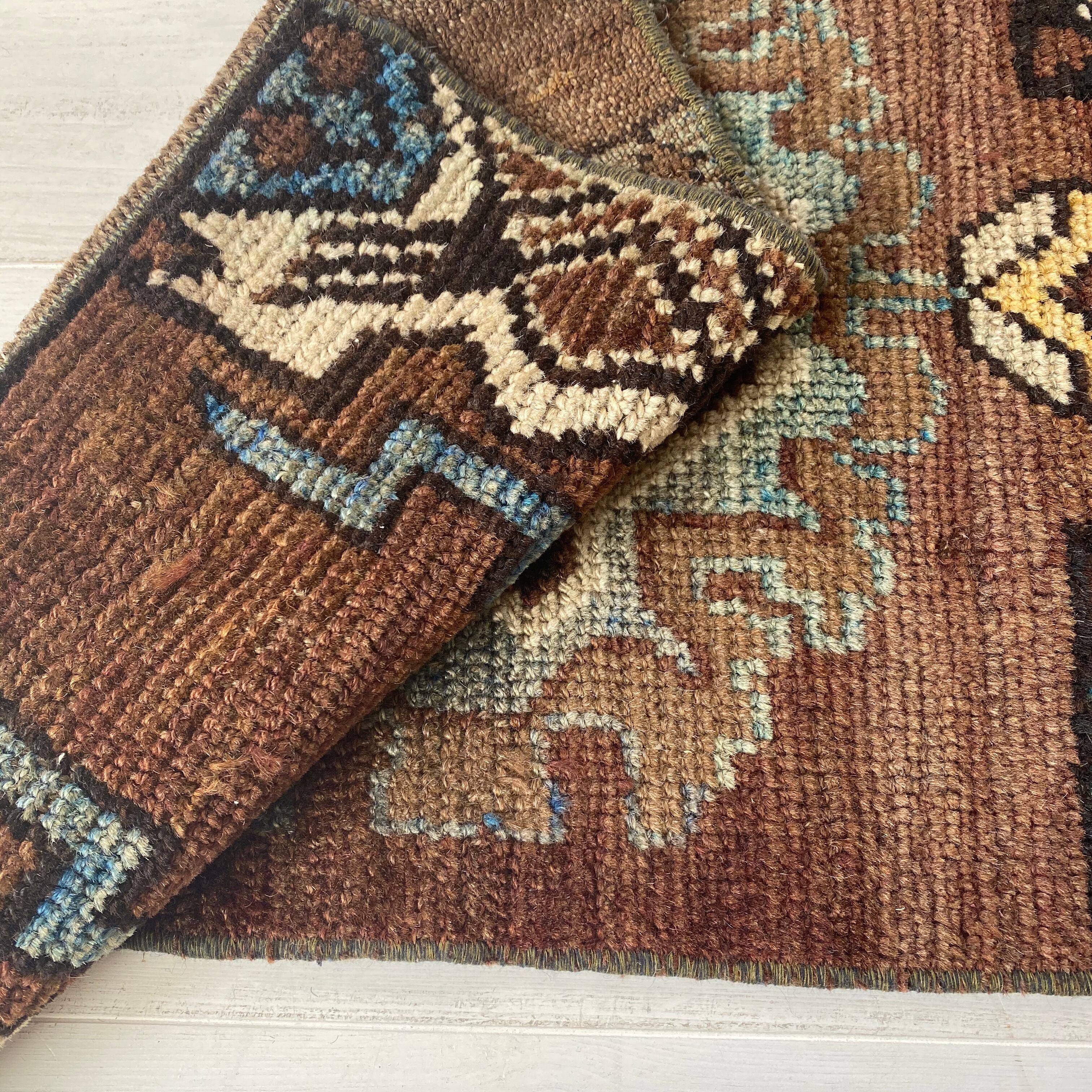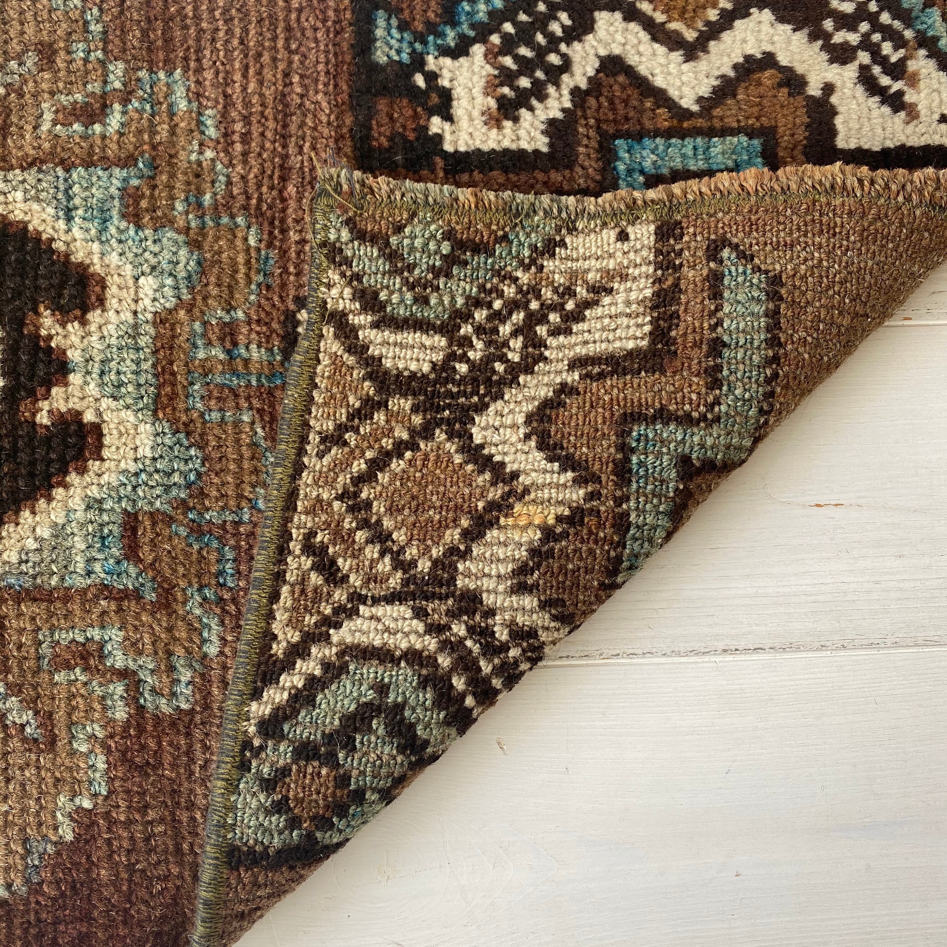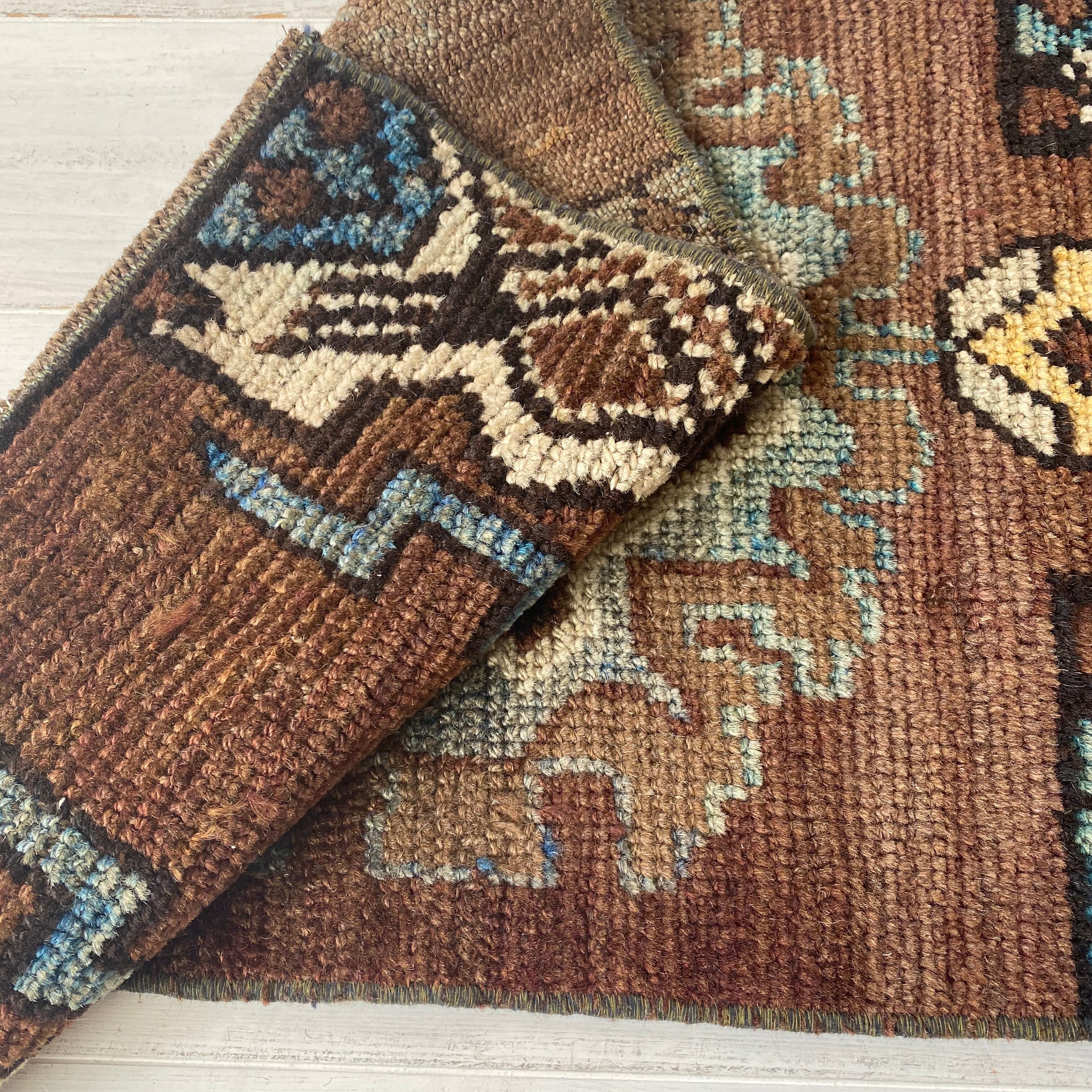 茶色とブルーの組み合わせ。あまり見かけない色合わせのラグかな、と思います。