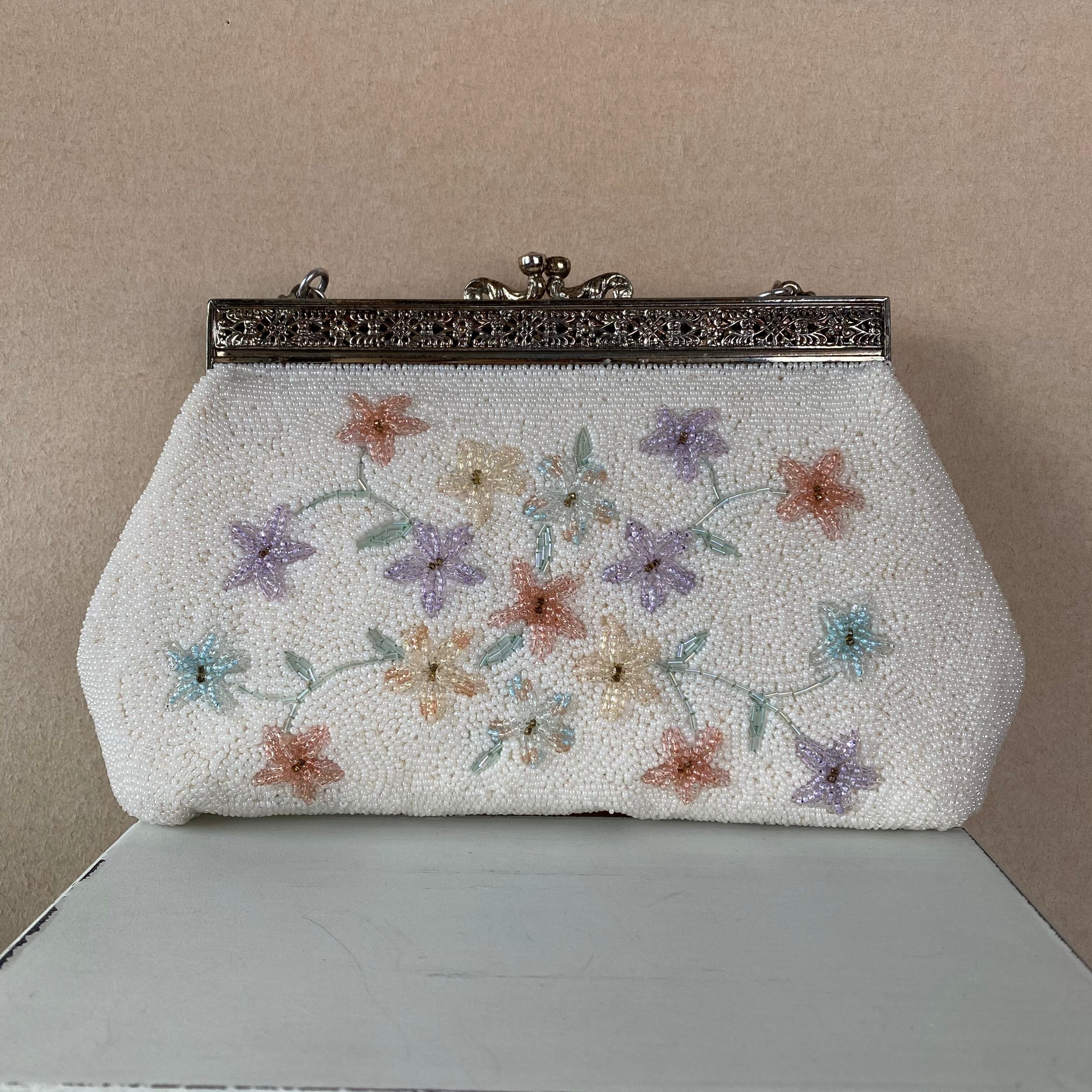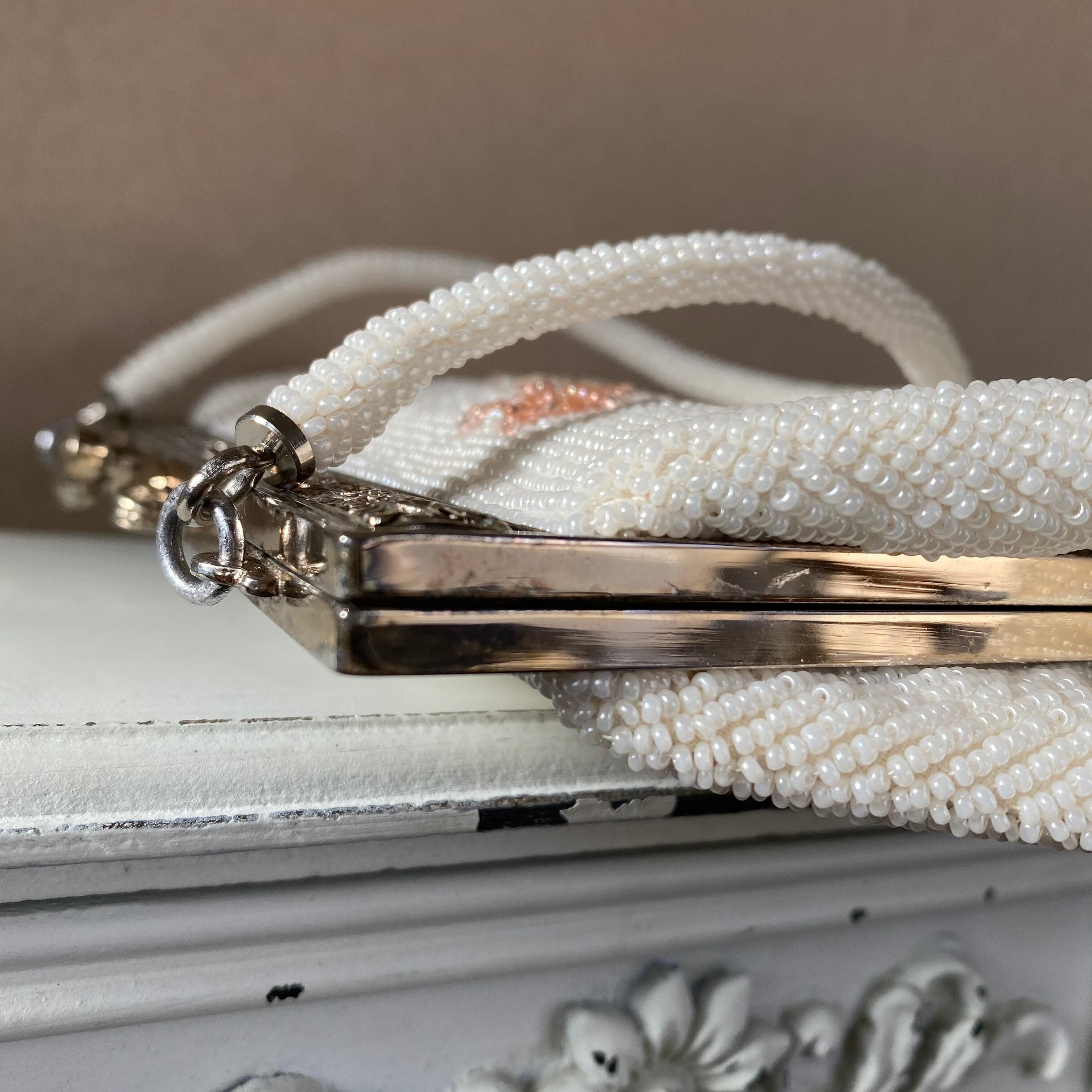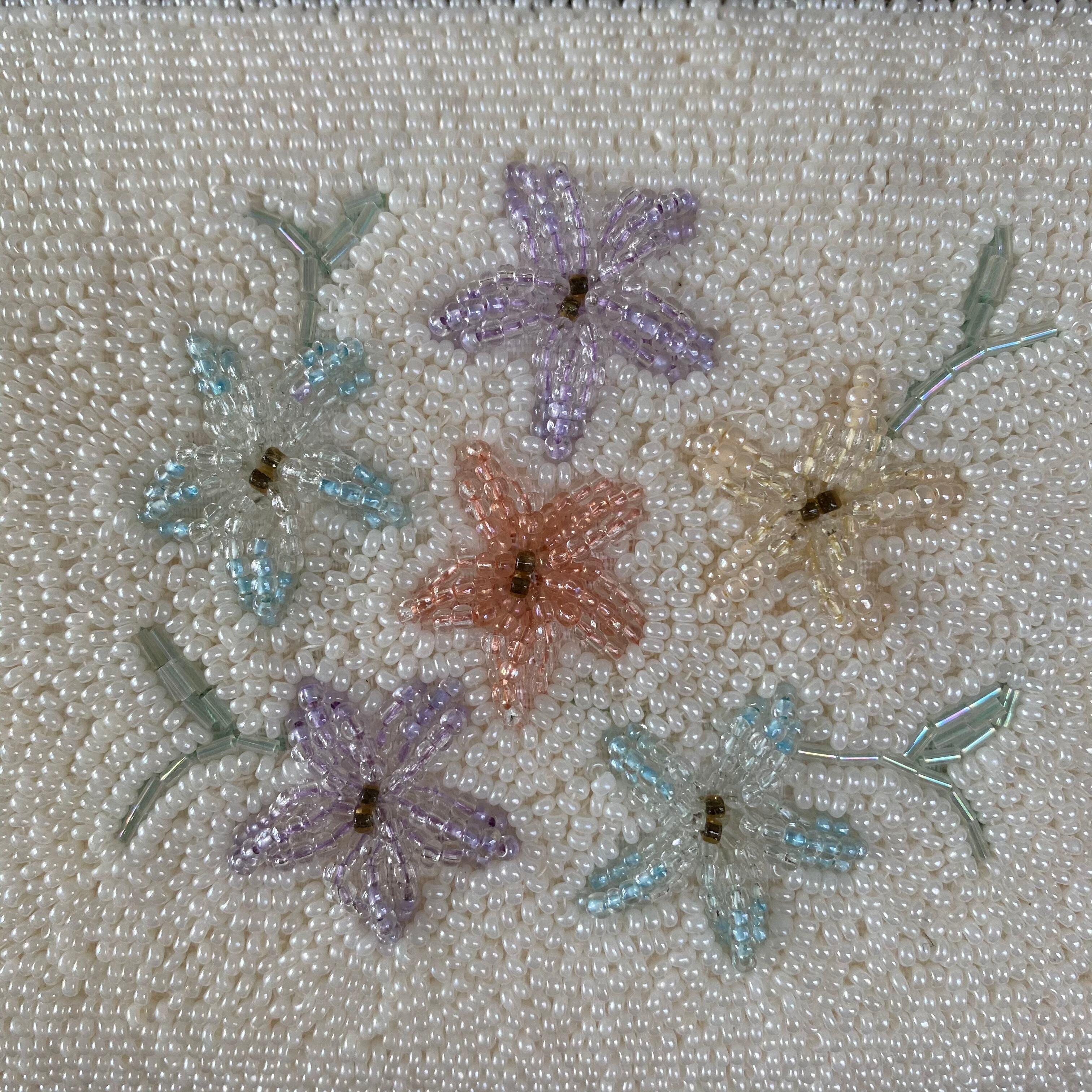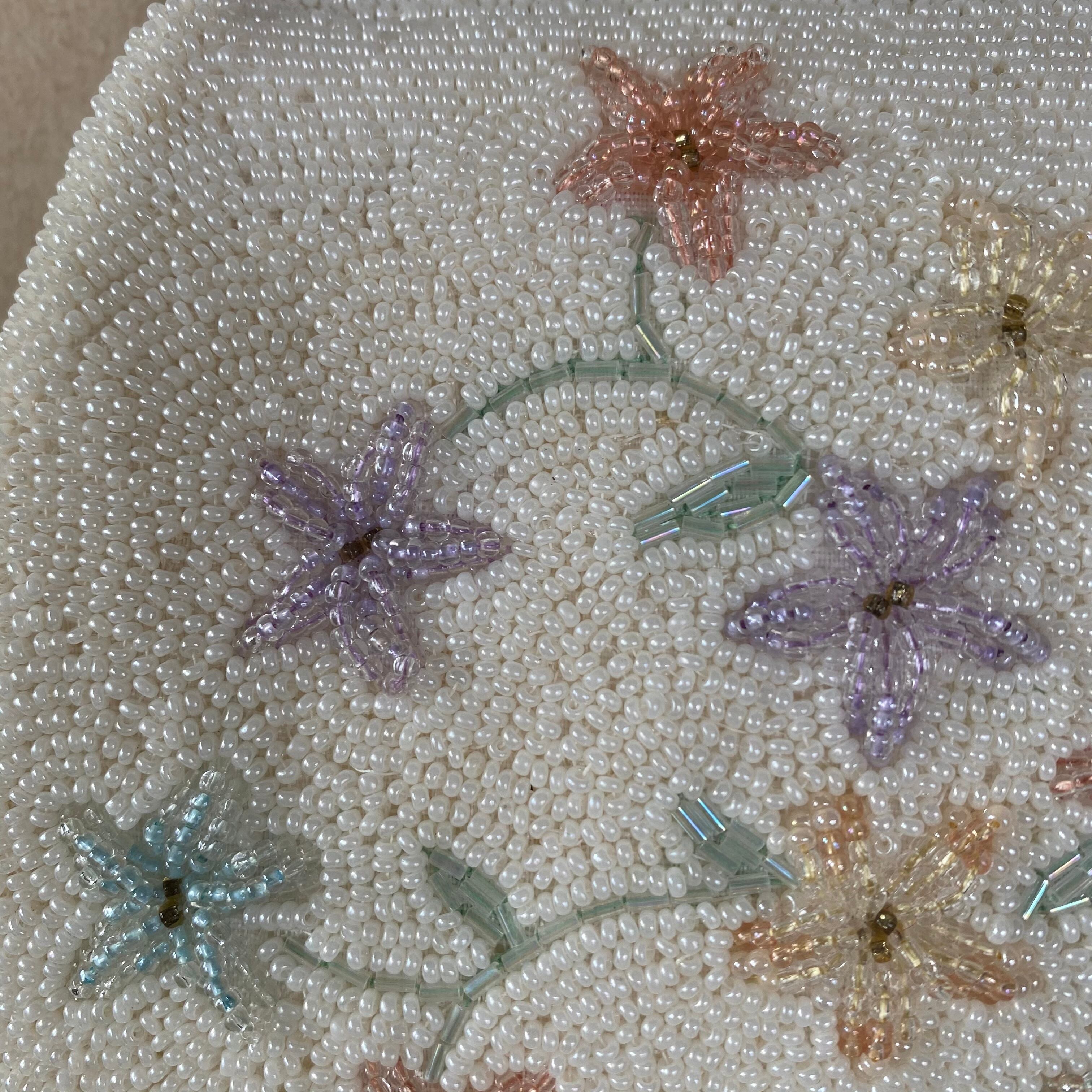 白いビーズにパステルカラーのビーズで刺繍されたお花が♡