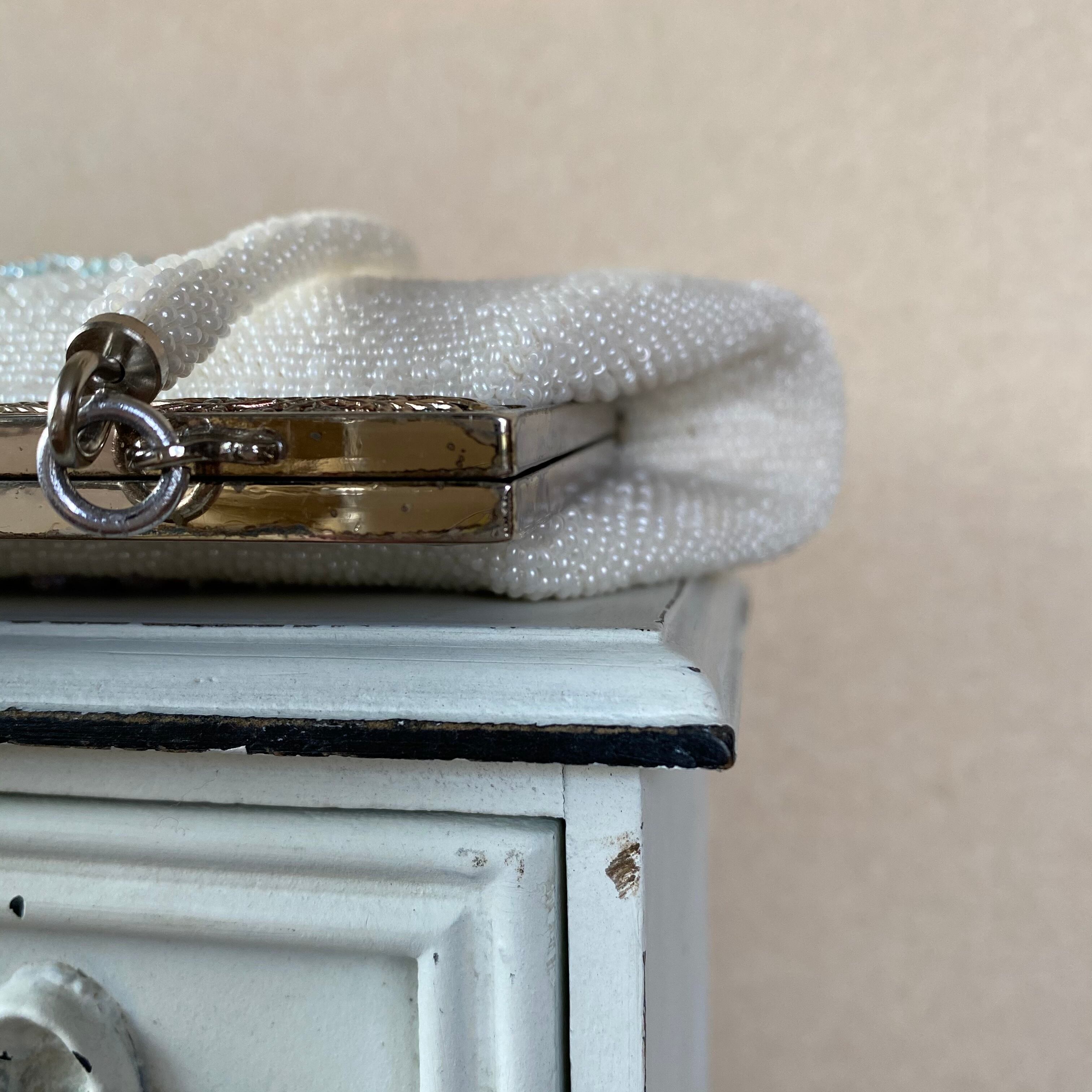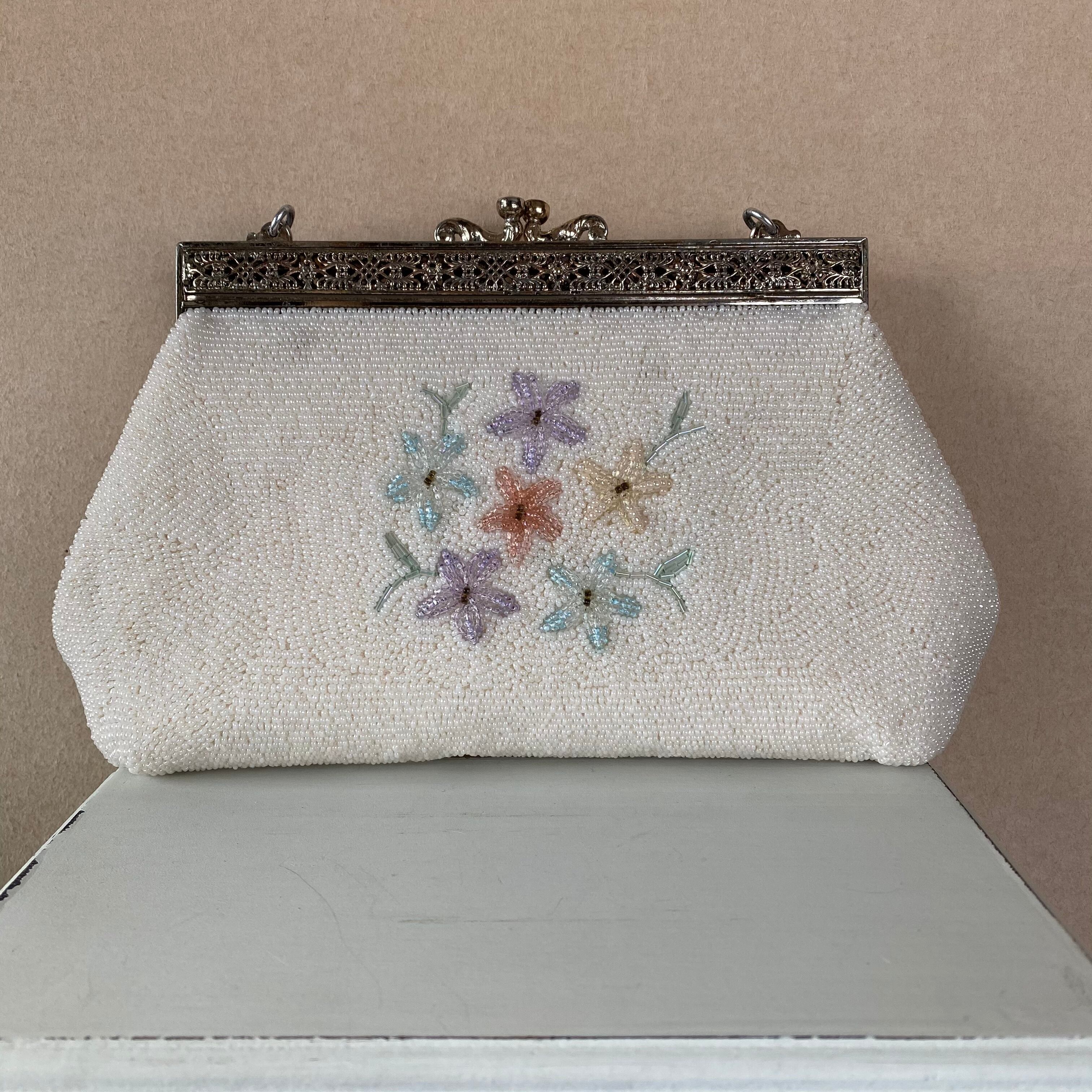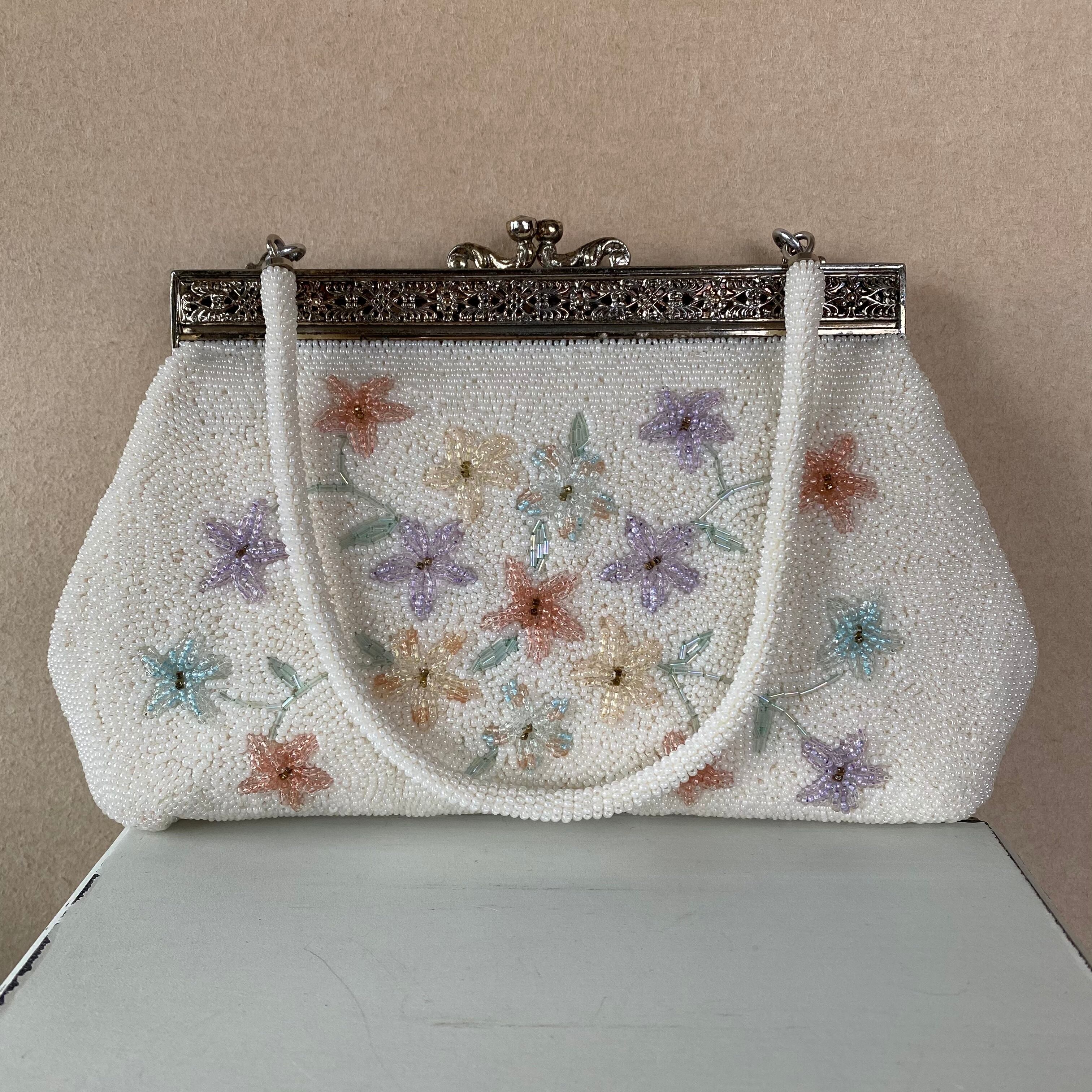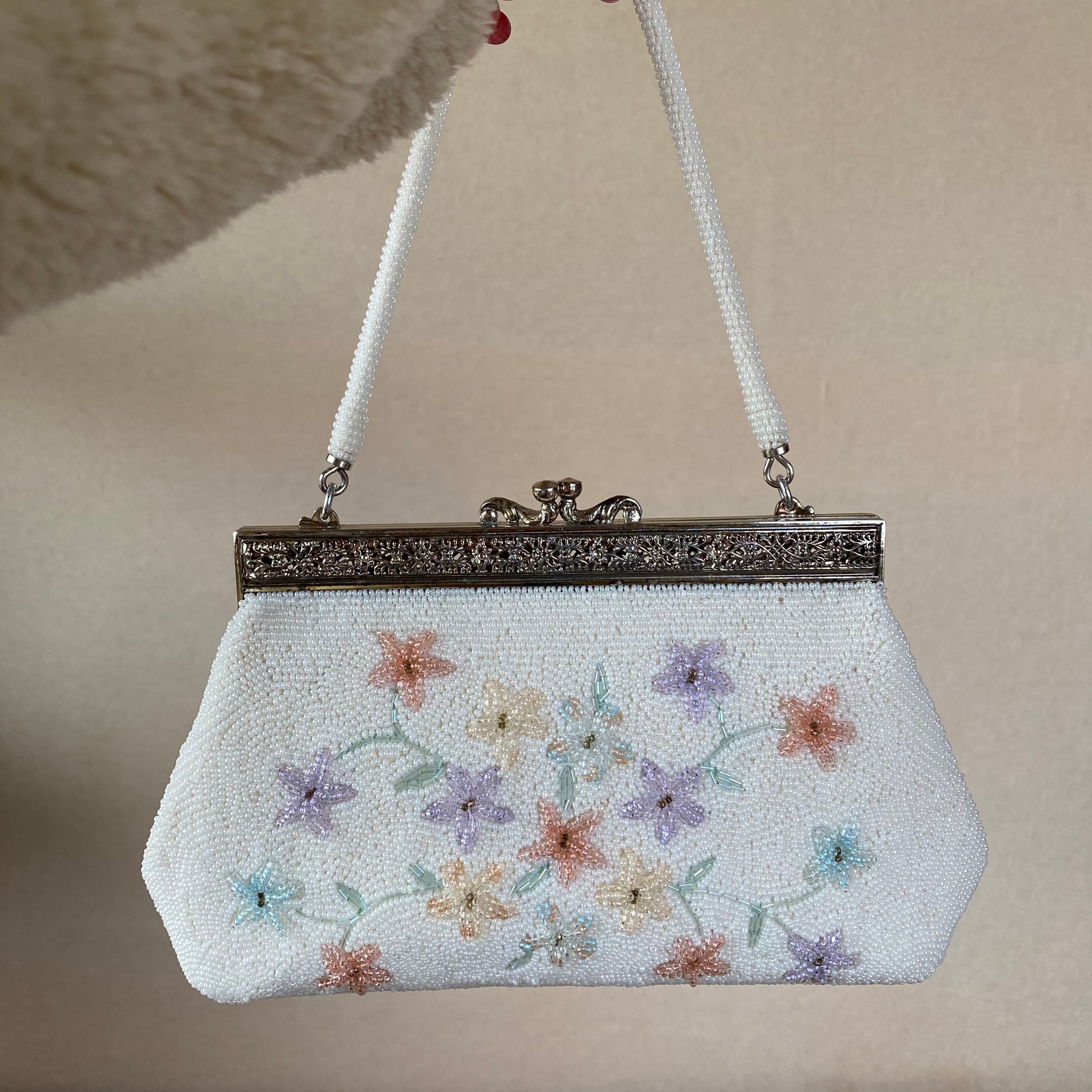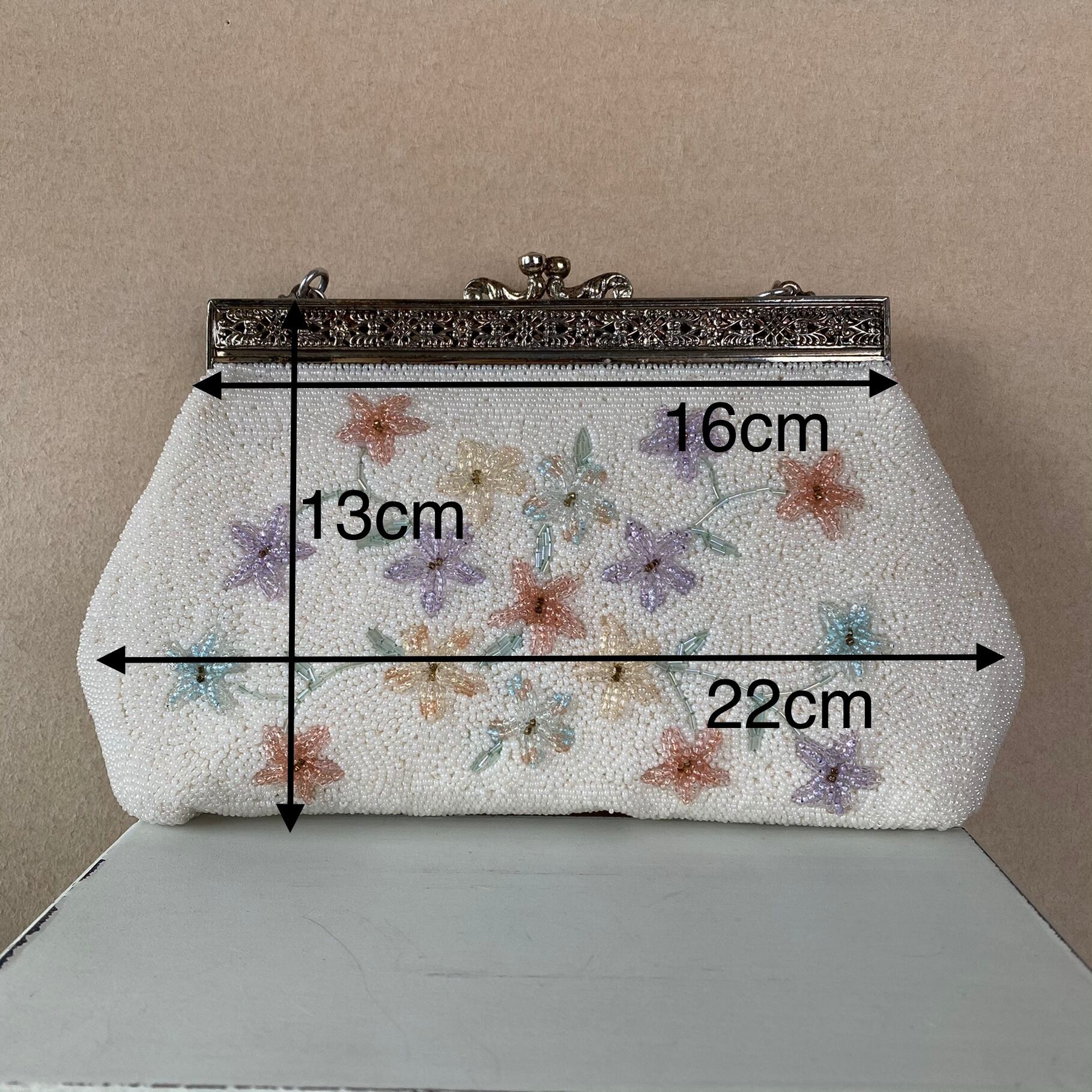 白いビーズにパステルカラーのビーズで刺繍されたお花が♡