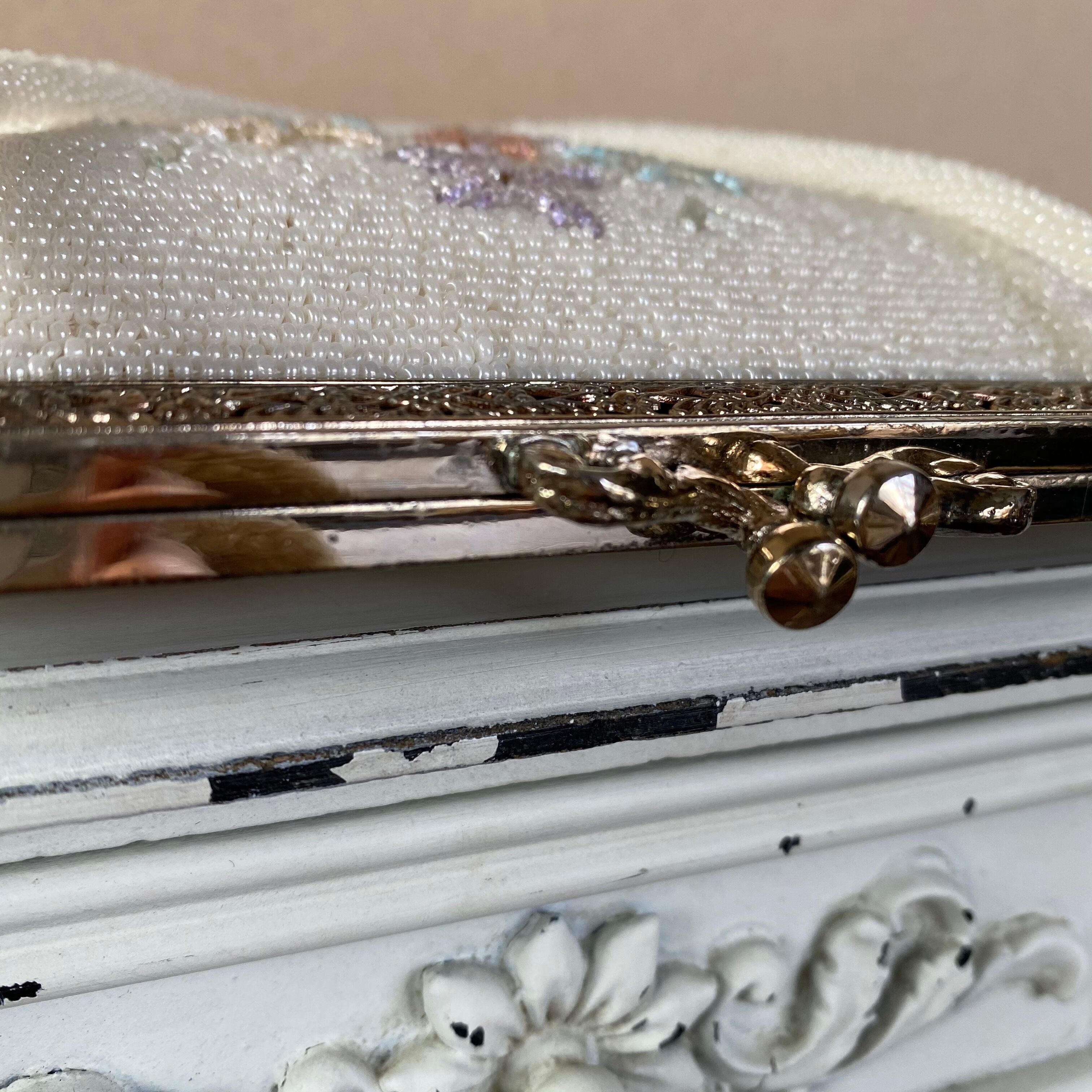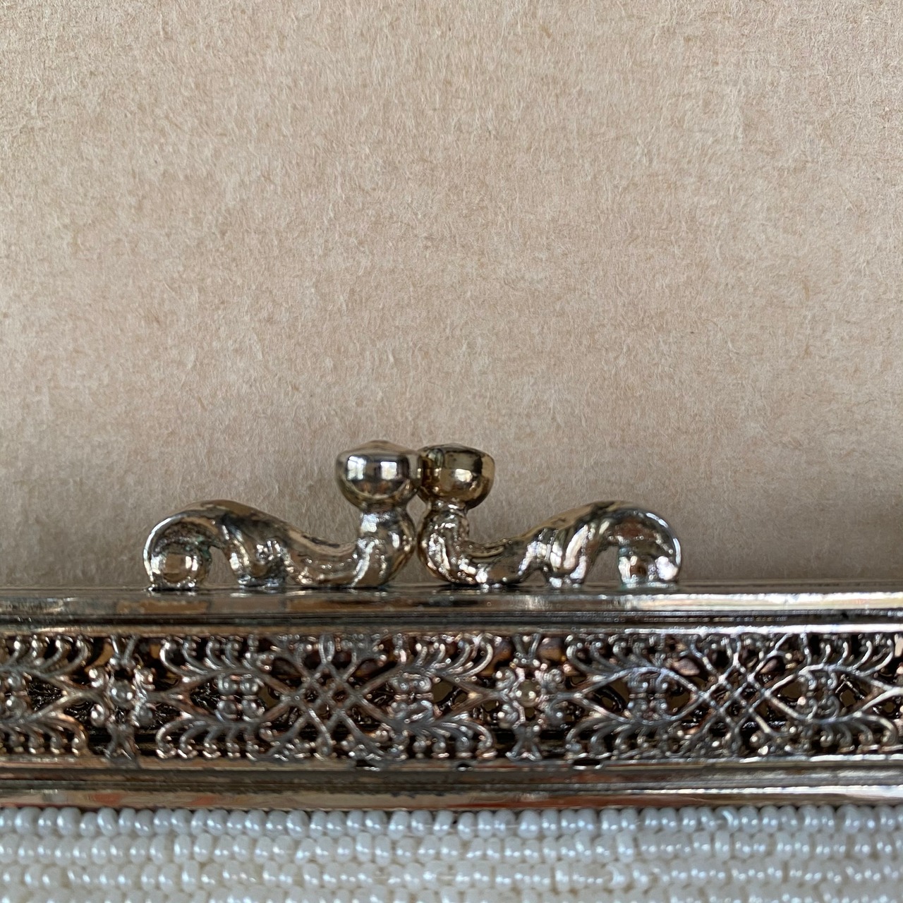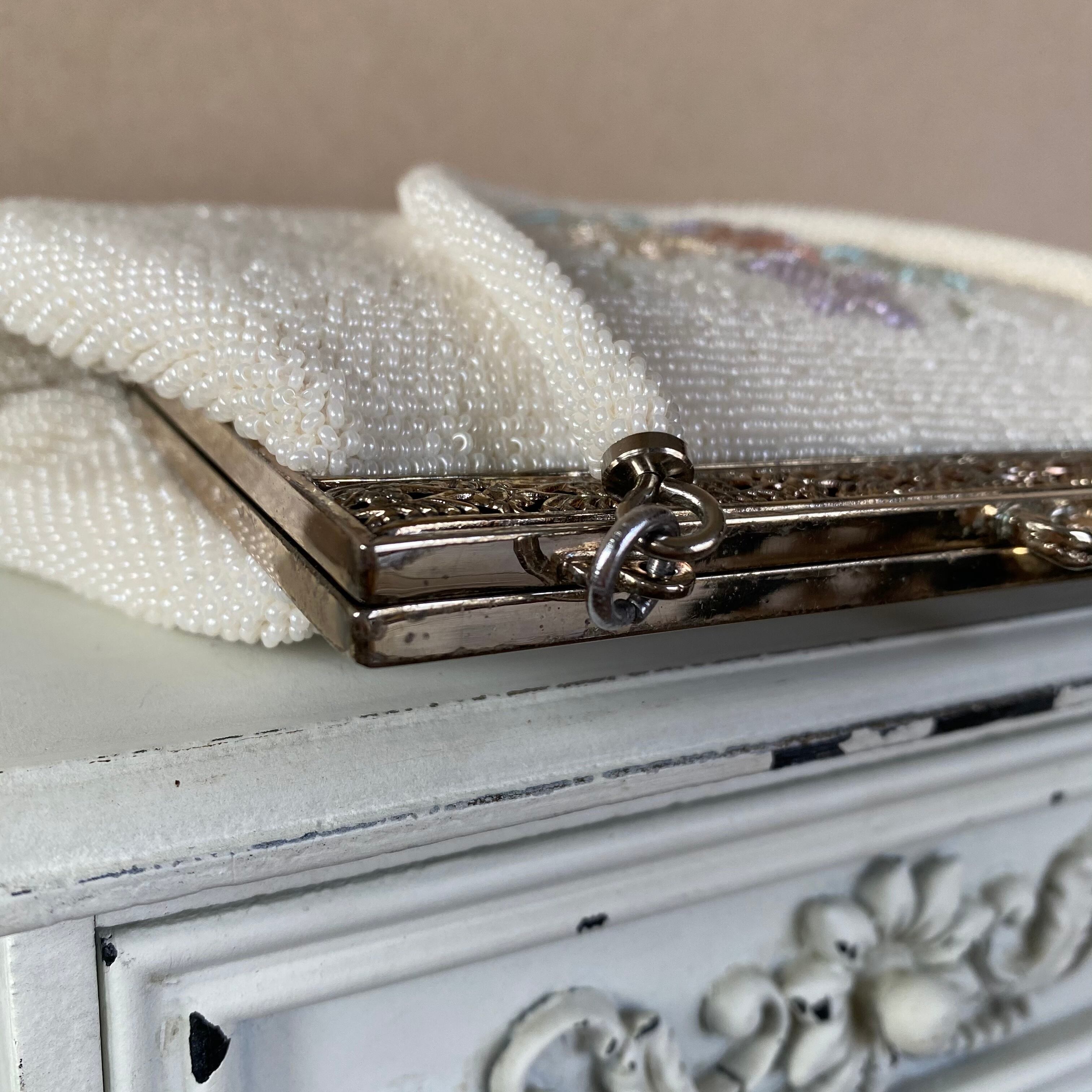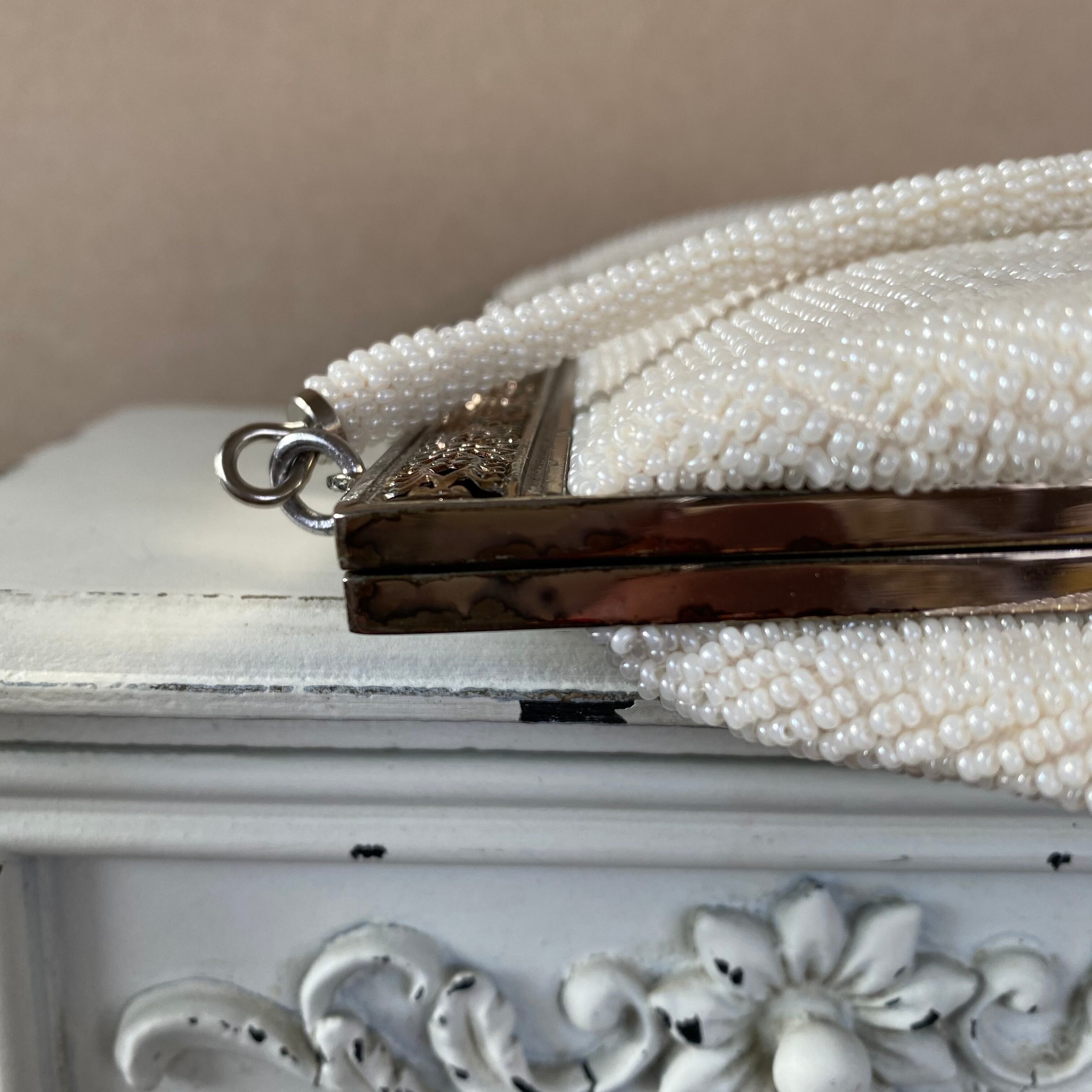白いビーズにパステルカラーのビーズで刺繍されたお花が♡