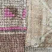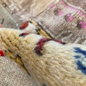 こちら、30年以上前のトルコ絨毯をリメイクしてクッションカバーにした物ですので、ダメージや使用感のある物となっております。