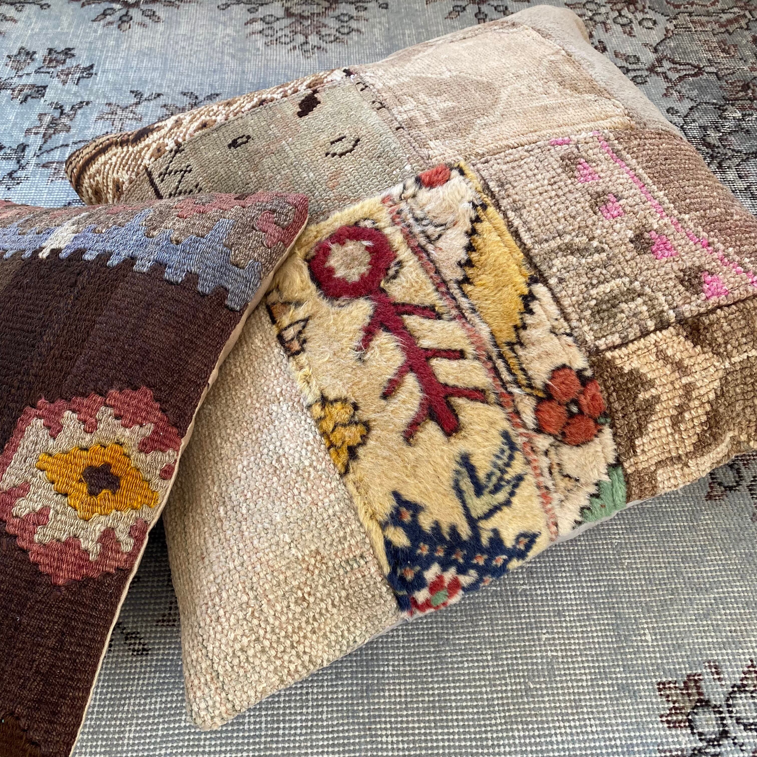 色々なビンテージラグの端切れからリメイクされたクッションカバー。