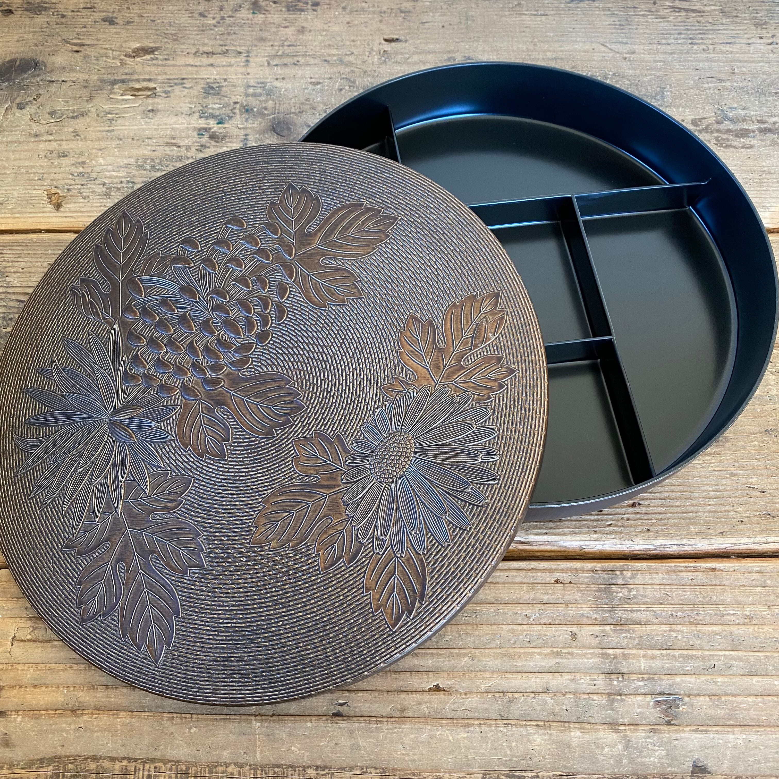 中身が仕切られていて、色んなおかずを盛り付けるおせち料理などにもぴったりなケースではないでしょうか。