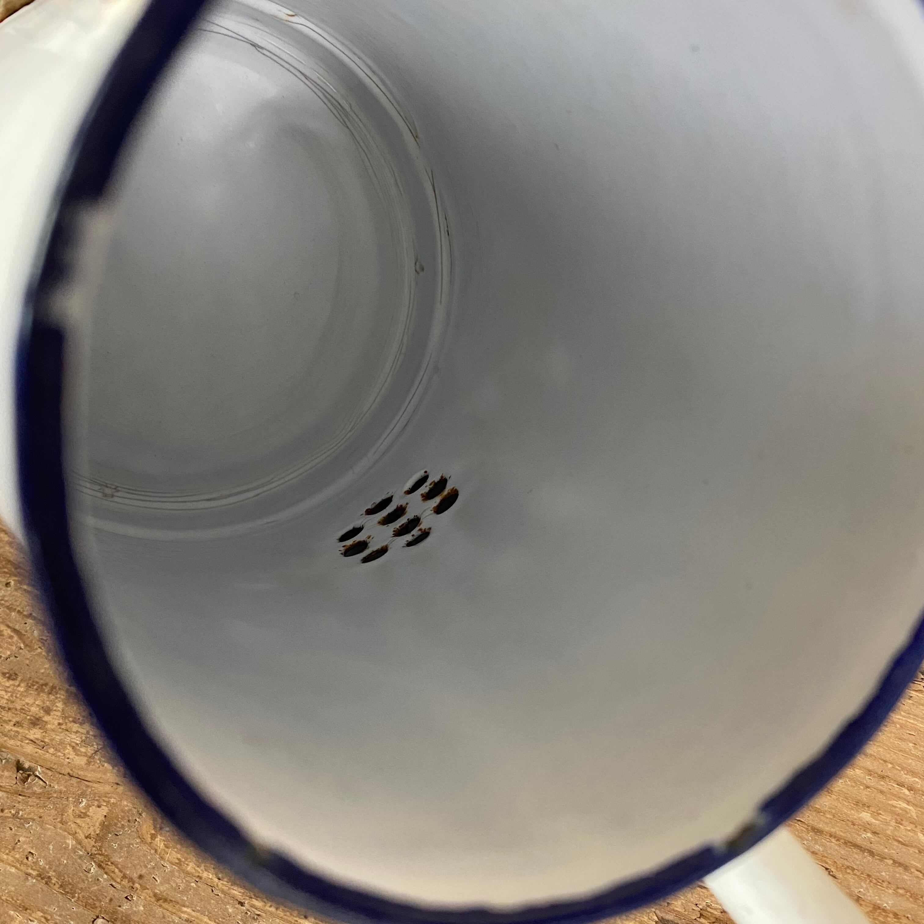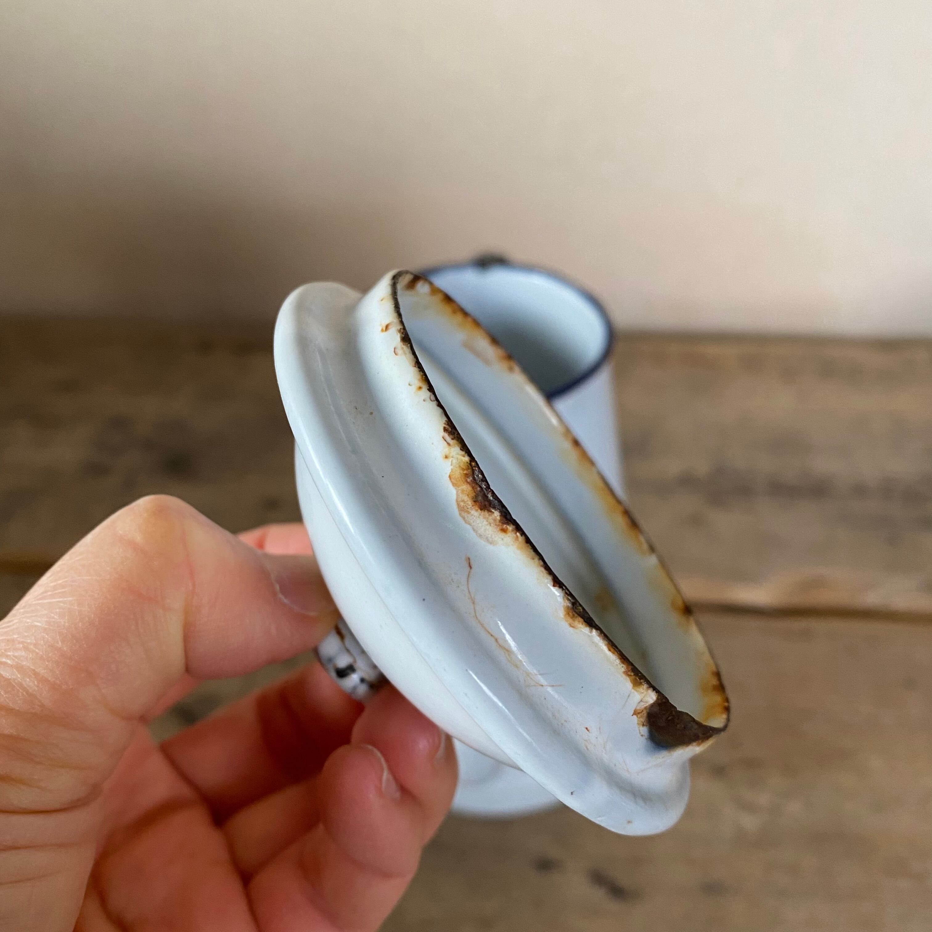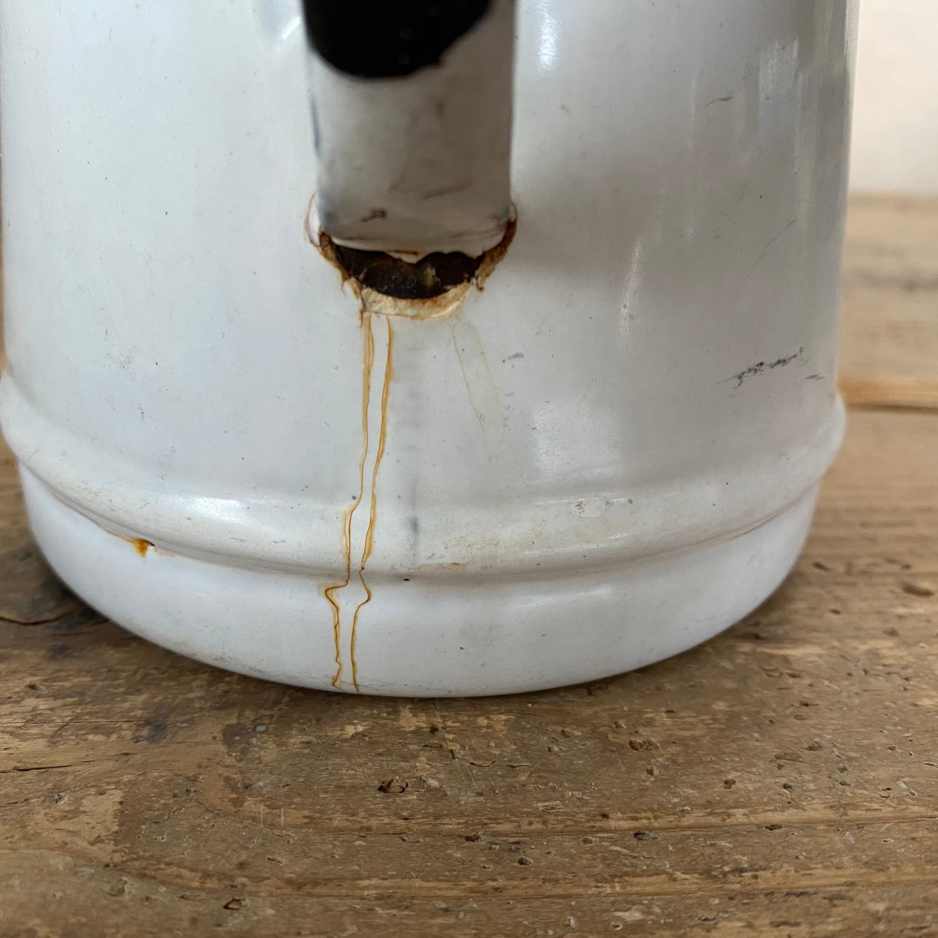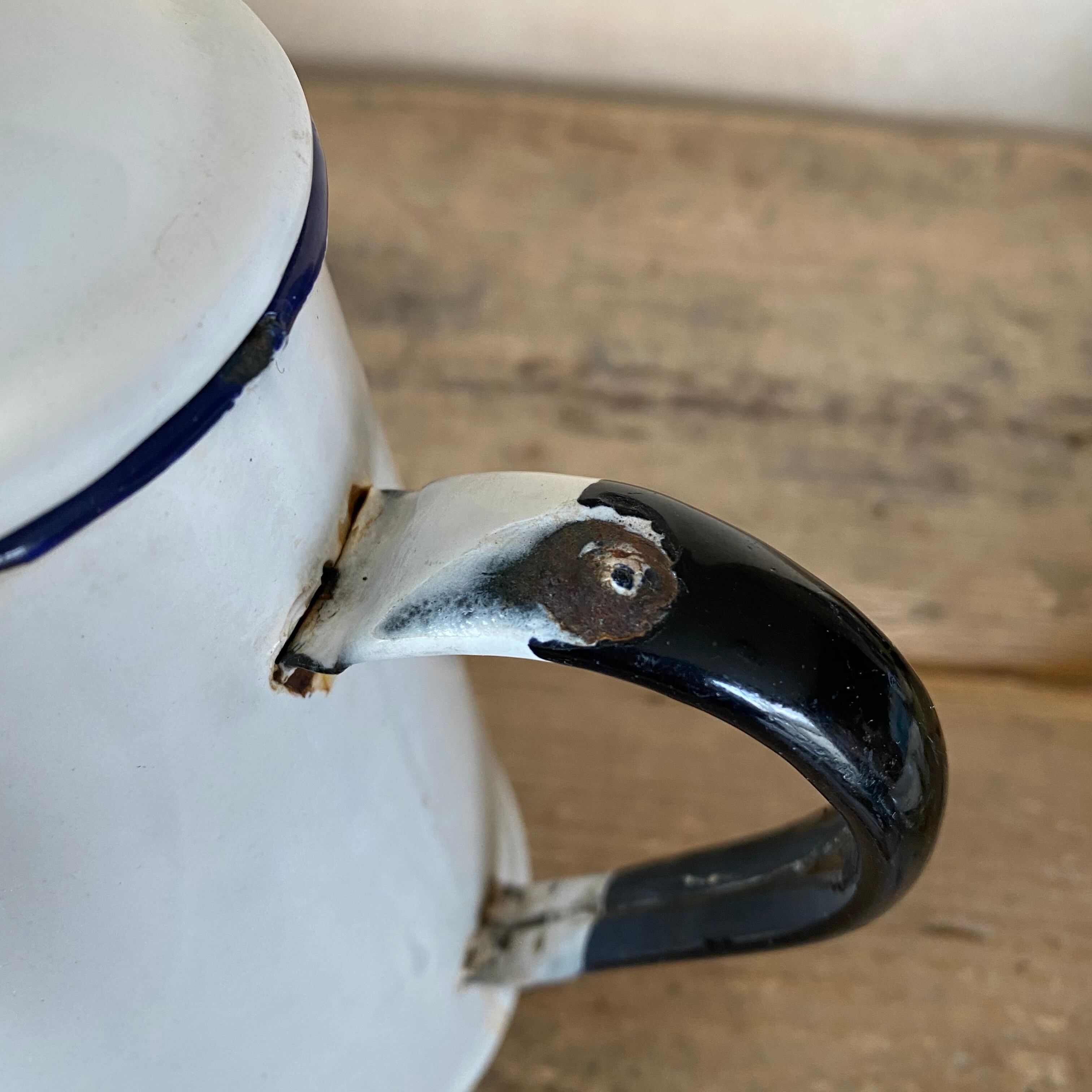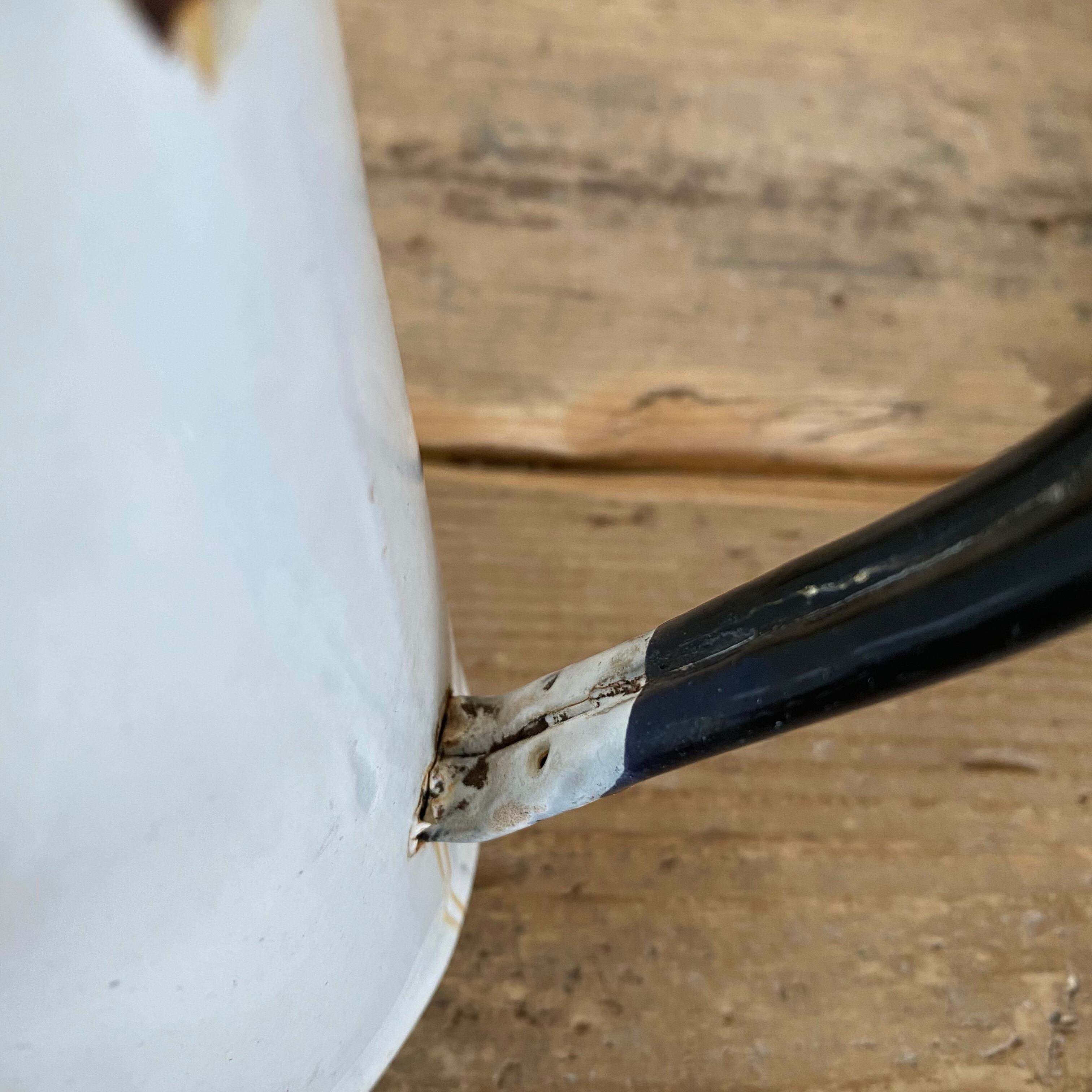 使い込まれた感や、年月の経過を感じる古いホーローのポットです。