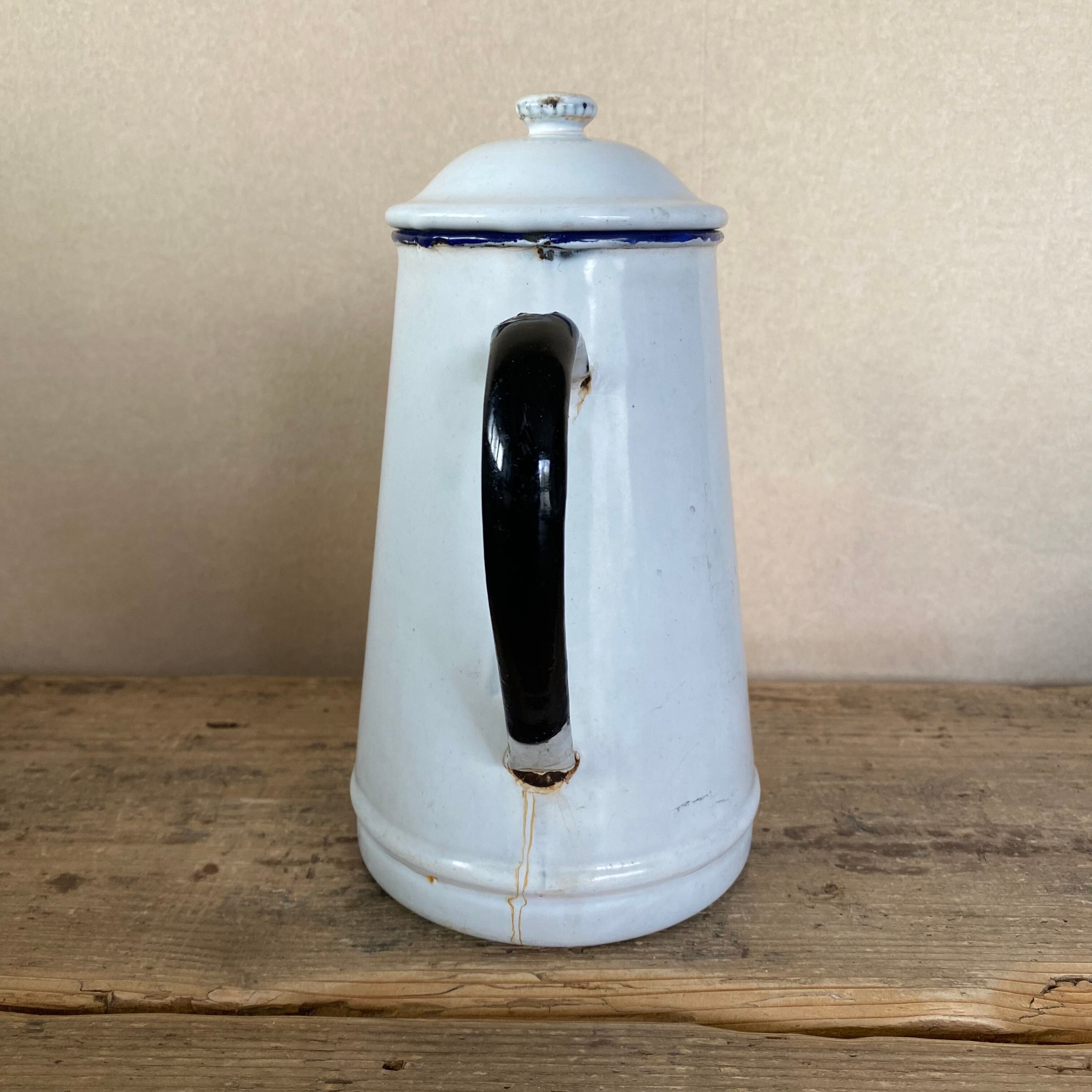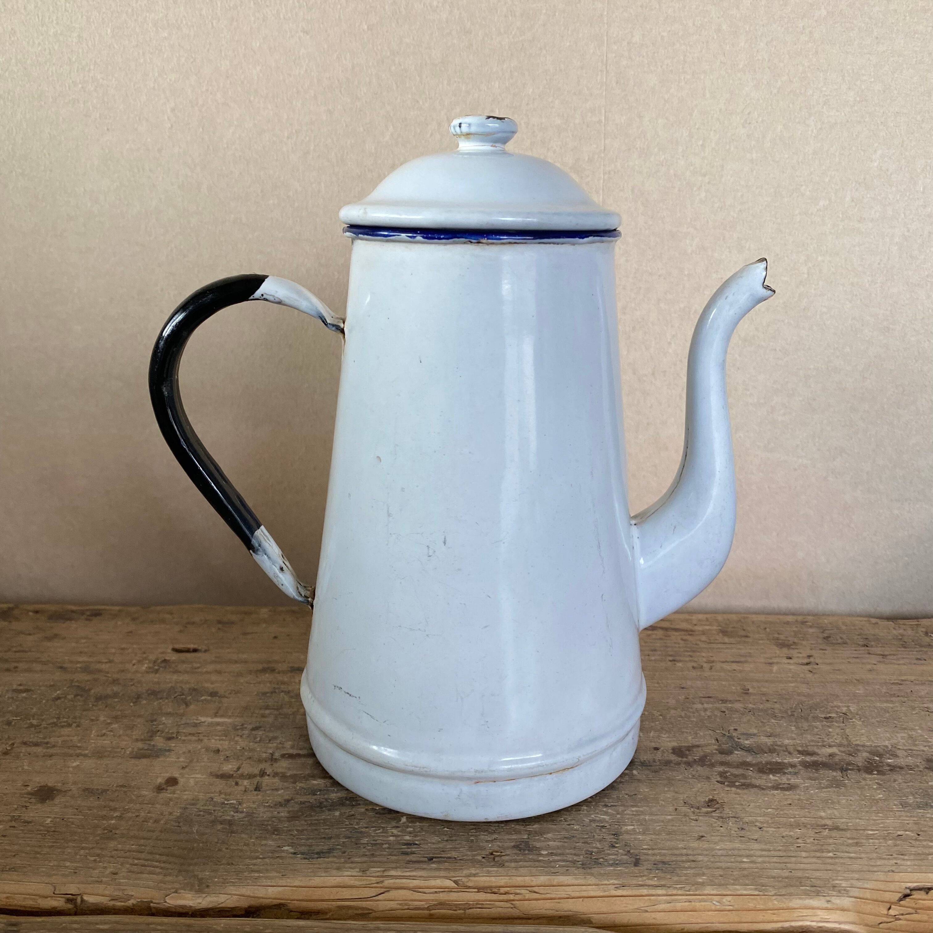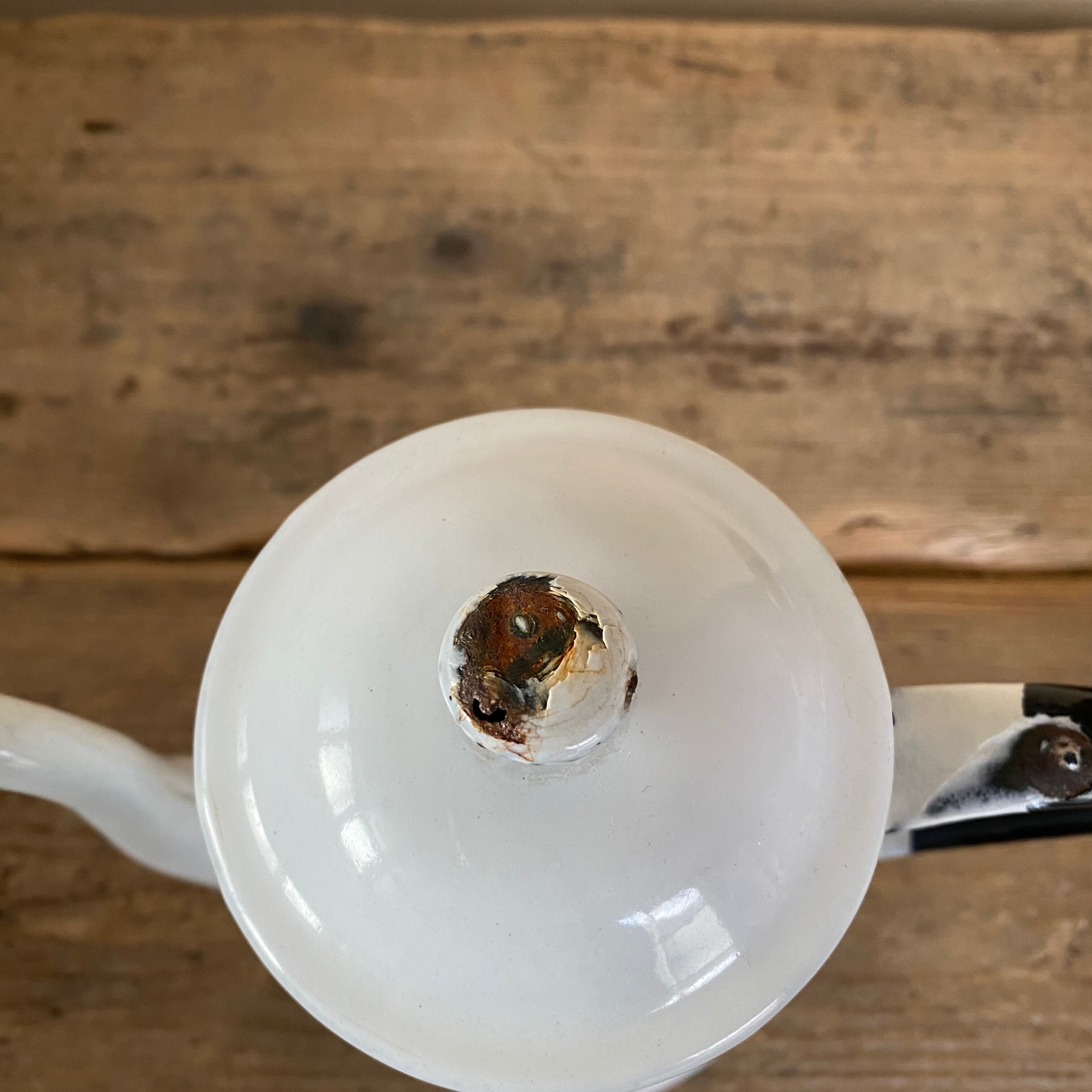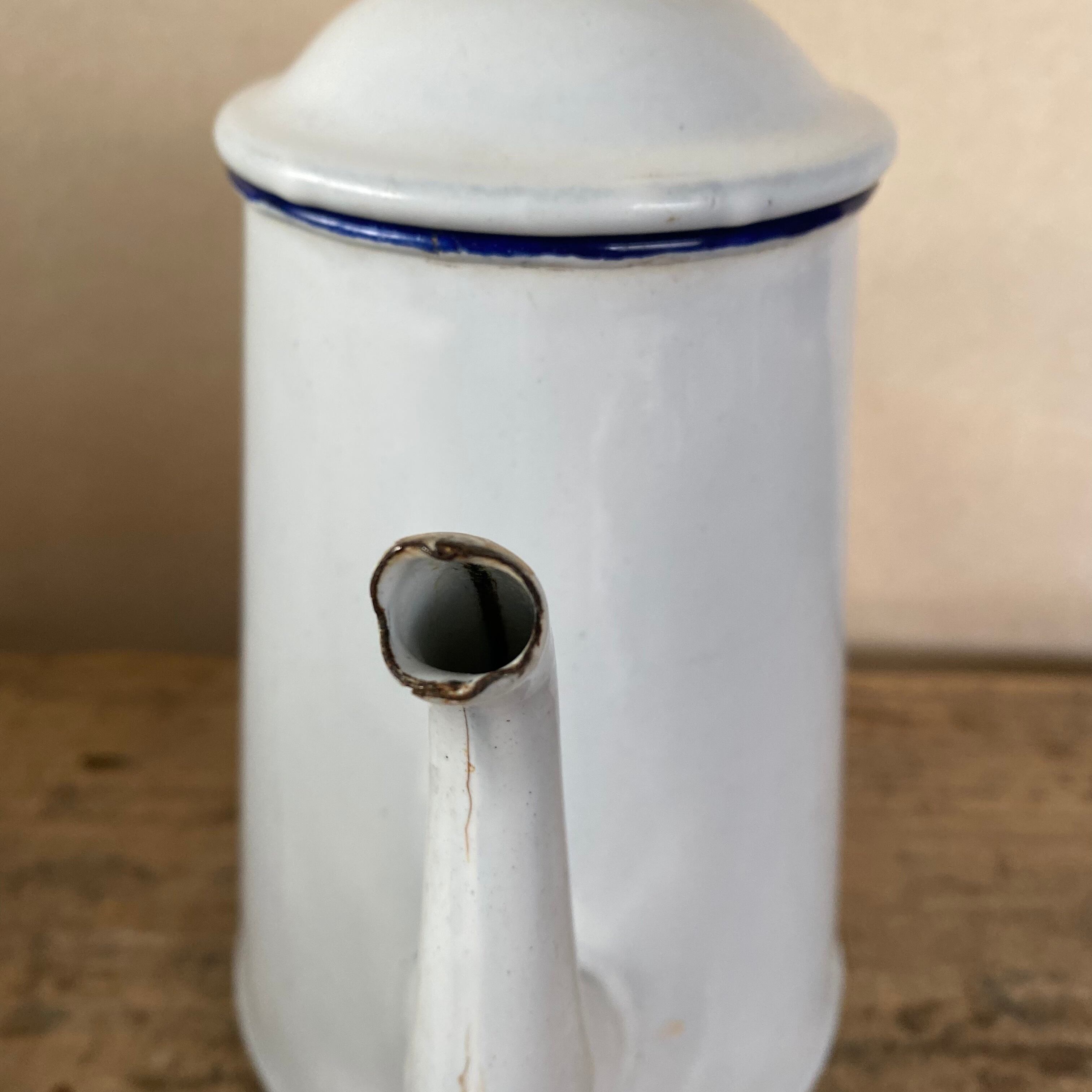 使い込まれた感や、年月の経過を感じる古いホーローのポットです。