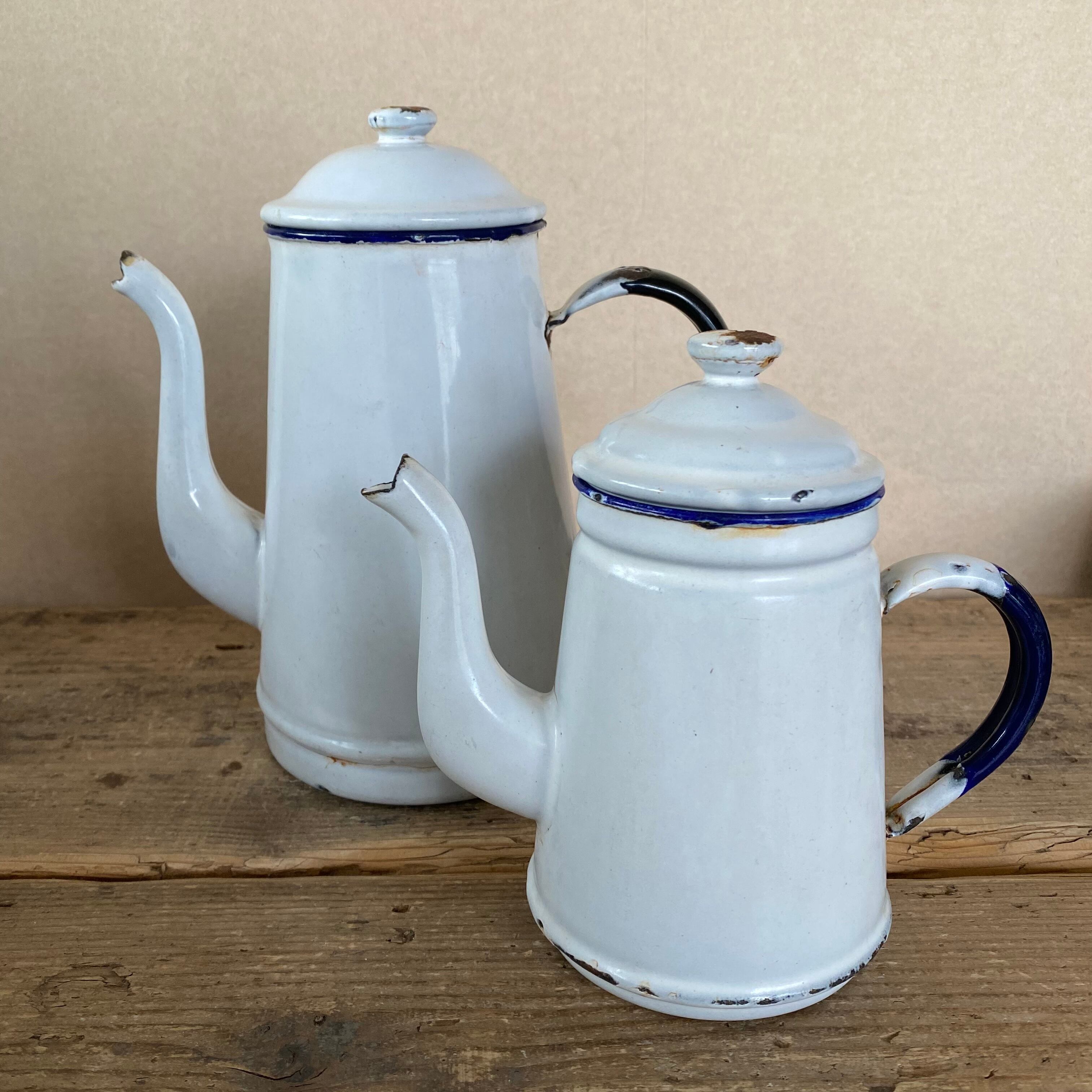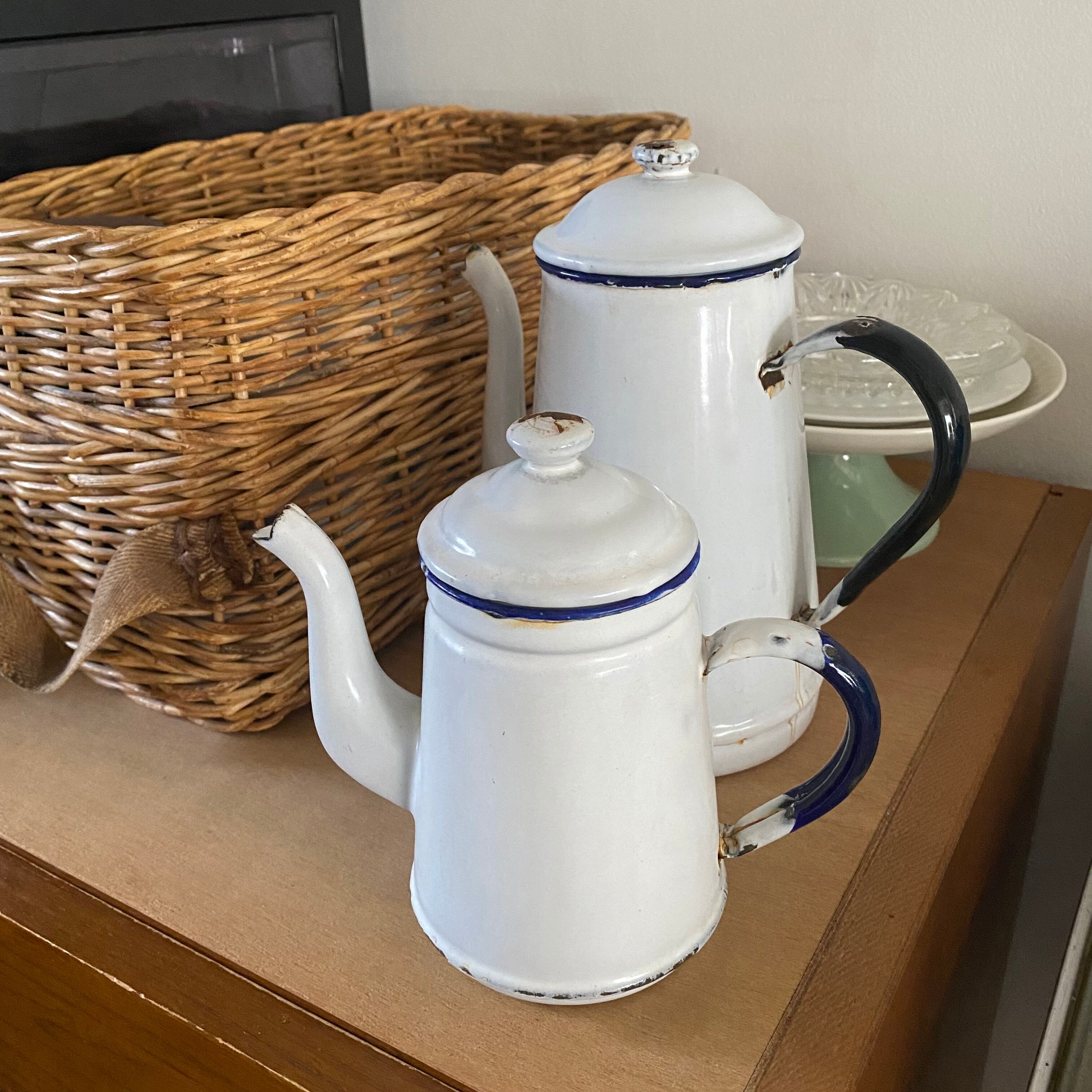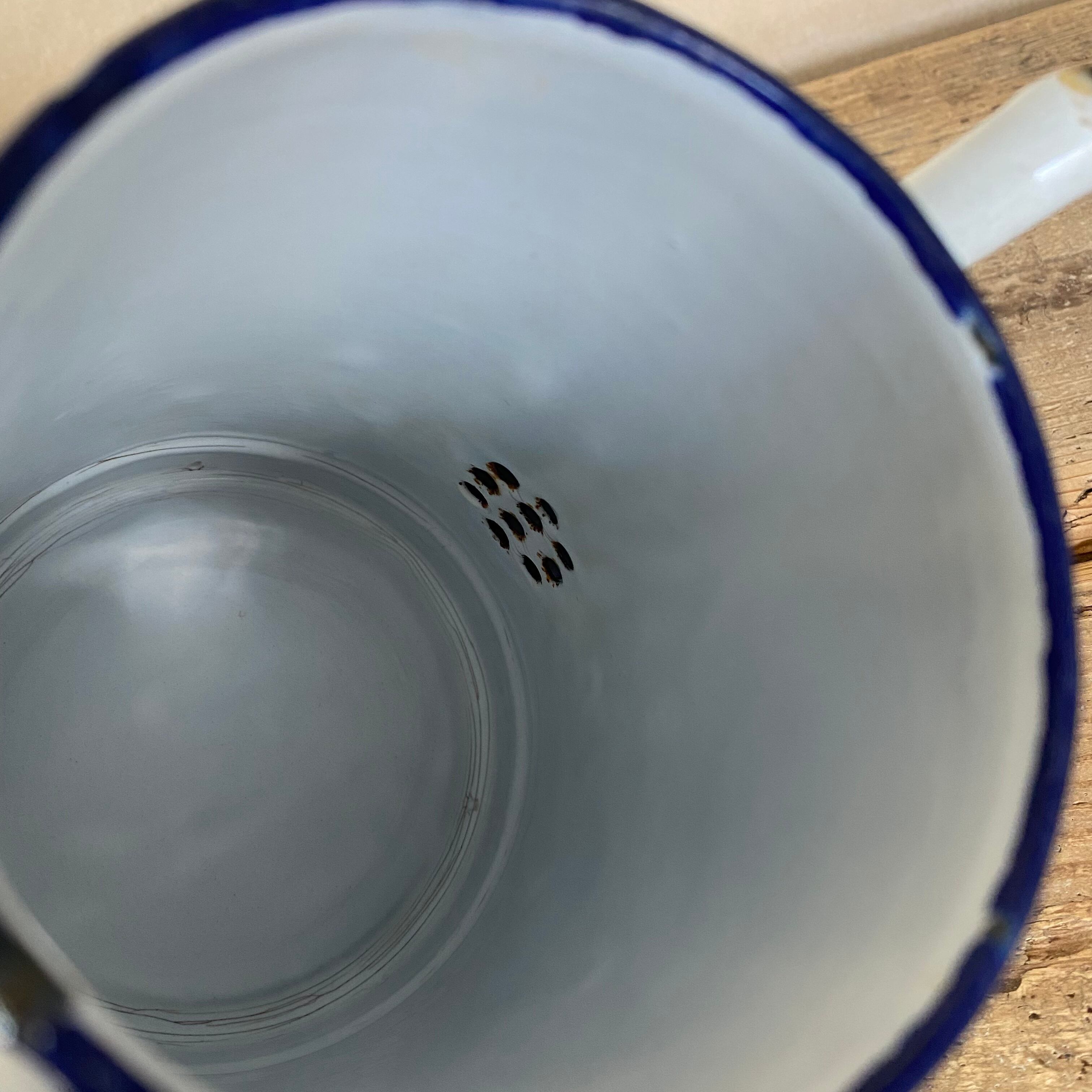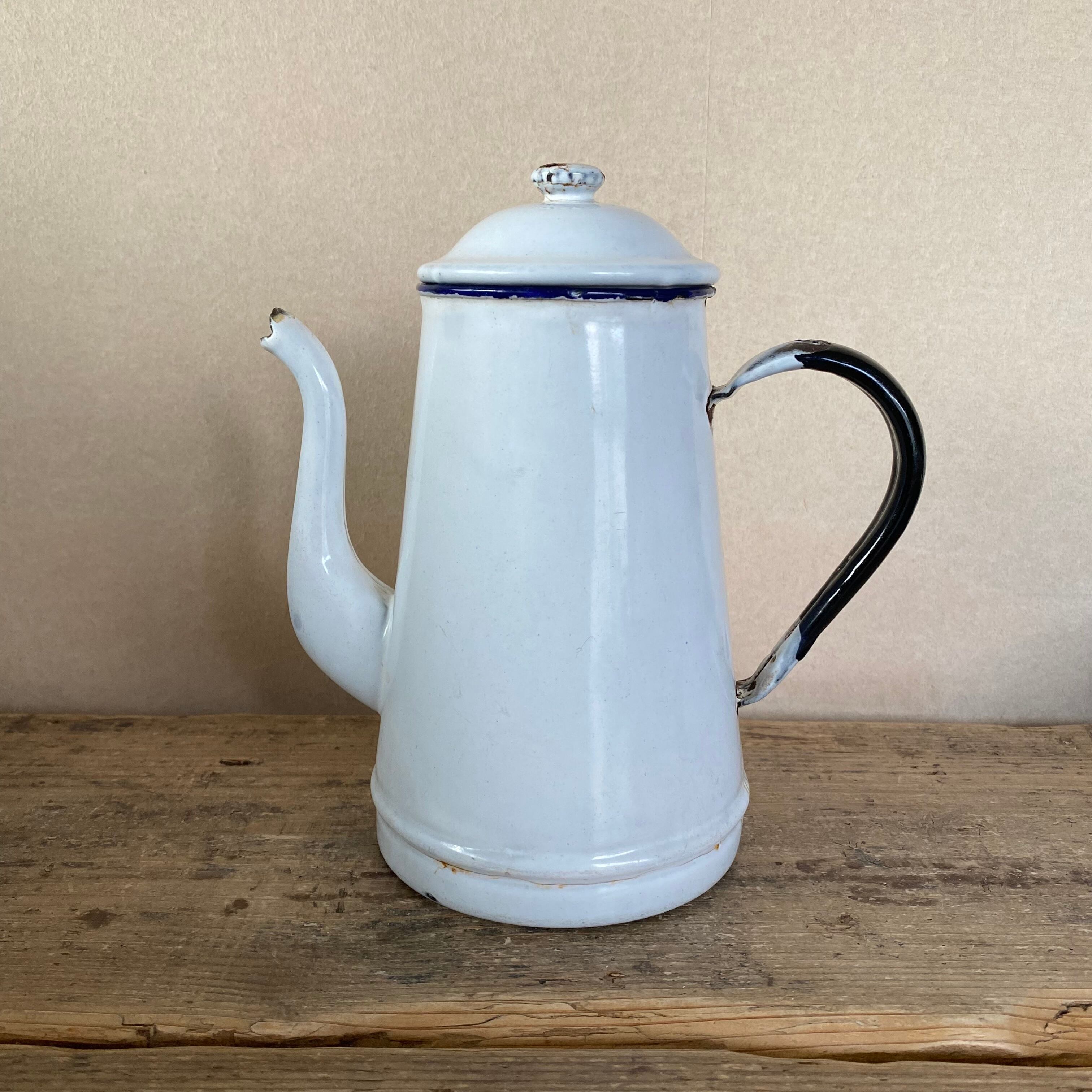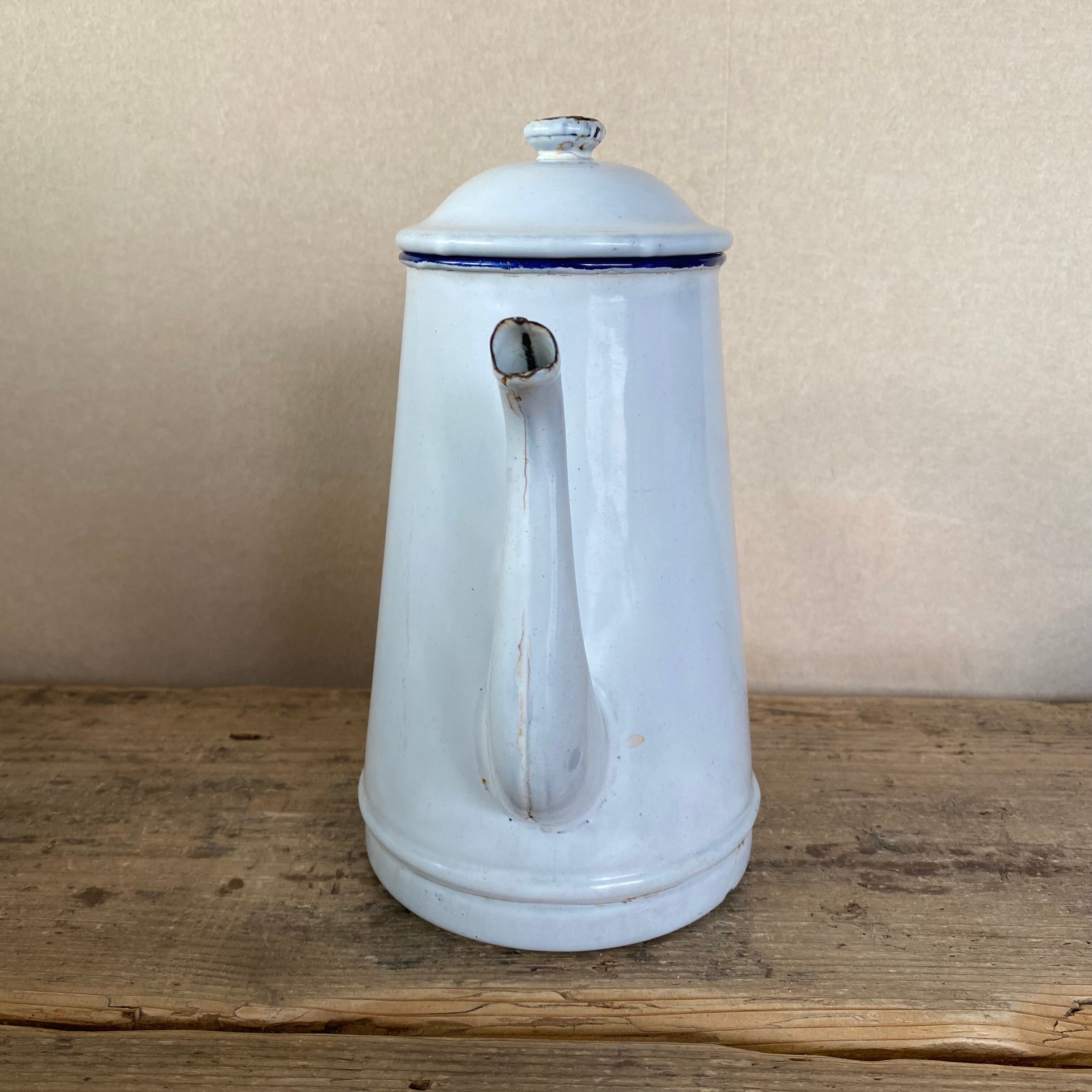 使い込まれた感や、年月の経過を感じる古いホーローのポットです。