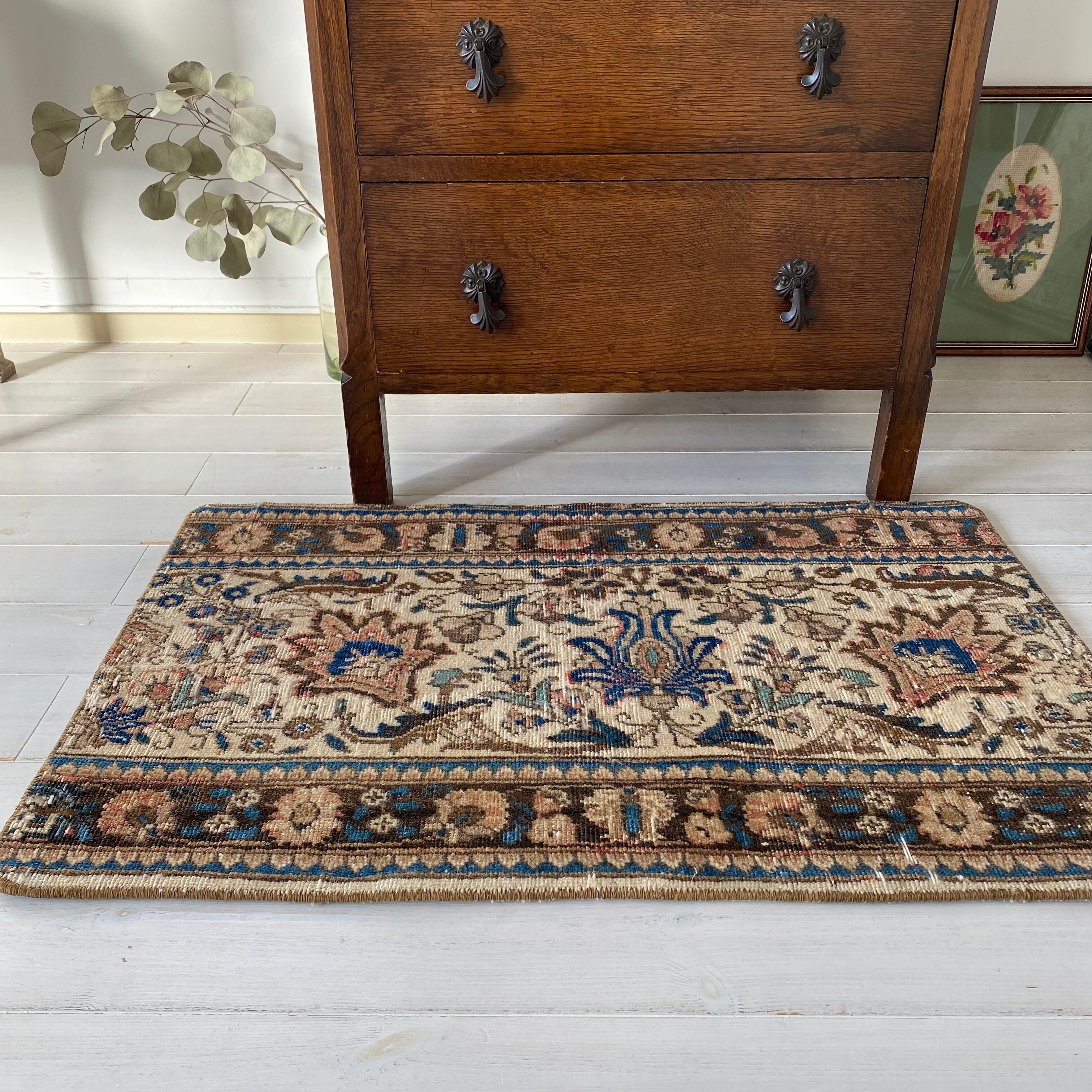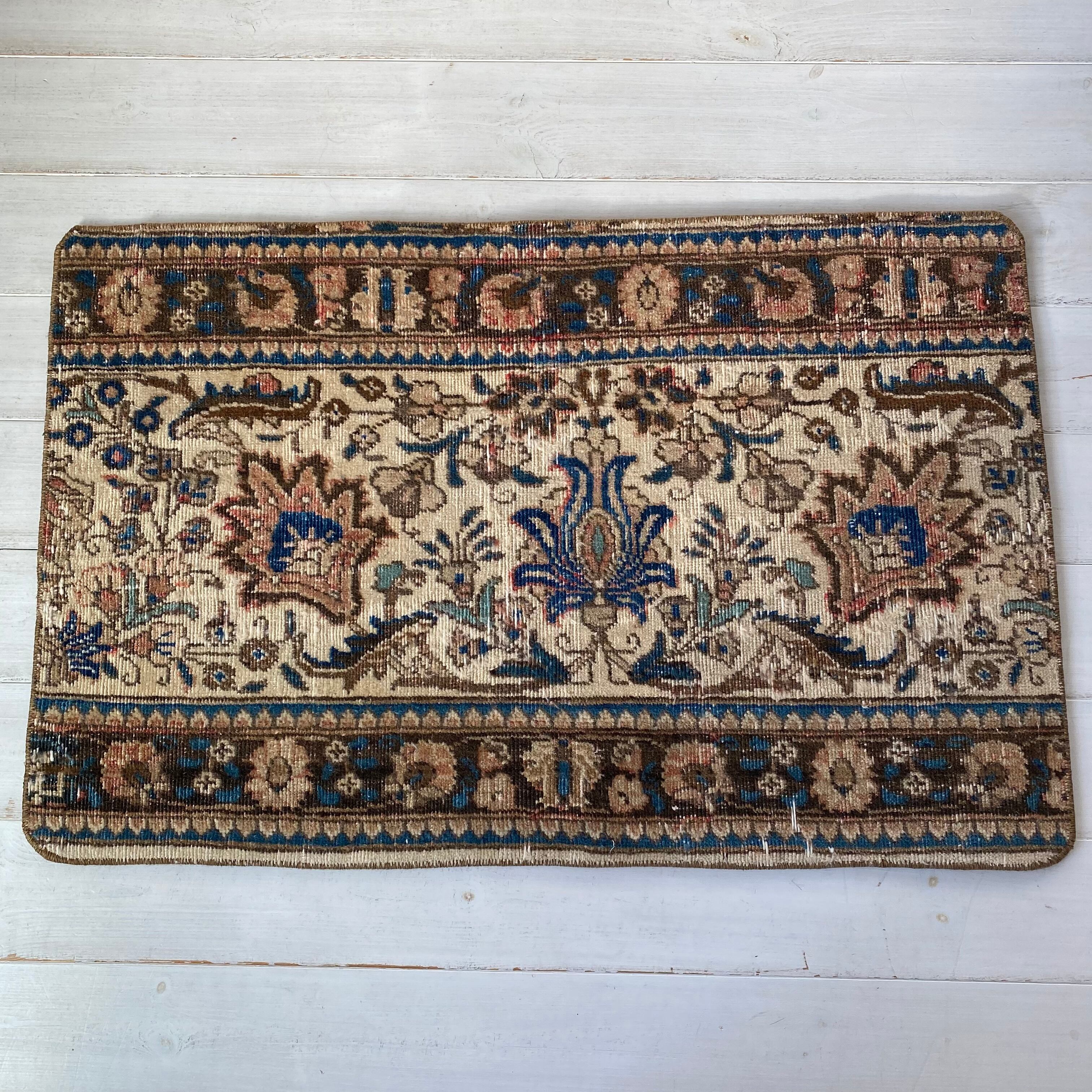 オリエンタルな雰囲気の花柄の、小さめサイズのラグです。